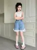 Nuevo Estilo de Verano para Niños 2025 Shorts de Mezclilla con Encaje para Bebé Niña, Modernos, Dulces y Lindos Shorts para Niñas