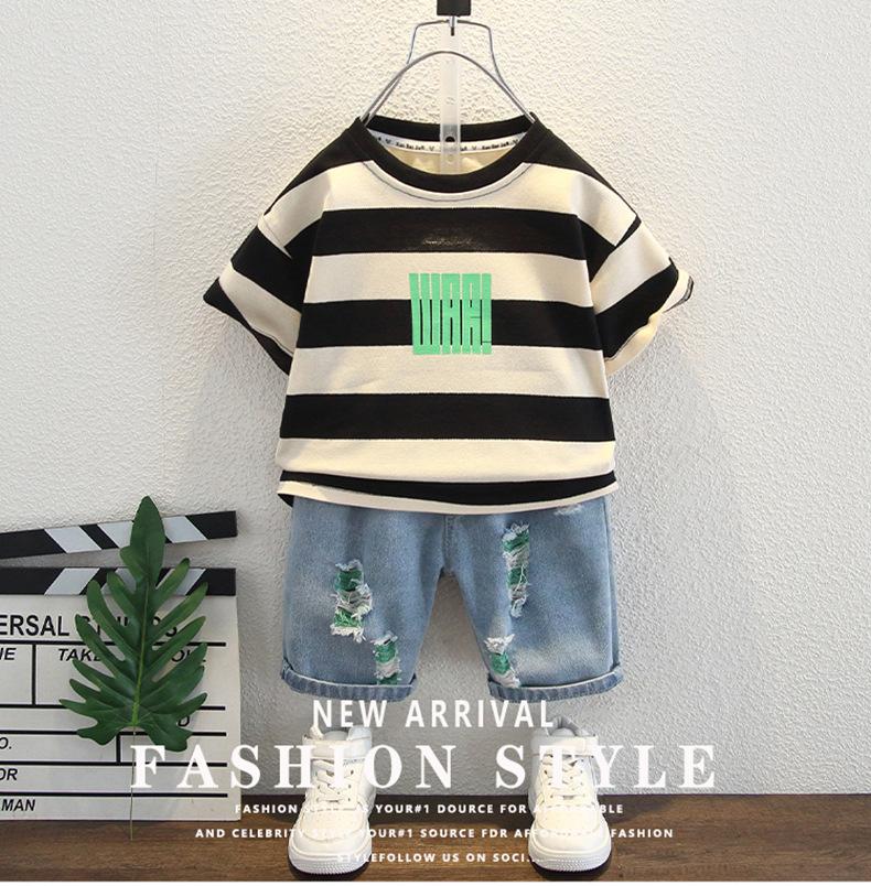 Traje de Verano de Manga Corta para Niño 2025 Nuevo Estilo Bebé Celebridad de Internet Calle Ropa de Verano Niños y Niños Ropa Fresca