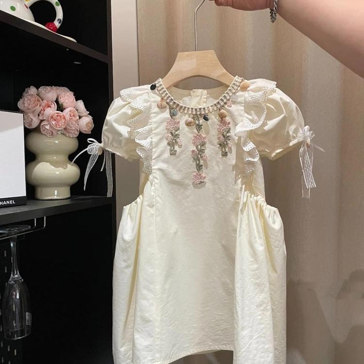 Vestido Dulce y Super Hada para Niñas 2025 Verano Nuevo Estilo Vestido para Niños Vestido Flor Bordada Vestido de Princesa