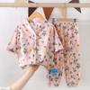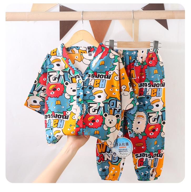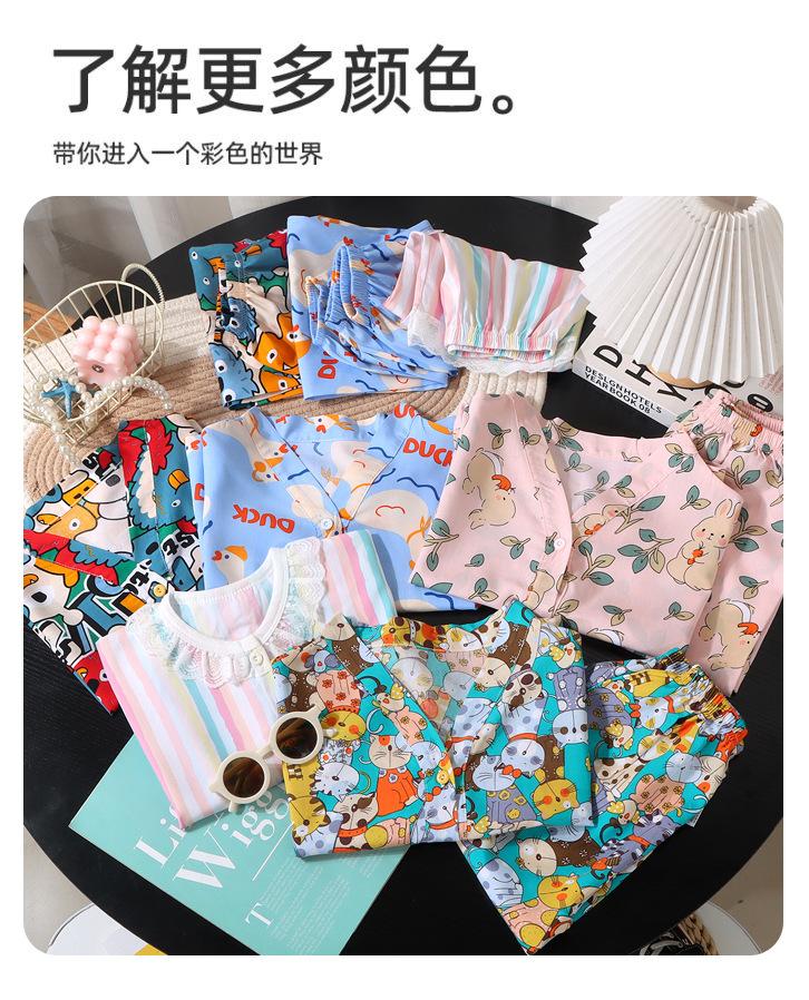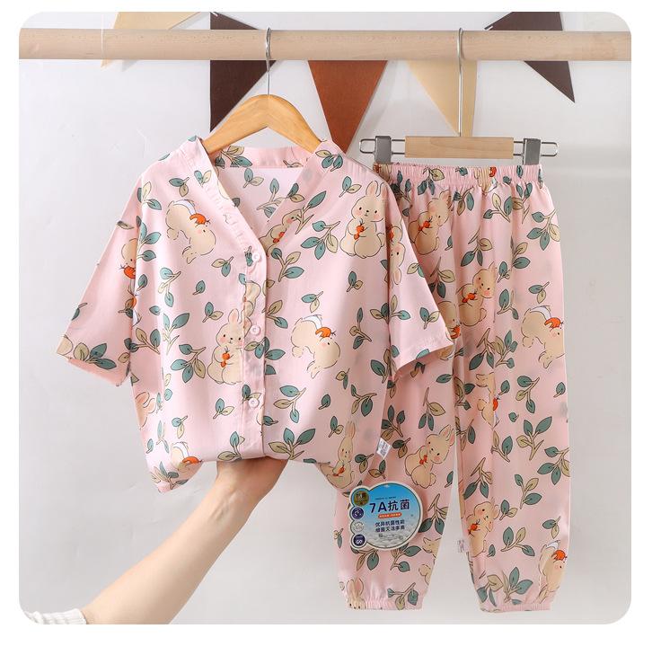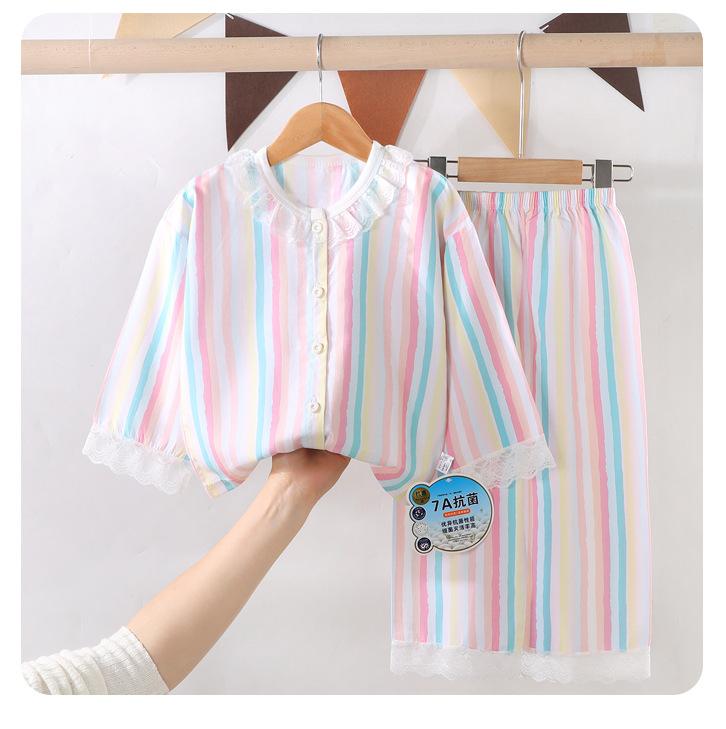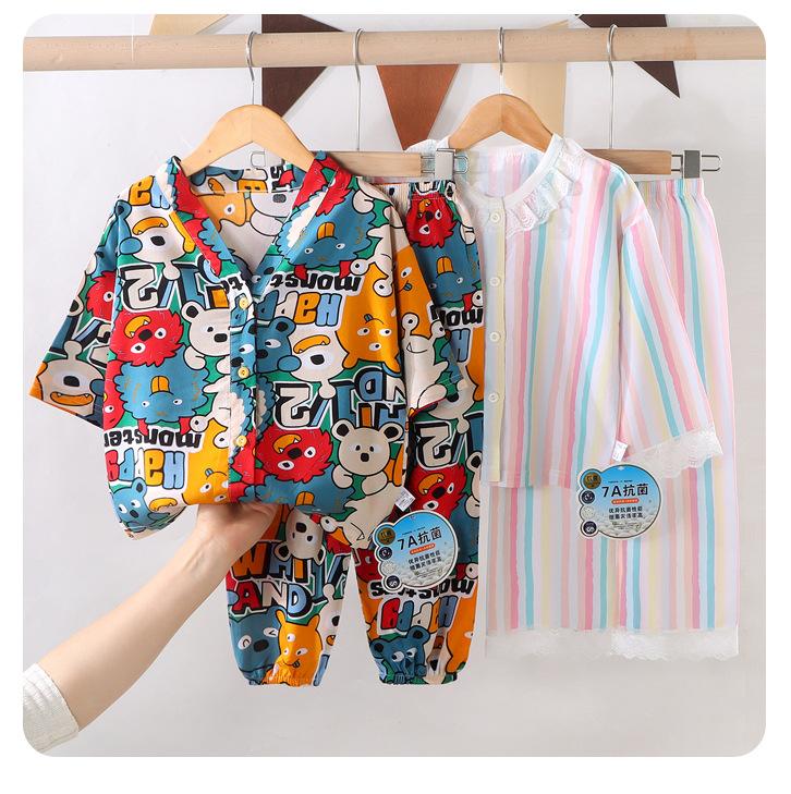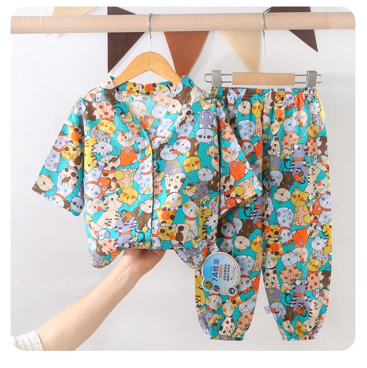 Pijamas de Algodón Seda para Niñas Verano Niños Manga Tres Cuartos Sección Delgada Niñas Niños Bebé Algodón Seda Aire Acondicionado Conjunto Ropa para Casa