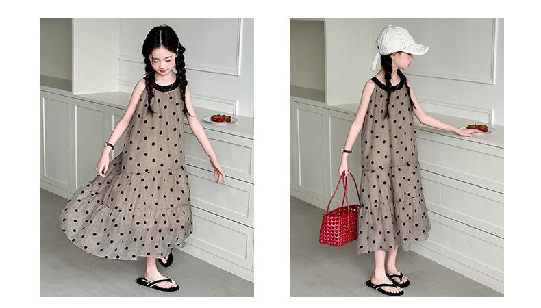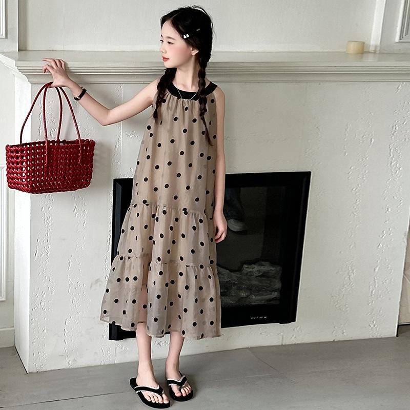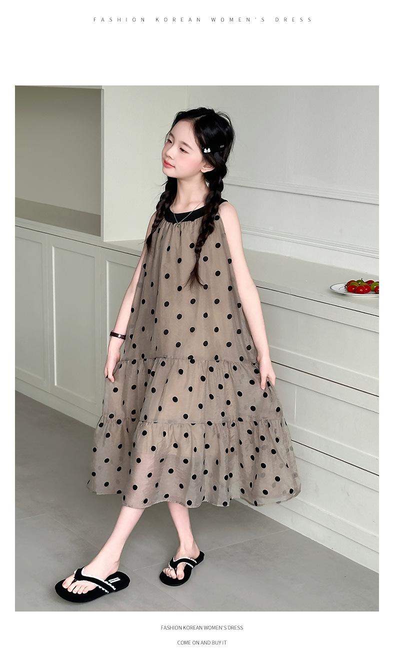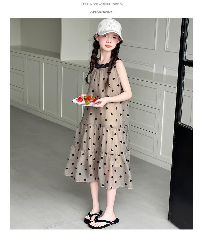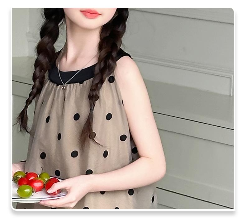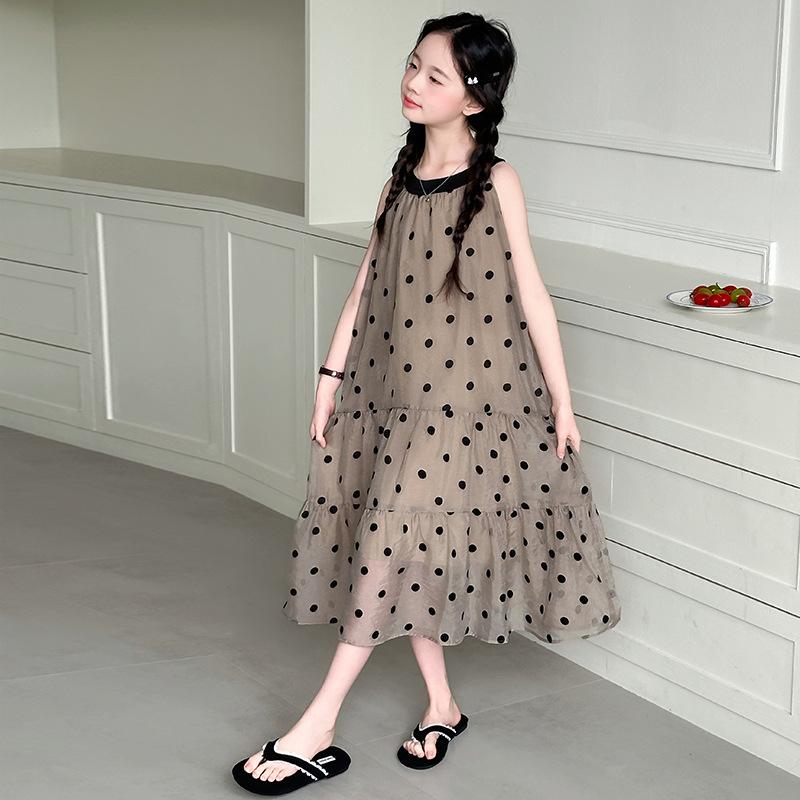 Verano Nuevo Vestido Sin Mangas para Niñas Ropa para Niños Moda Infantil para Niña Vestido Elegante de Princesa Falda de Gasa Falda de Lunares