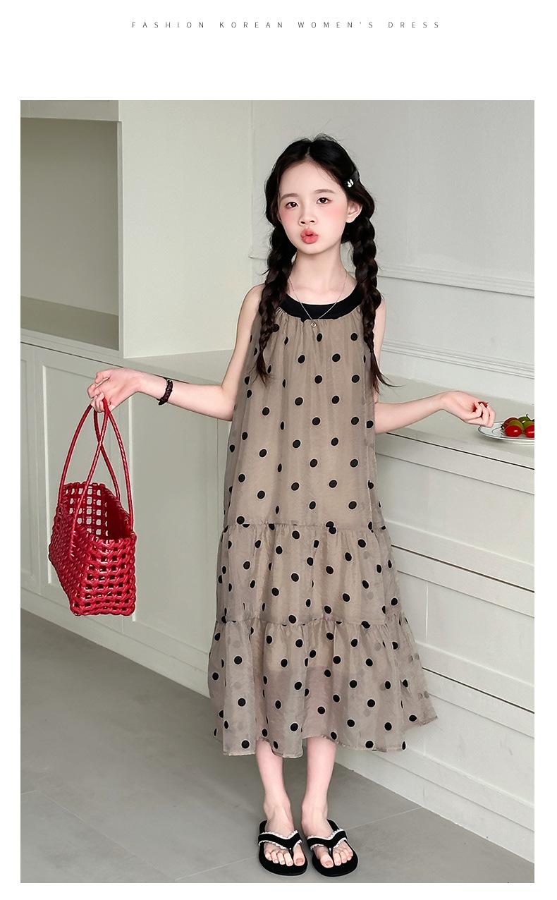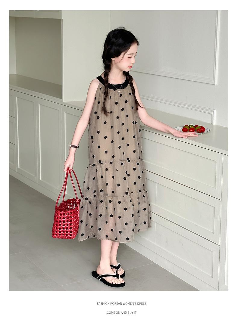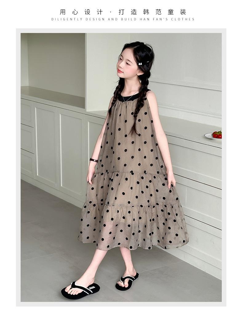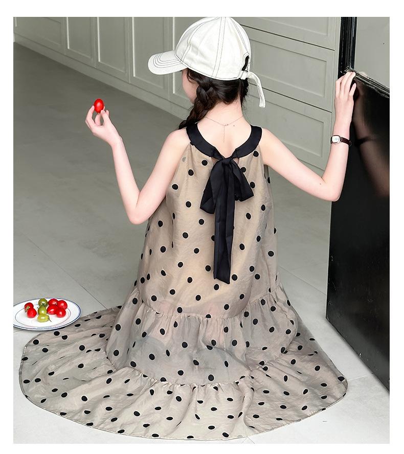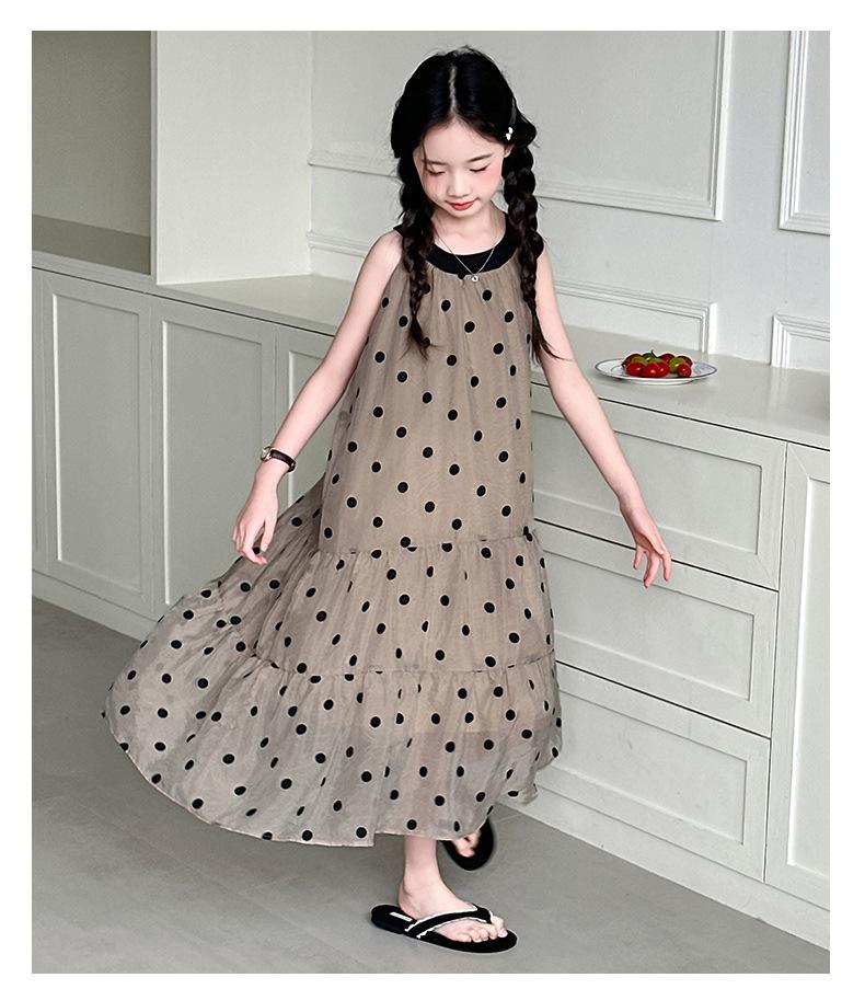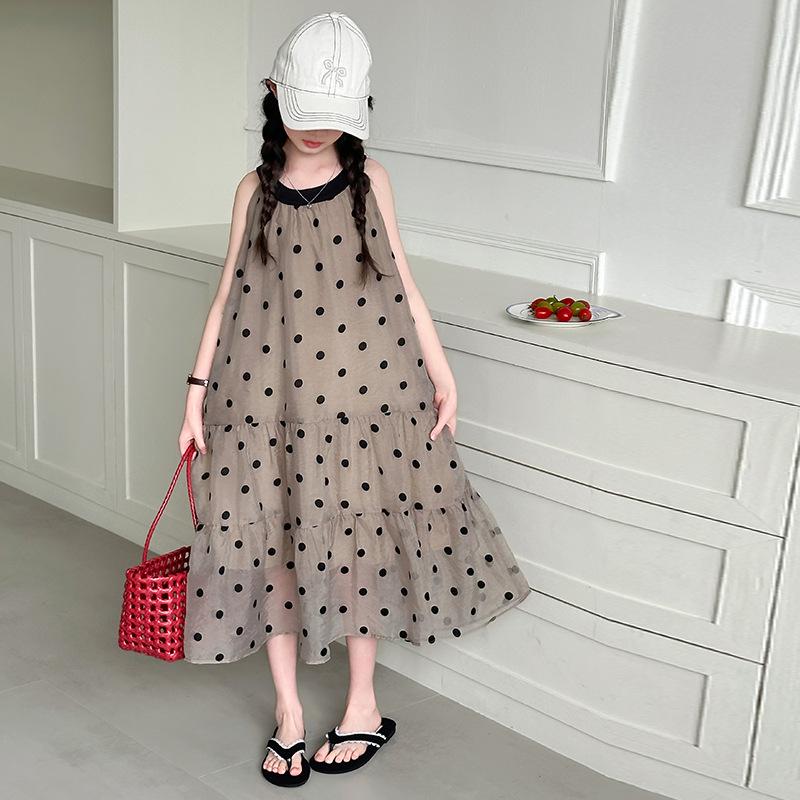 Verano Nuevo Vestido Sin Mangas para Niñas Ropa para Niños Moda Infantil para Niña Vestido Elegante de Princesa Falda de Gasa Falda de Lunares