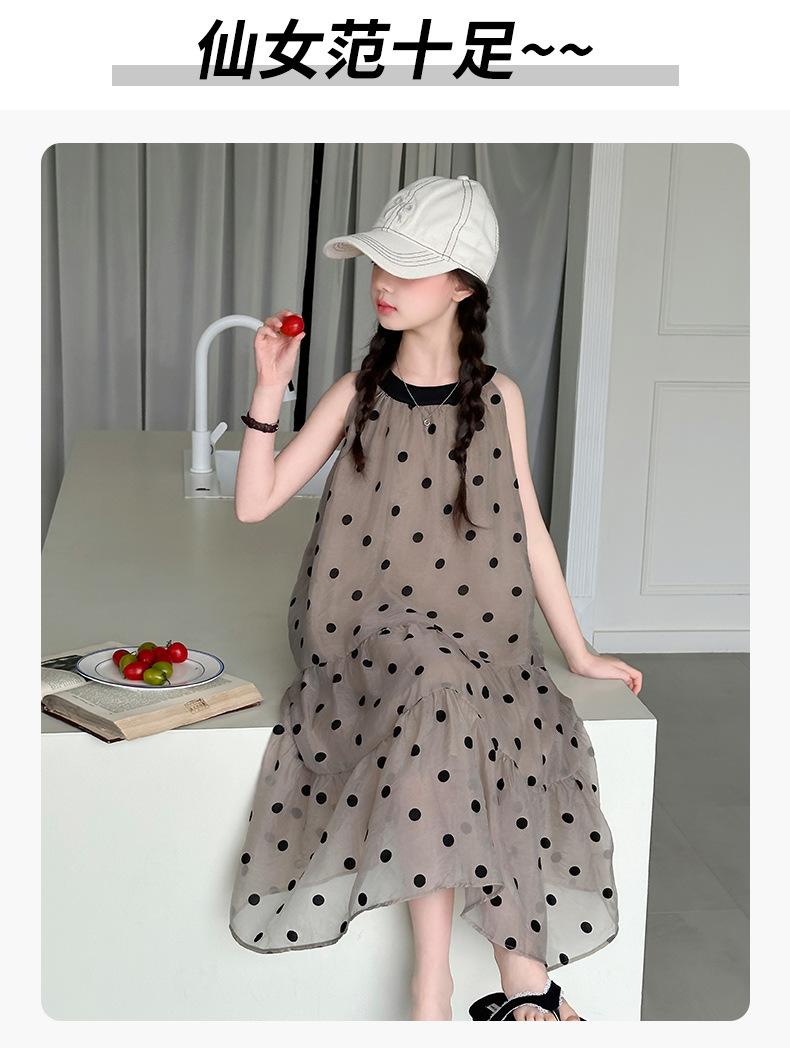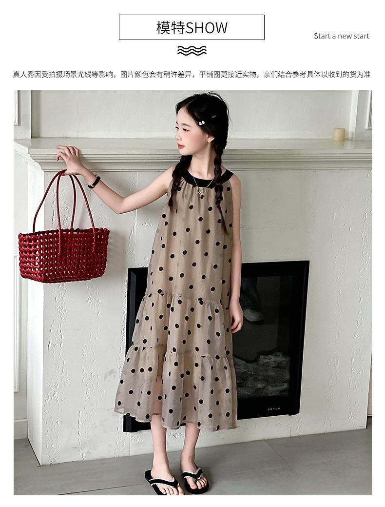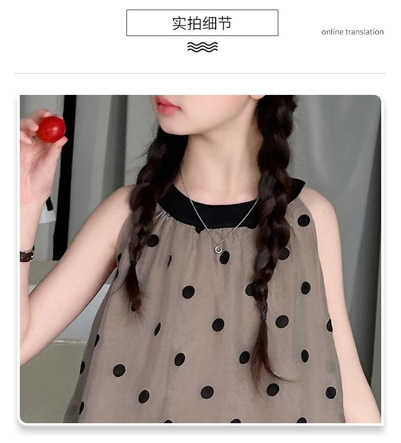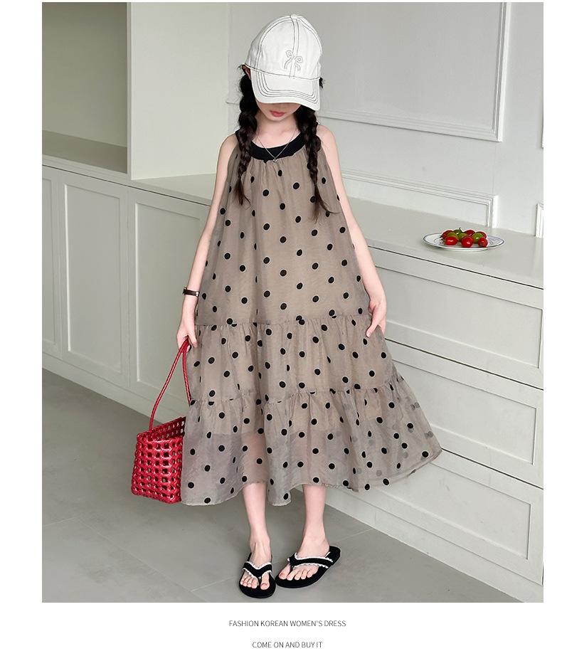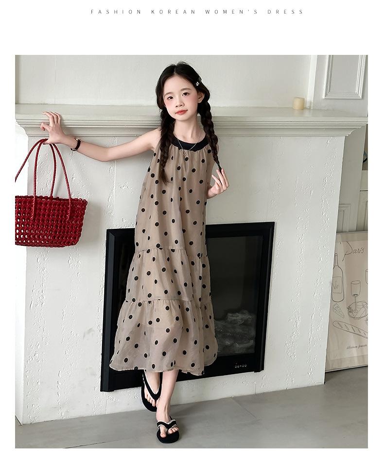 Verano Nuevo Vestido Sin Mangas para Niñas Ropa para Niños Moda Infantil para Niña Vestido Elegante de Princesa Falda de Gasa Falda de Lunares