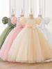 Vestido de Novia Infantil Transfronterizo Vestido Largo para Niña Traje de Actuación de Anfitrión Vestido de Princesa de Manga Abullonada