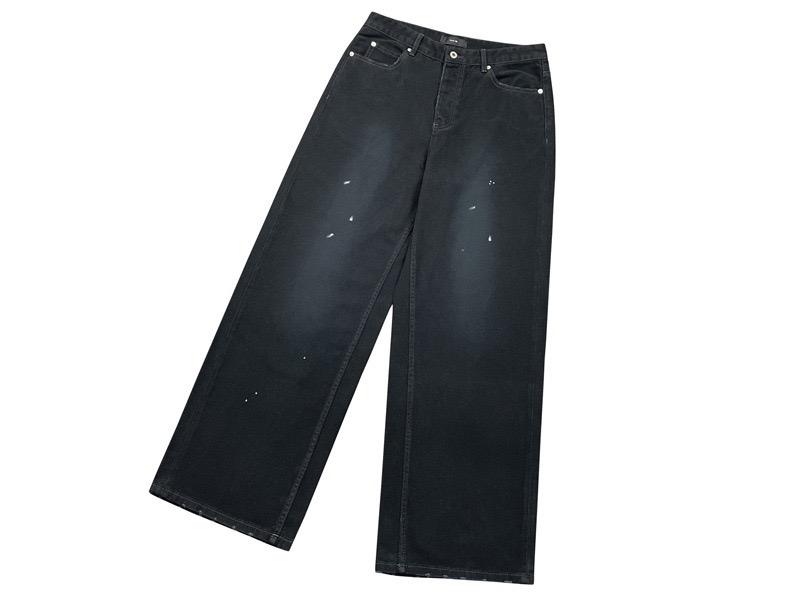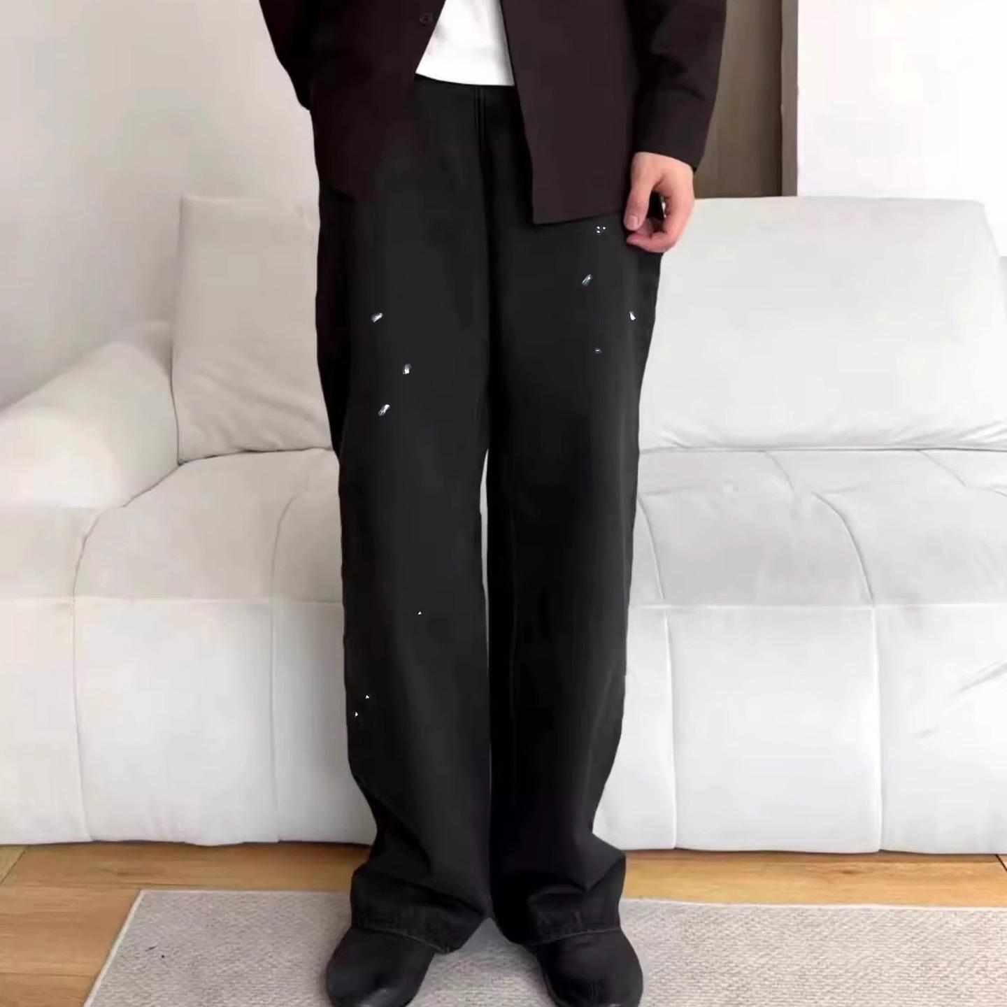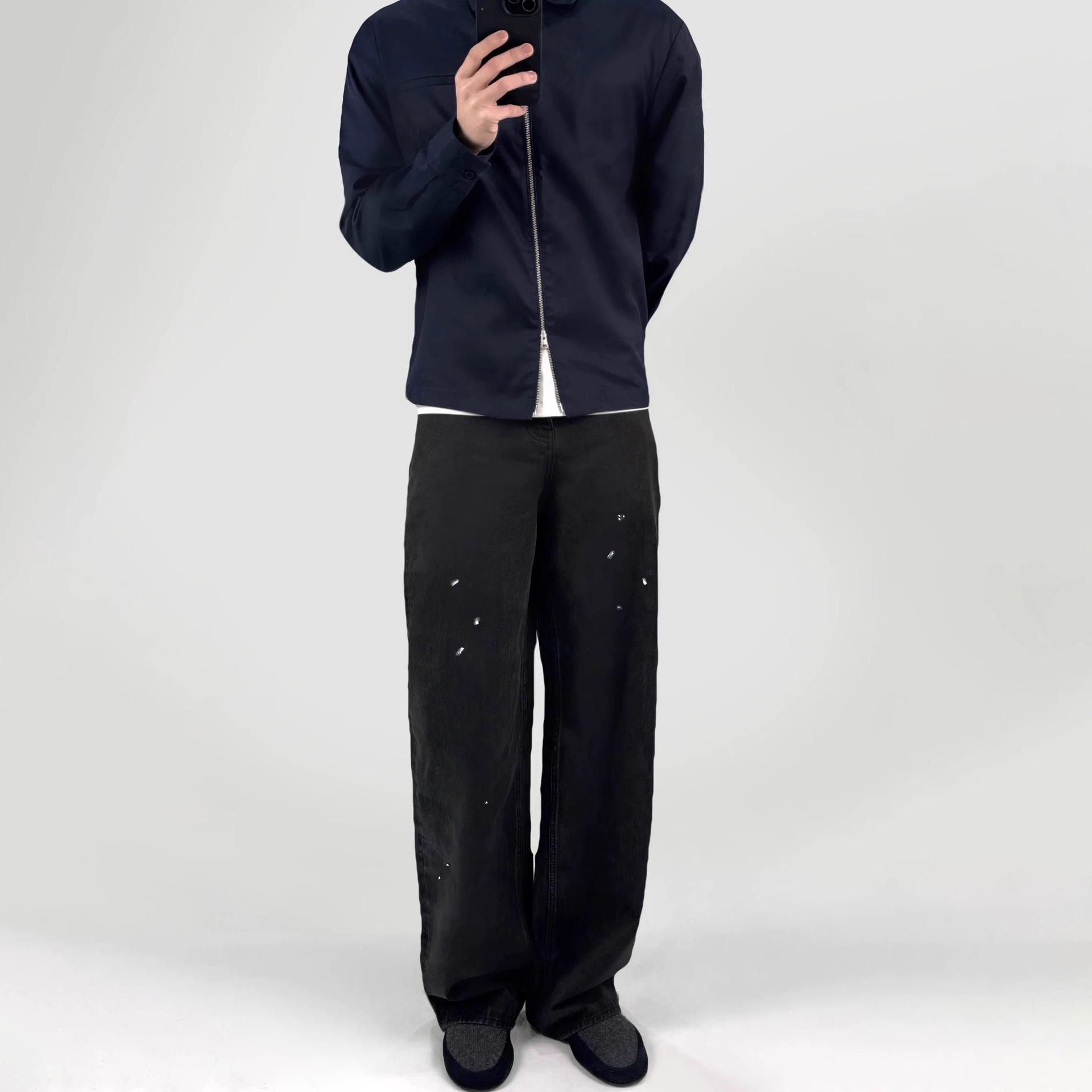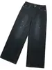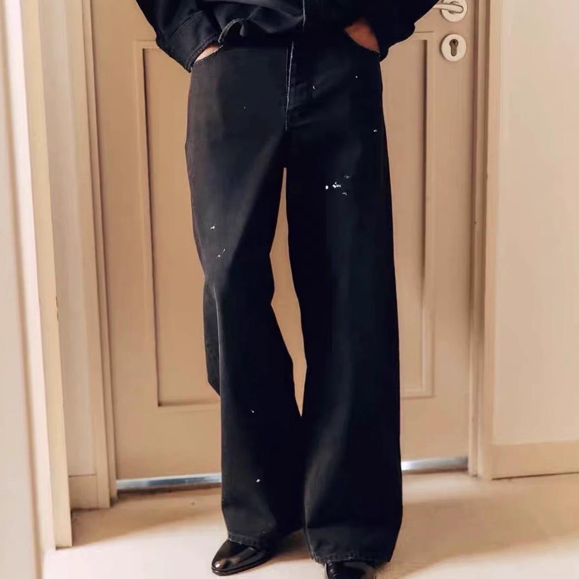 Vujade010 Cleanfitvibe Jeans Negros Lavados Desgastados de Pierna Recta Marca Trendy