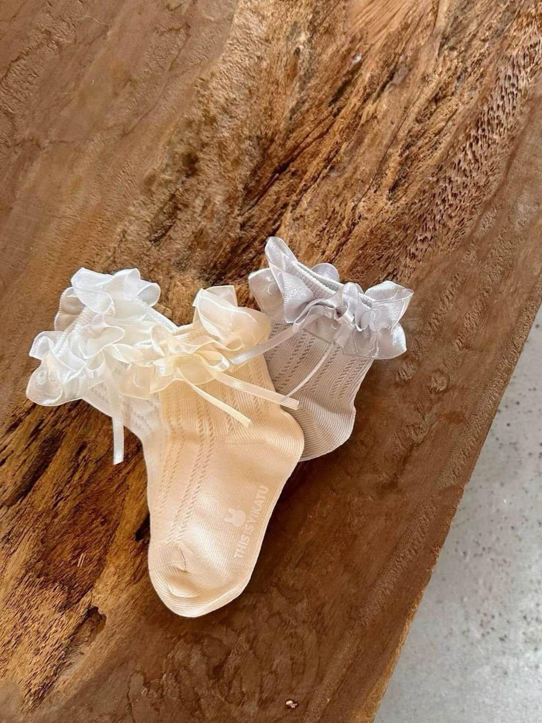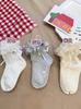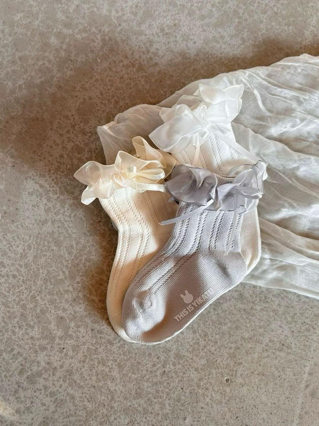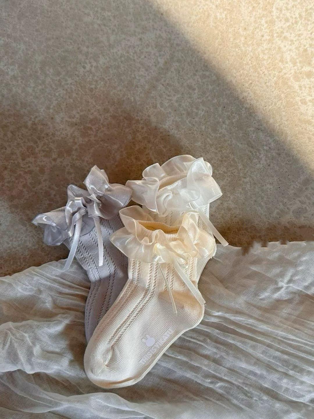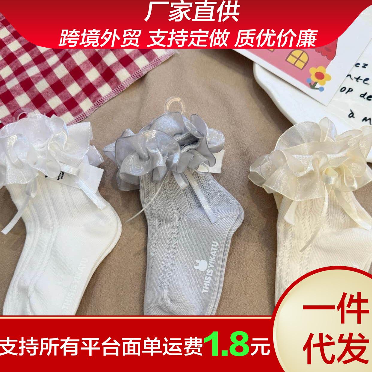 Primavera y Verano 2025 Calcetines de Encaje Plateado para Niños Calcetines de Algodón con Lazo Estilo Coreano Lindo Suave Conejo Calcetines para Niños