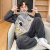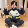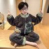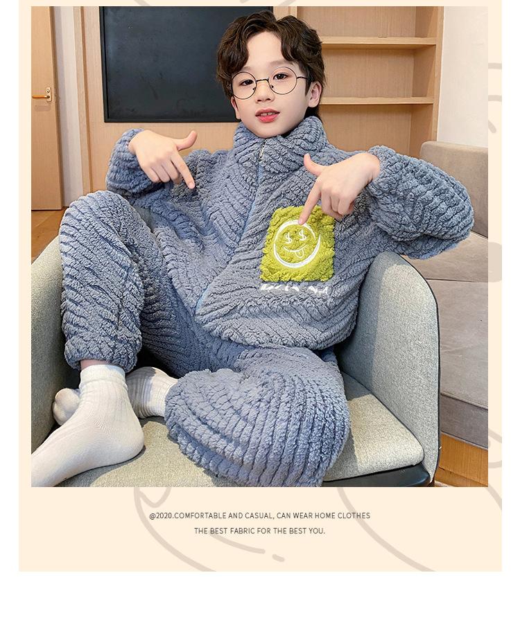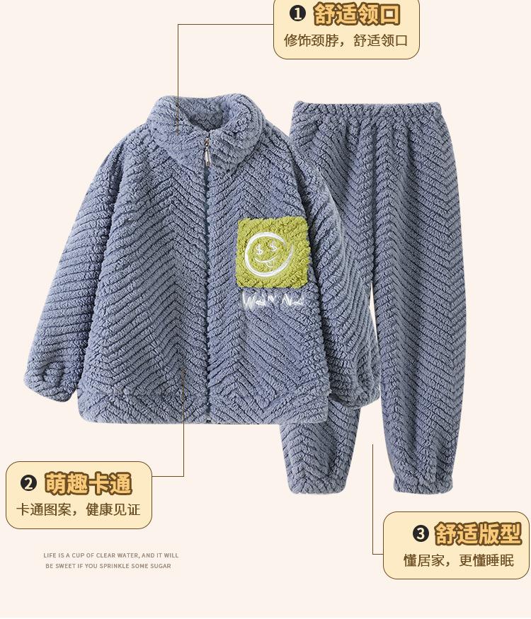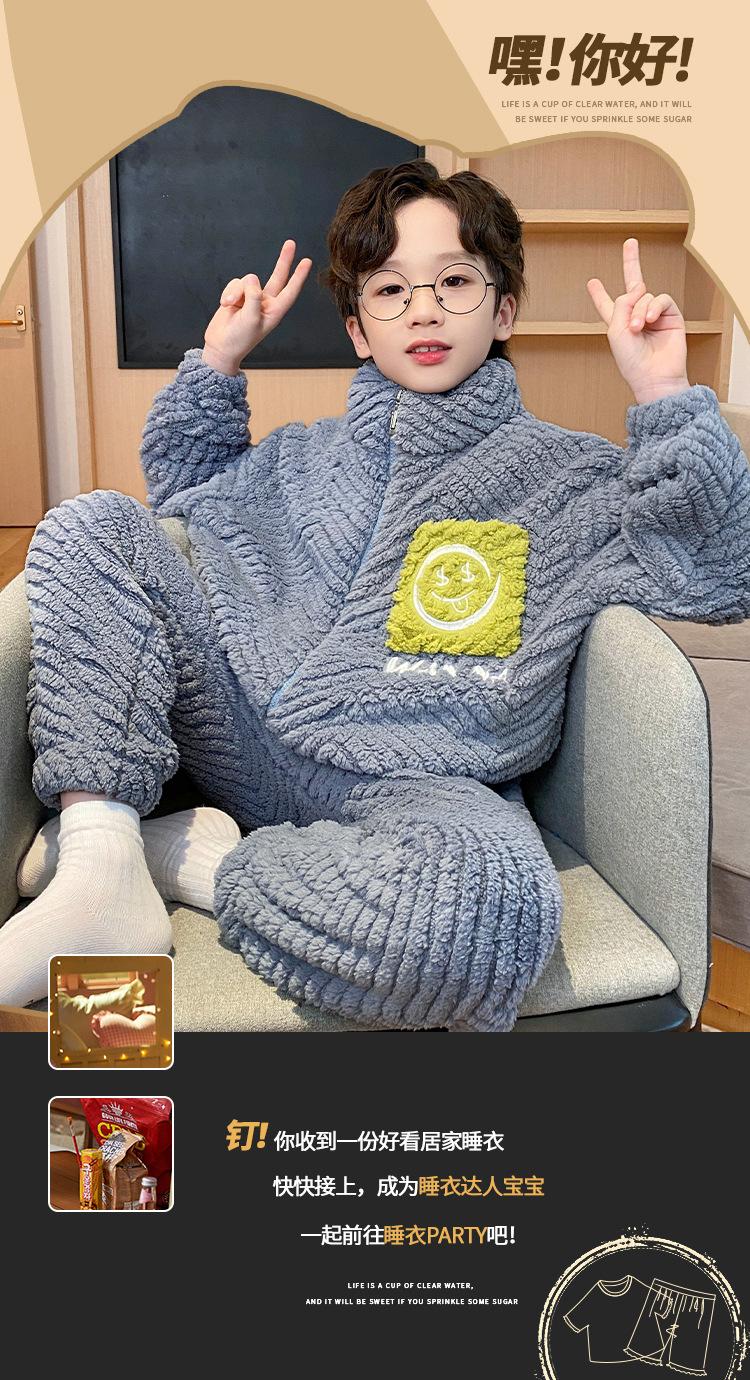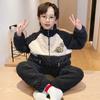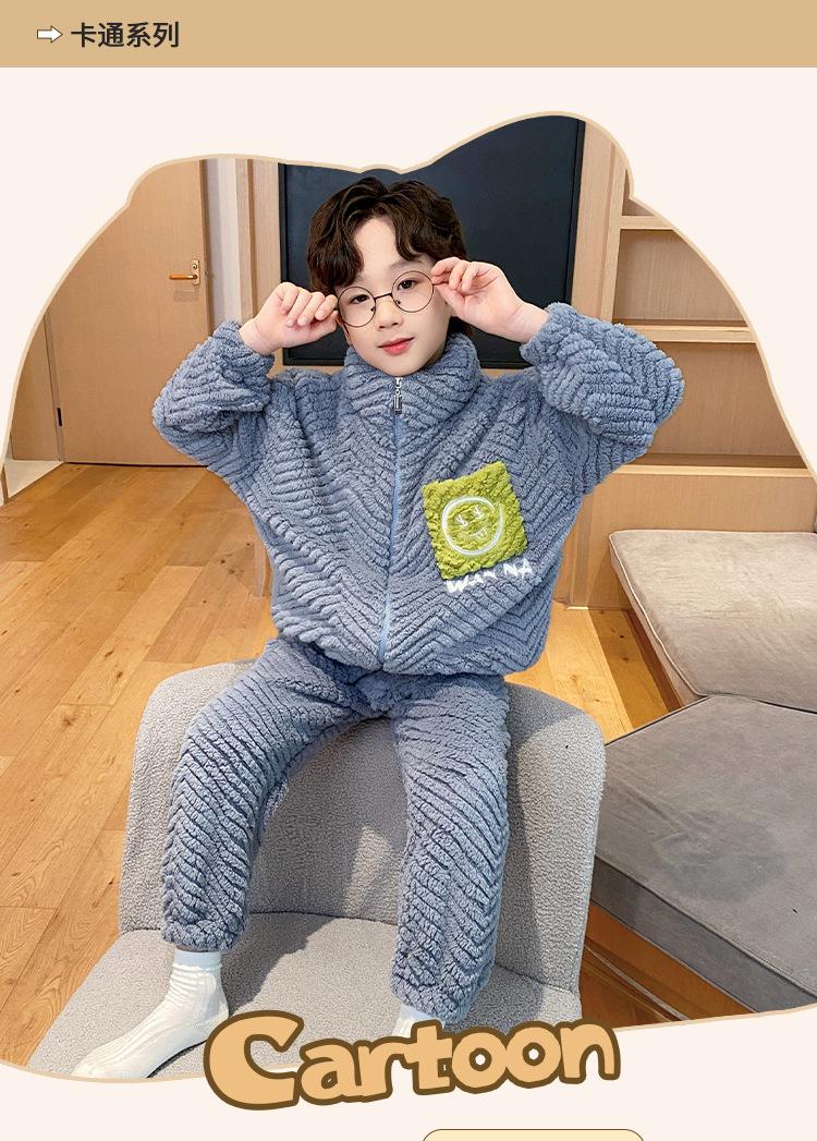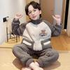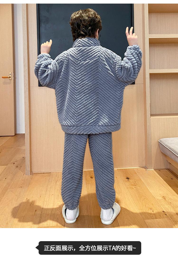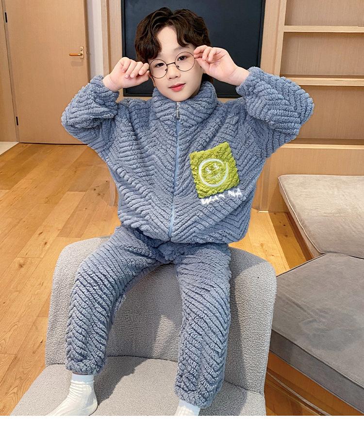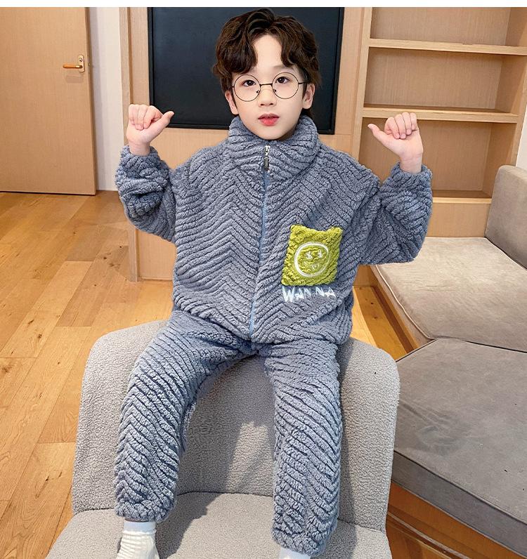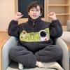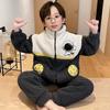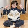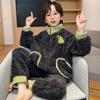 Pijamas de Invierno para Niños Cárdigan de Terciopelo Coral Forrado de Polar Franela Gruesa para Niños Medianos y Grandes Conjunto de Ropa para el Hogar para Niños