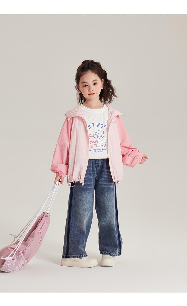 Ropa Infantil Momojia Ropa de Primavera Estilo para Niñas Ropa de Protección Solar Primavera 2024 Nueva Chaquetas Casuales para Niños a Contraste de Color