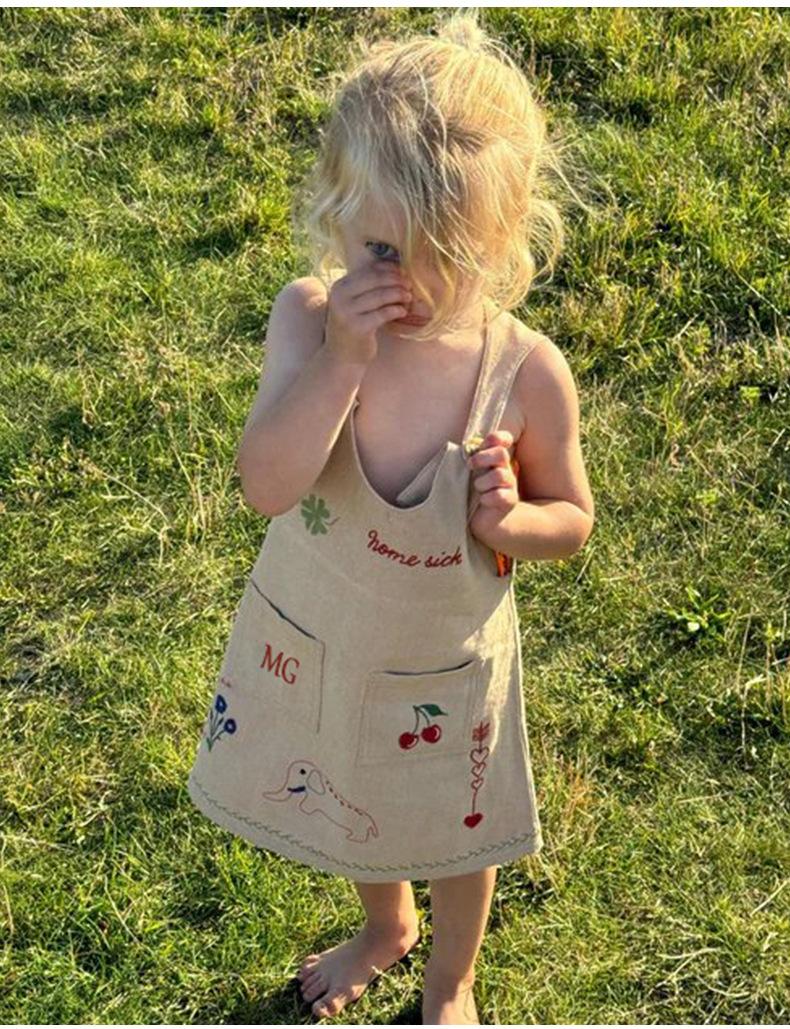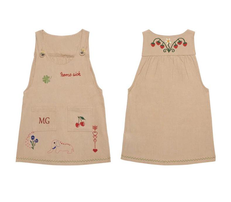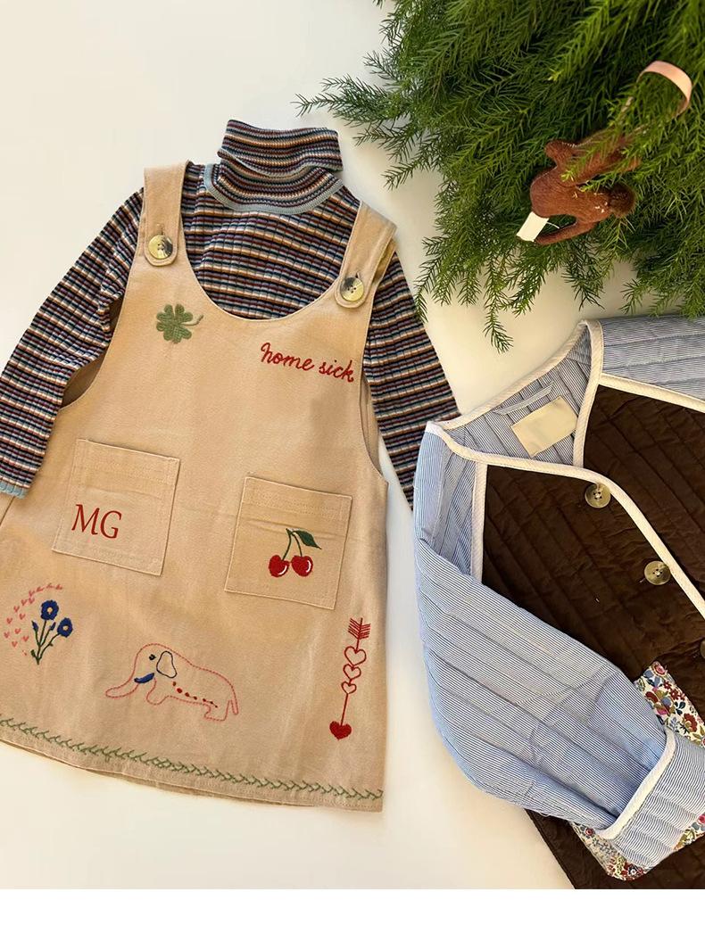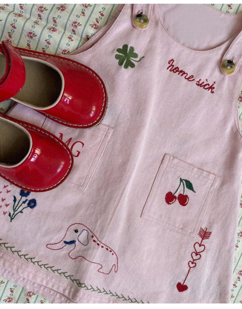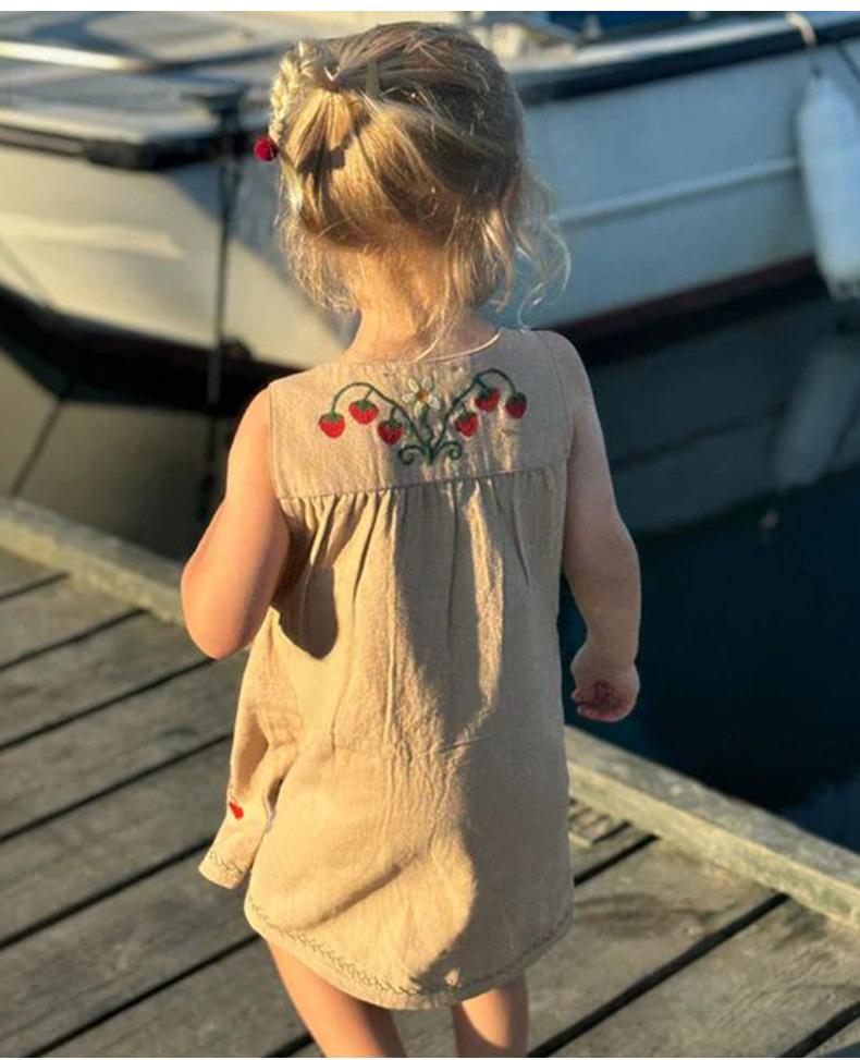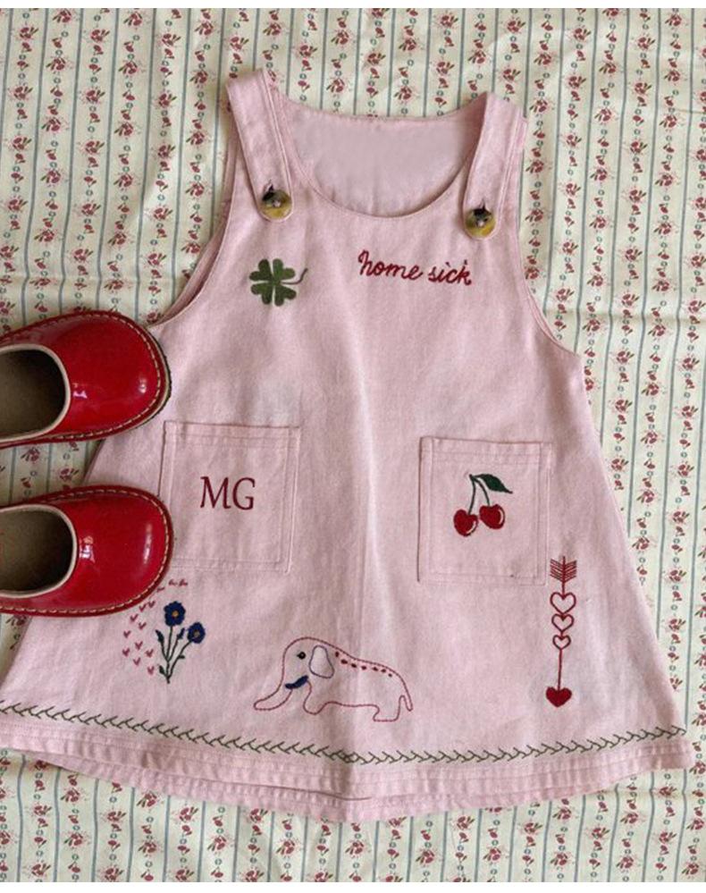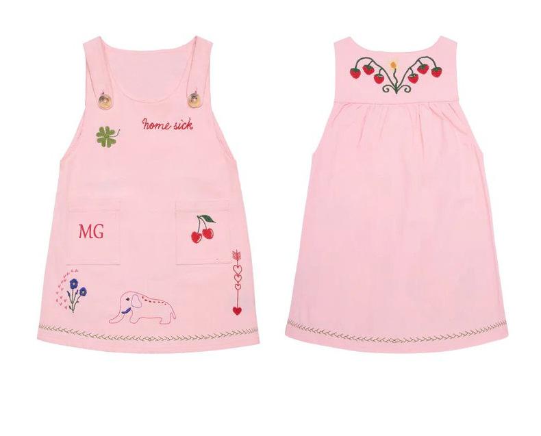 Vestido de Verano para Niñas 2025 Nuevo Vestido de Tirantes Bordado de Dibujos Animados para Bebé Niña Falda Infantil Versátil y Divertida