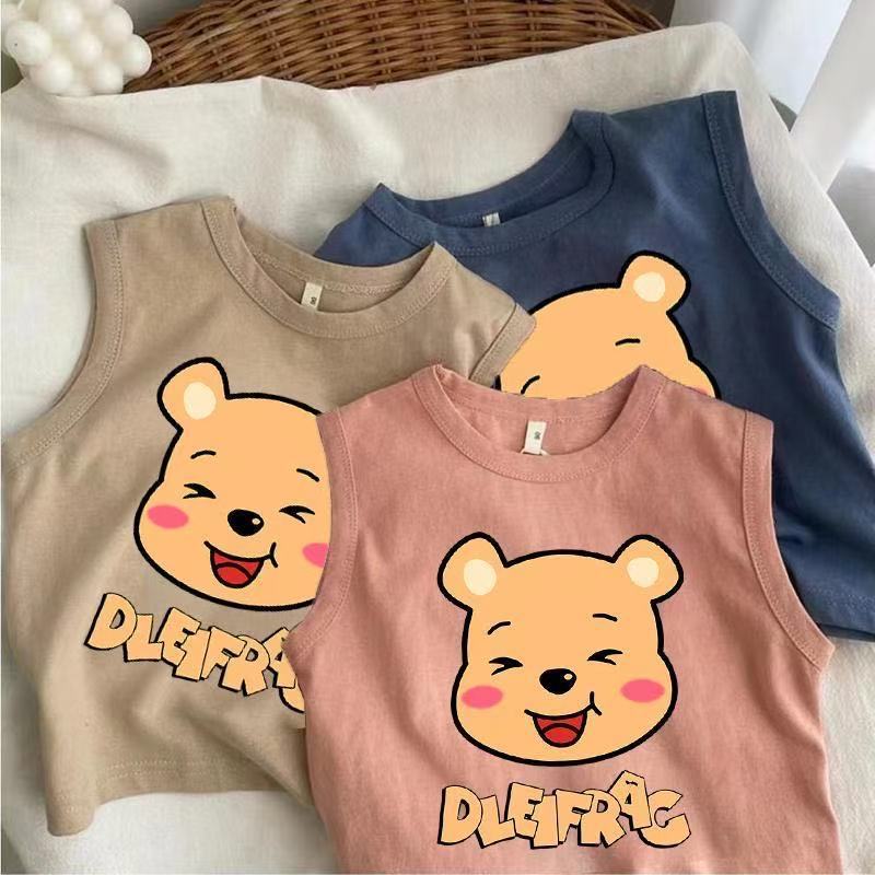 Chaleco de Verano de Algodón Puro sin Mangas para Niños y Niñas, Camisetas Nuevas para Niños con Estampados Lindos de Estilo Caricatura a la Moda