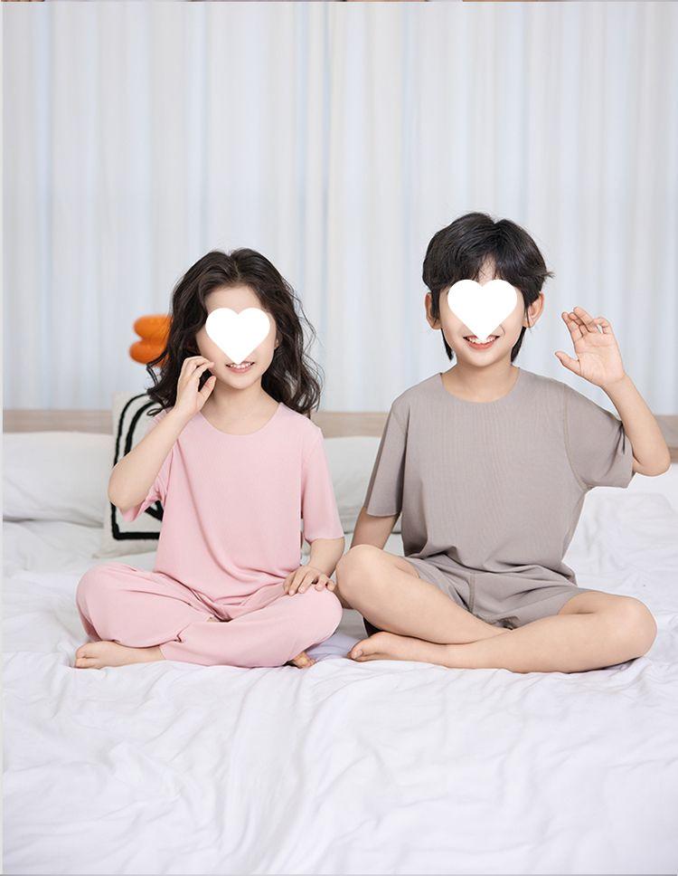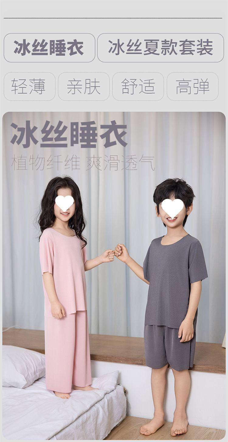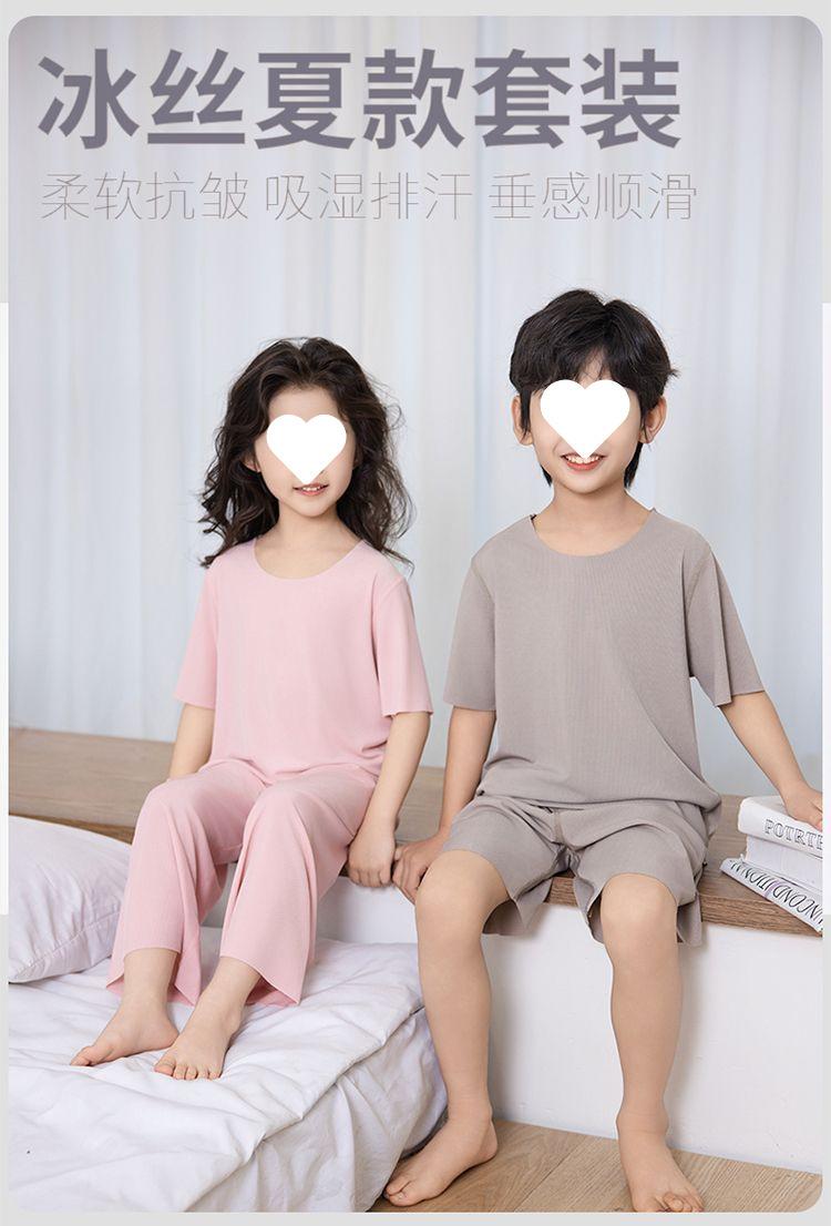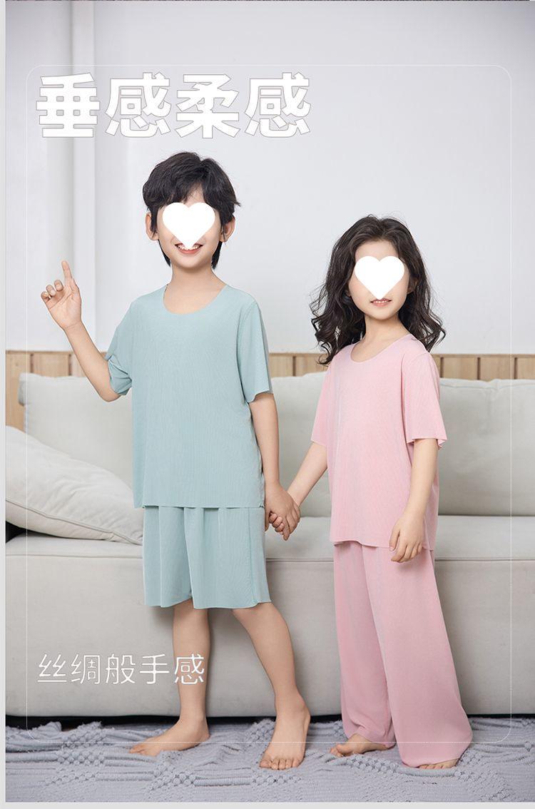 Pijamas de Verano de Seda de Hielo de Manga Corta y Pantalón Corto para Niños y Niñas Ropa Fina para el Hogar con Aire Acondicionado Trajes de Verano