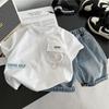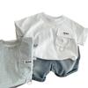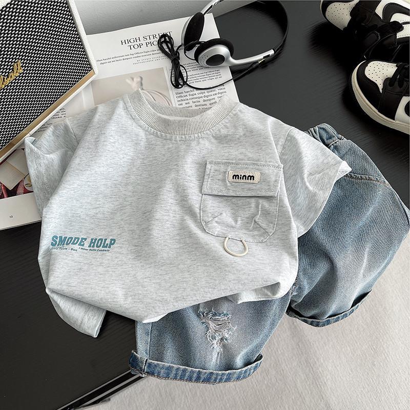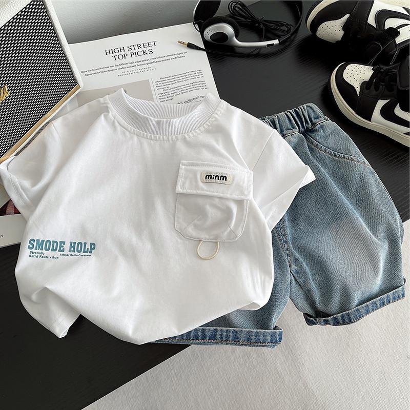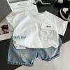 Traje de Verano para Niño Nuevo Estilo Conjunto de Dos Piezas de Manga Corta de Verano para Niños Shorts de Mezclilla Lavada Fina para Bebé