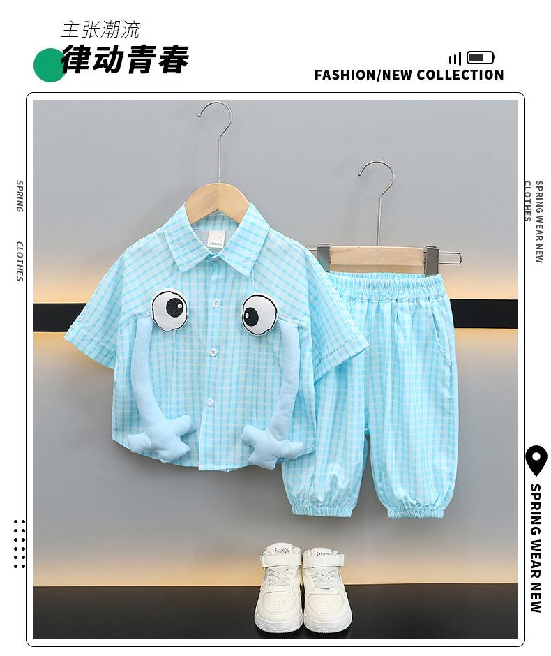Traje de camisa de verano para niño 2025 Nuevo estilo Ropa de verano de manga corta para bebé Ropa infantil para niños Estilo coreano Guapo