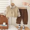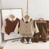 Traje de Otoño e Invierno para Niños Estilo Coreano 2025 Nuevo Conjunto de Tres Piezas de Suéter Asimétrico Moderno para Niños Venta al por Mayor