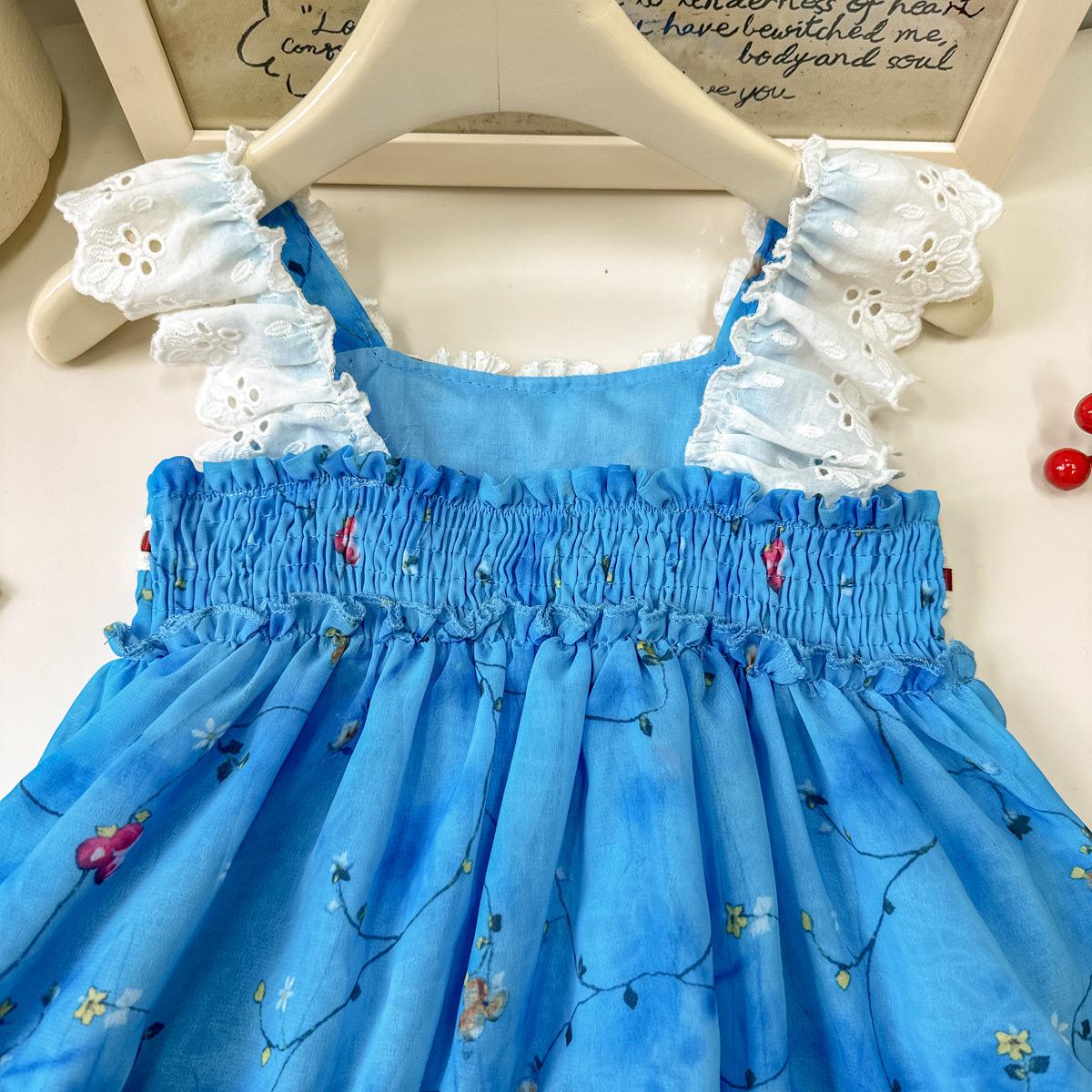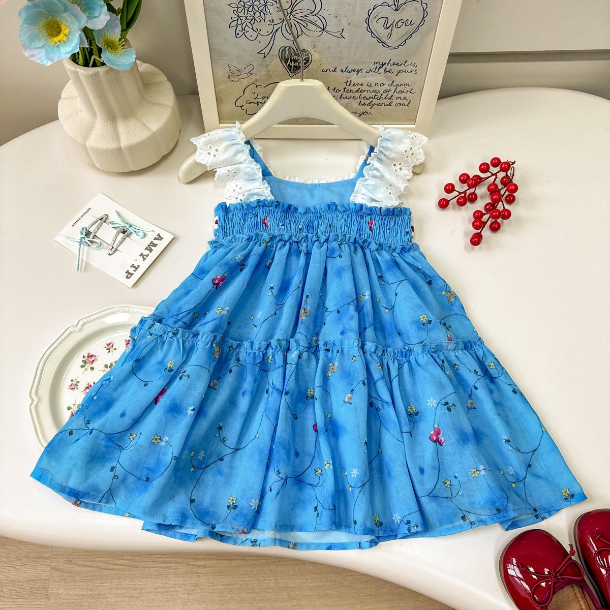Vestido de Tirantes de Encaje de Cuello Estilo Vacacional Moderno de Verano para Niñas Cm1257