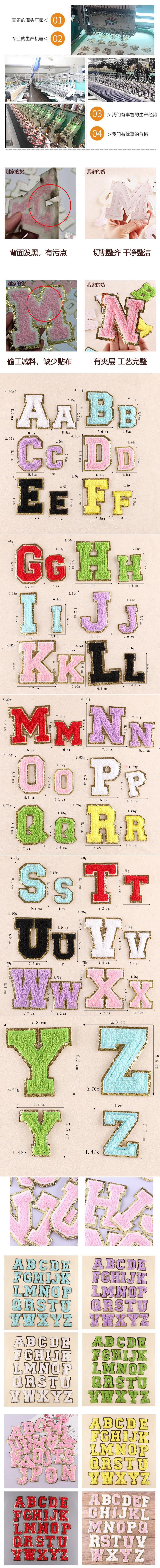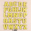 Toalla de etiqueta bordada Parche de letra inglesa con borde dorado bordado Accesorios de ropa Parche Parche de tela bordado de chenilla autoadhesivo