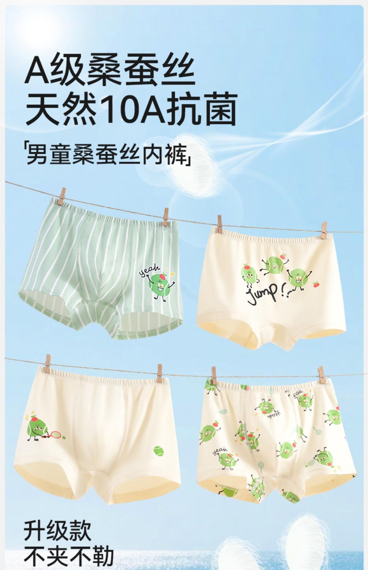 Ropa interior para niños, Categoría A de algodón puro para niños, Mediana y Grande, Boxers de algodón para niños, Calzoncillos bóxer de seda de morera para bebé