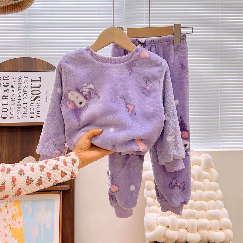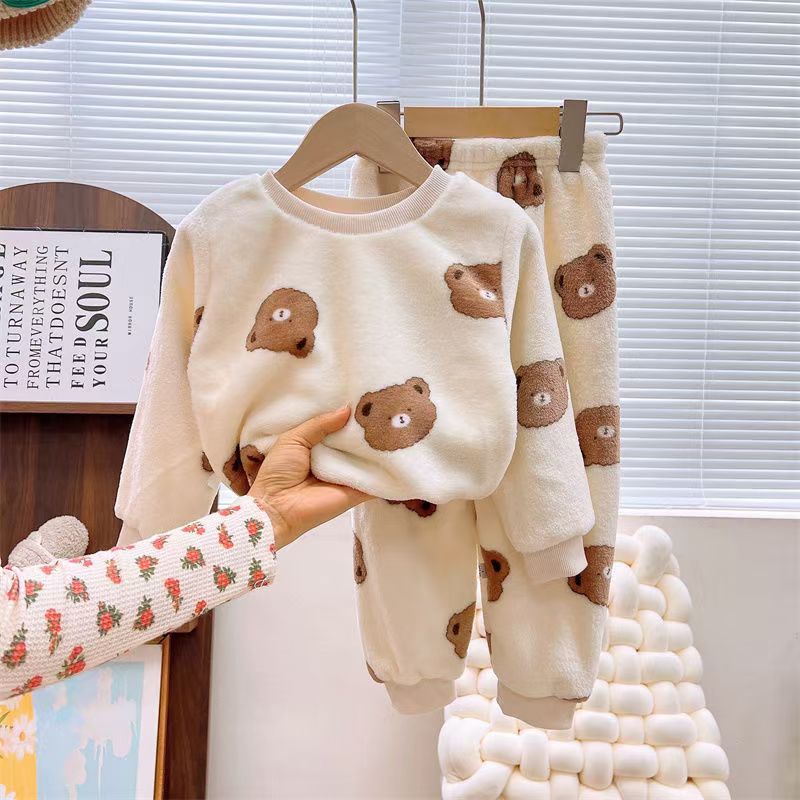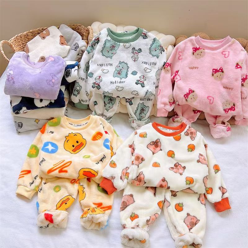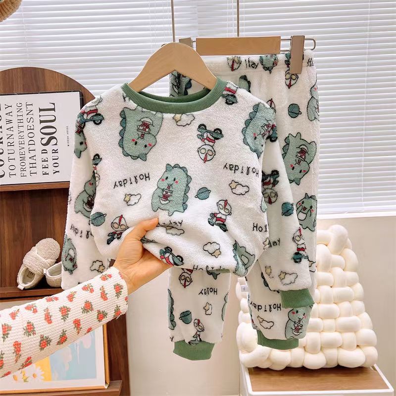 Ropa de Casa Cálida de Felpa para Niños Conjunto de Dos Piezas Otoño e Invierno Bebé Dibujos Animados Lindo Pijama para Niños y Niñas Traje de Casa