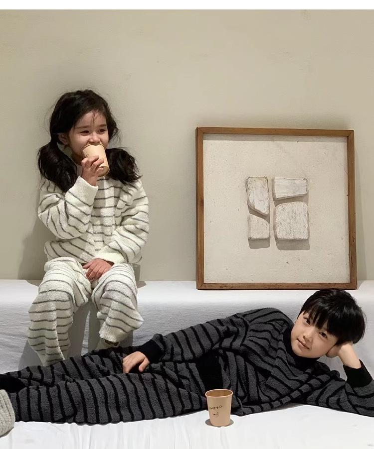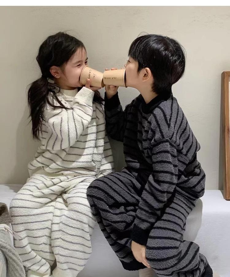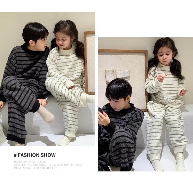 Ropa de Casa de Invierno de Estilo Coreano Nueva de Medio Terciopelo para Niños y Niñas, Conjunto de Pijama Grueso para Niños Suave y Cómodo