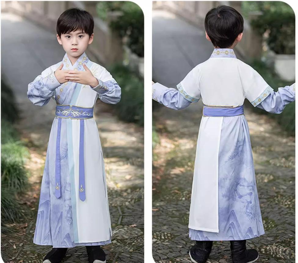Traje Tang de estilo chino de la dinastía Han para niños y niñas, estilo antiguo, guapo disfraz antiguo para niños, elegante disfraz chino para bebé, estilo primavera y otoño