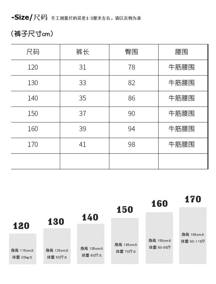 120cm, 130cm, 140cm, 150cm, 160cm, 170cm