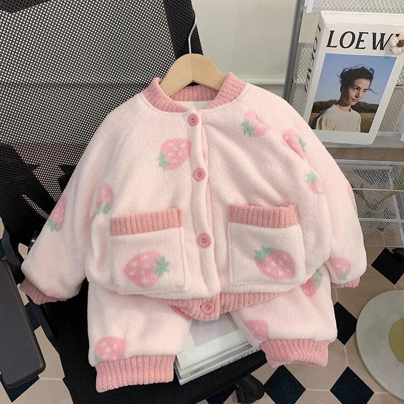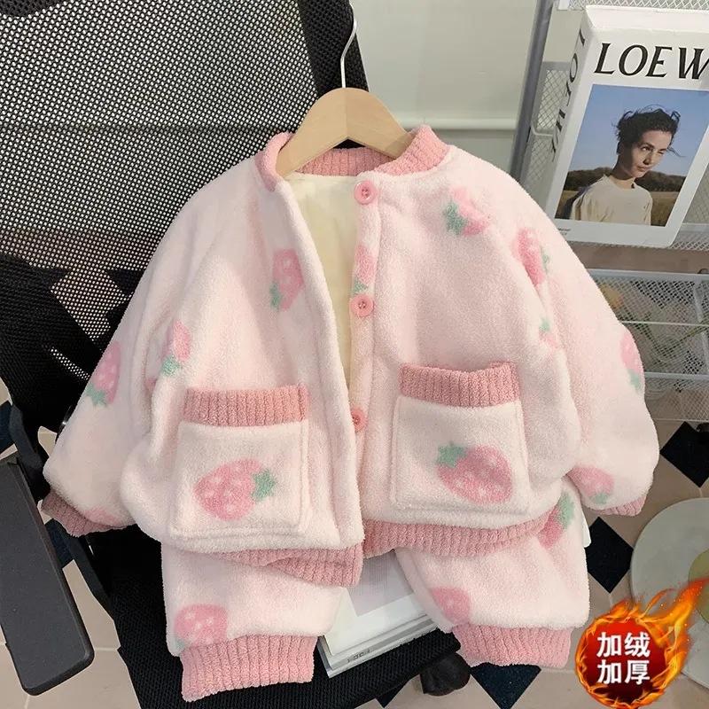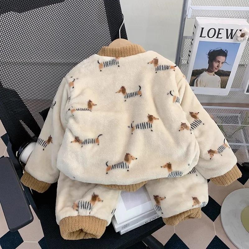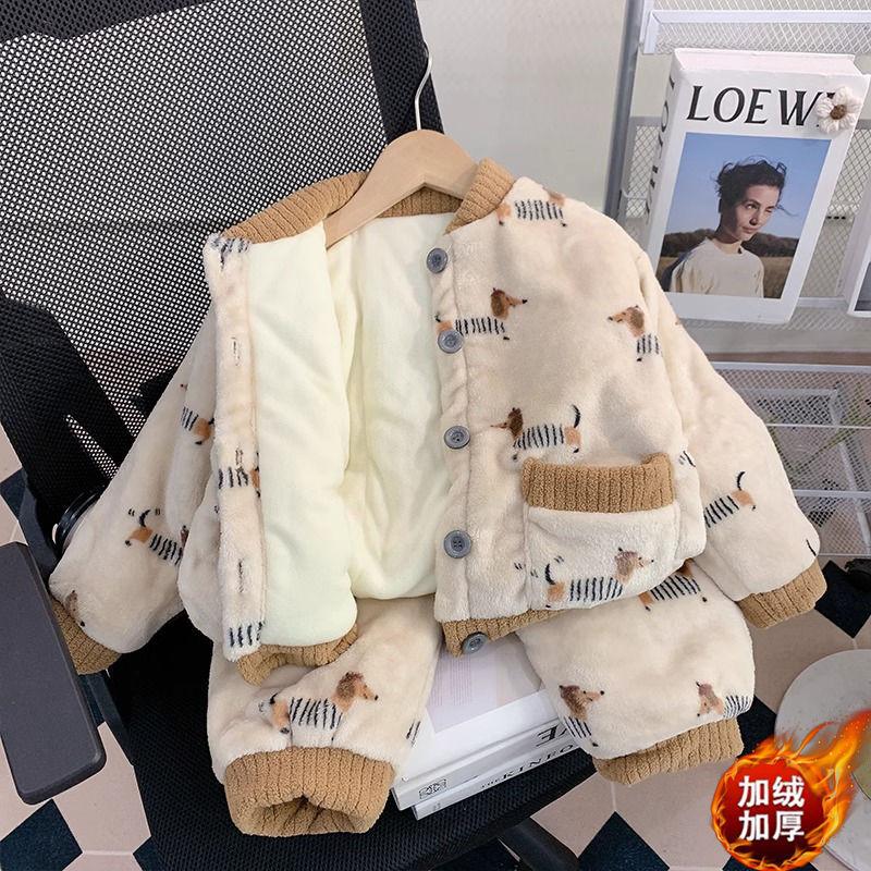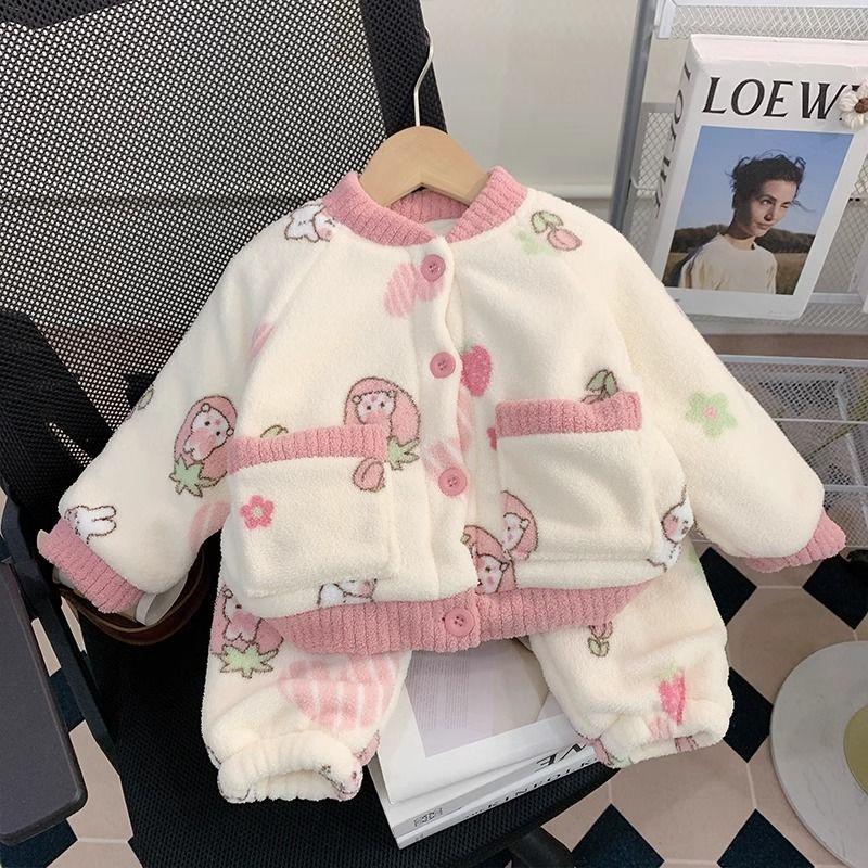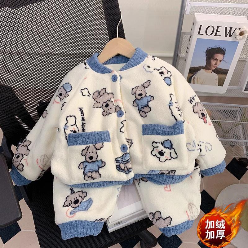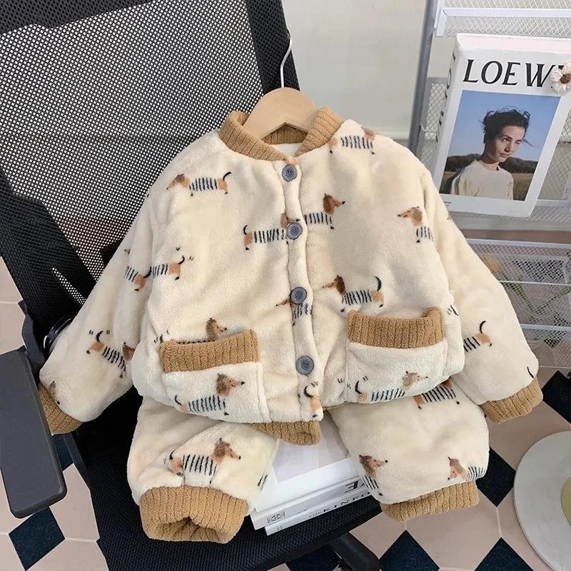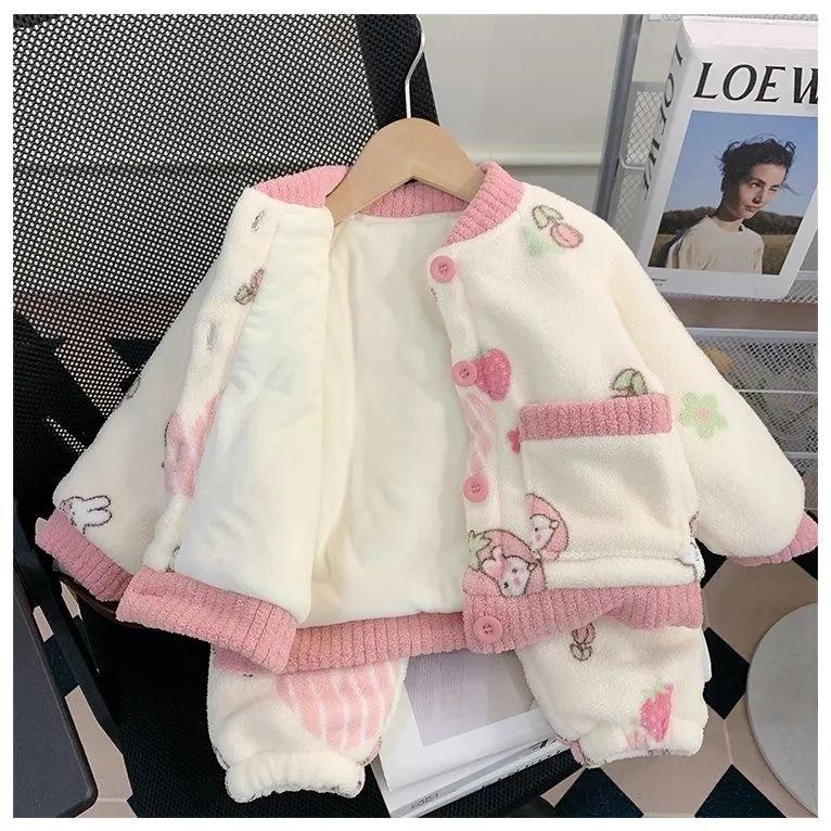Pijamas de Franela para Niños Otoño e Invierno Forro Polar Espesado Niños y Niñas Terciopelo Coral Ropa para el Hogar Bebé Invierno Cálido