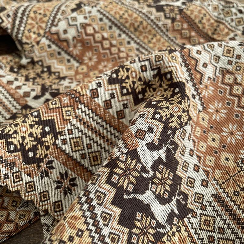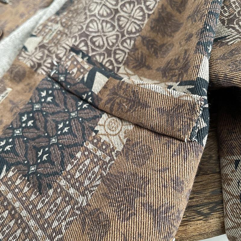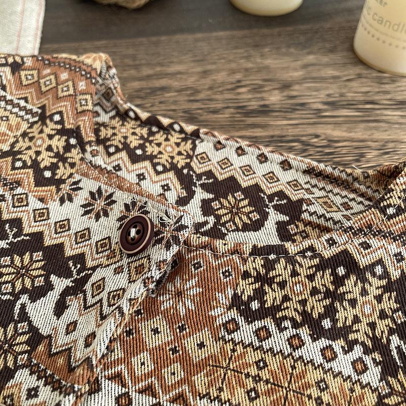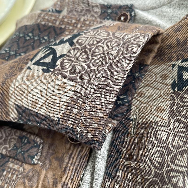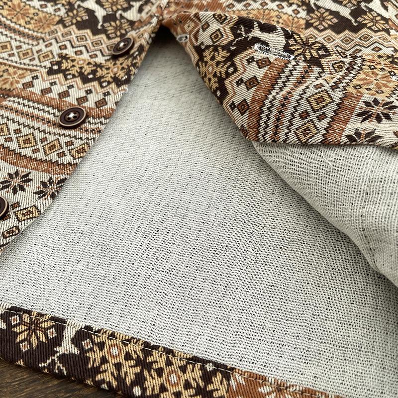 Retro all-over printed three-piece set yellow, Retro all-over printed three-piece set brown