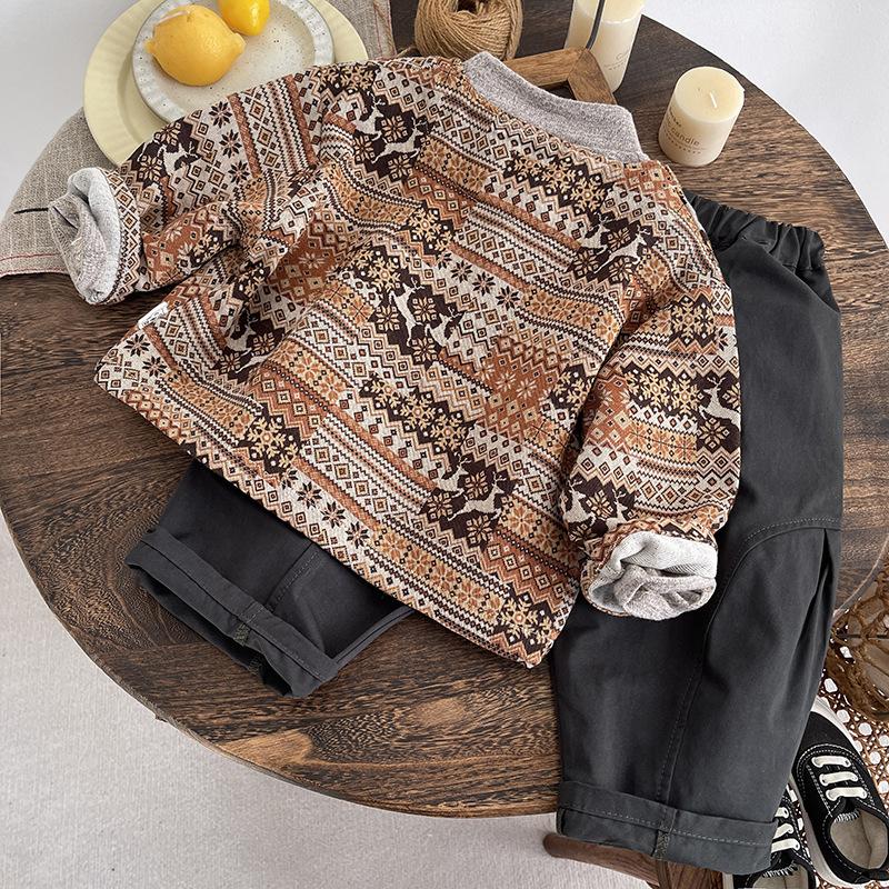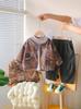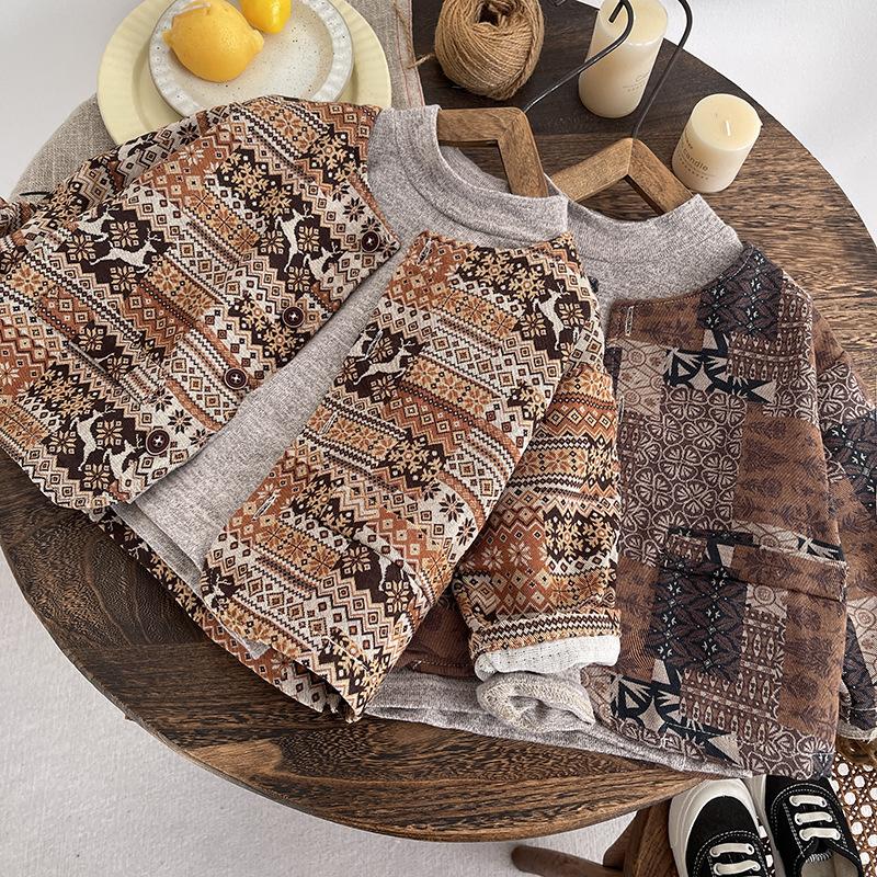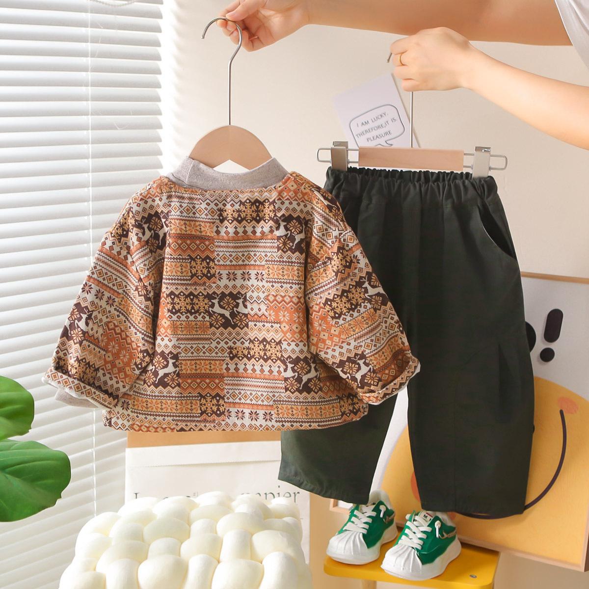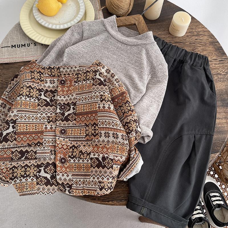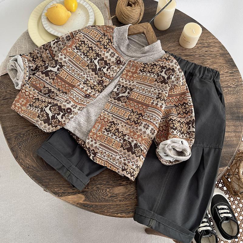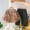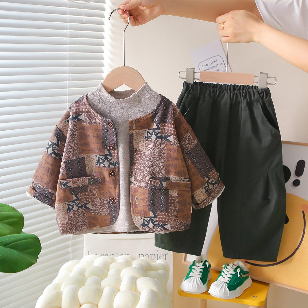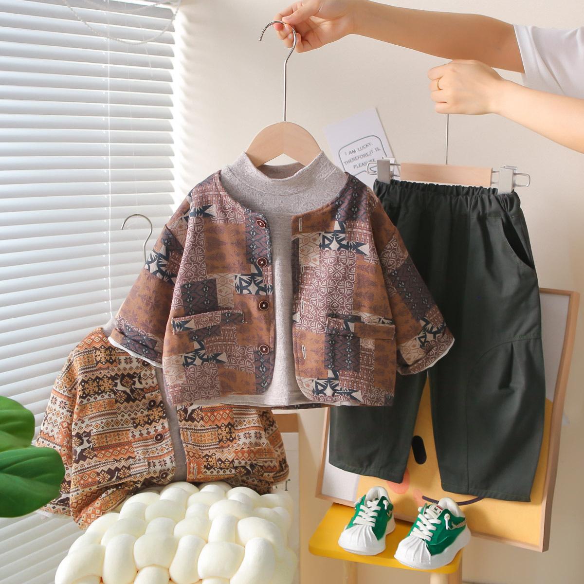 Conjunto de Otoño para Niño 2025 Nuevo Elegante Bebé Retro Ropa Estampada Completa Primavera y Otoño Conjunto de Tres Piezas para Niños Pequeños Moderno