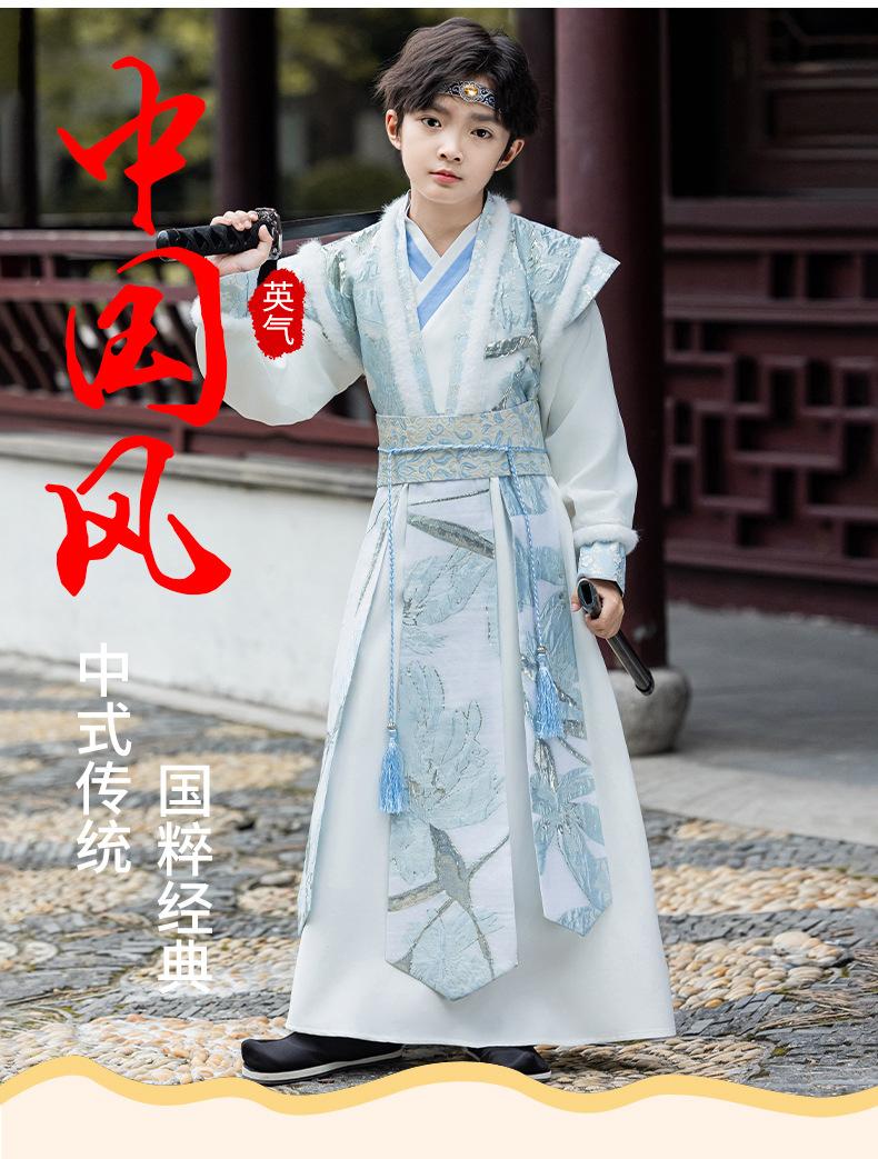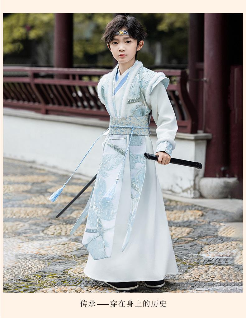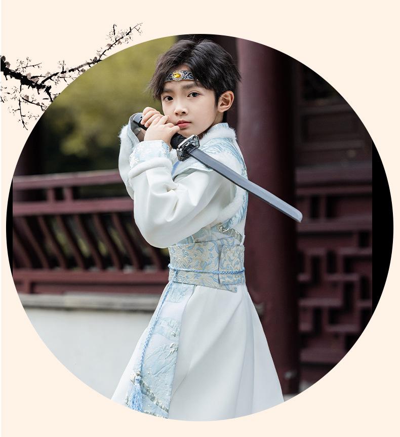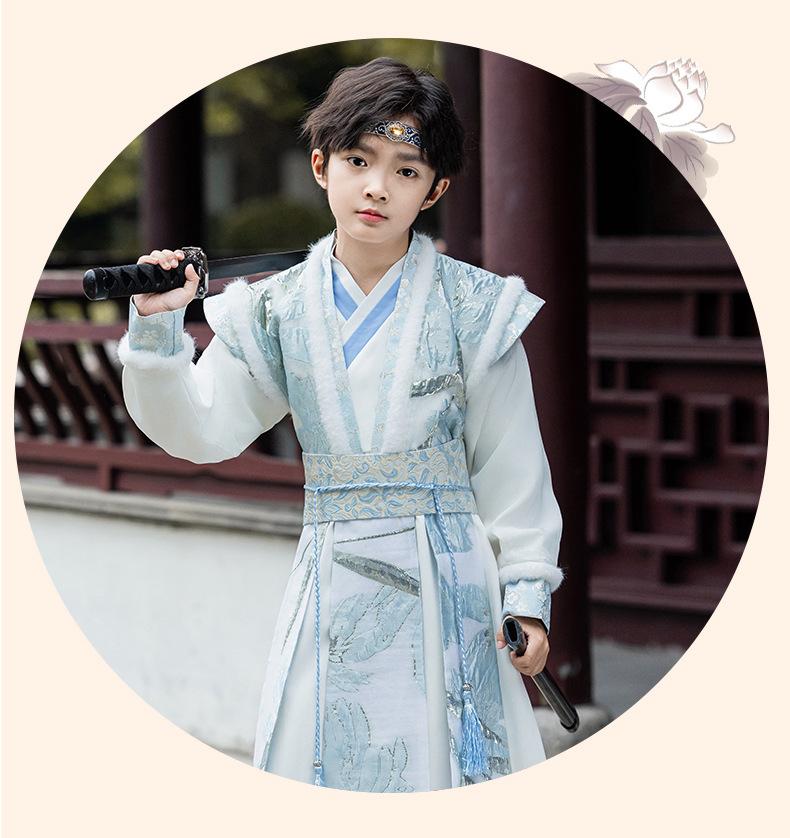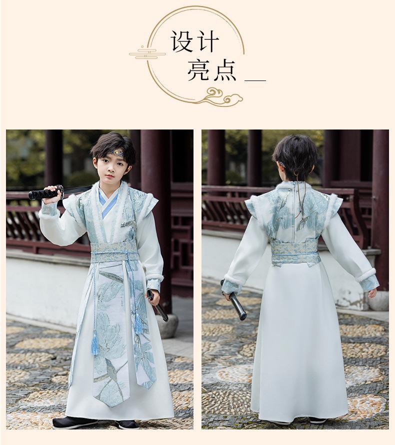 Nuevo Traje Hanfu Antiguo para Otoño e Invierno para Niños Traje Traje Traje de Actuación para Niños Hanfu Hecho en Ming Recitación de Poesía Juvenil Artes Marciales
