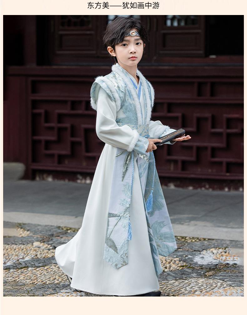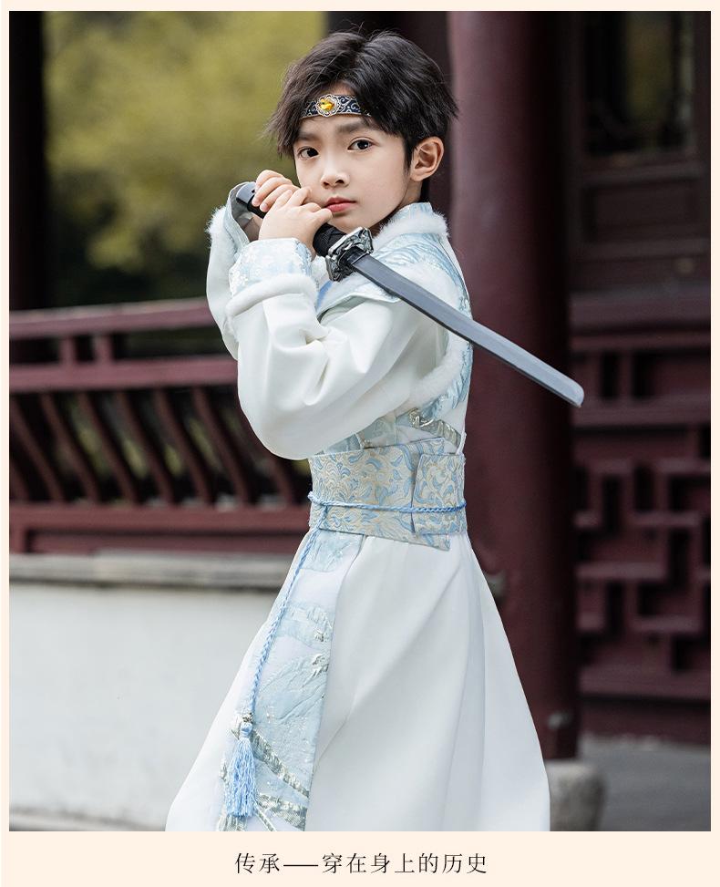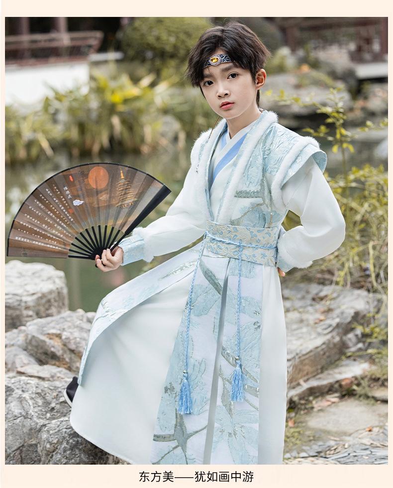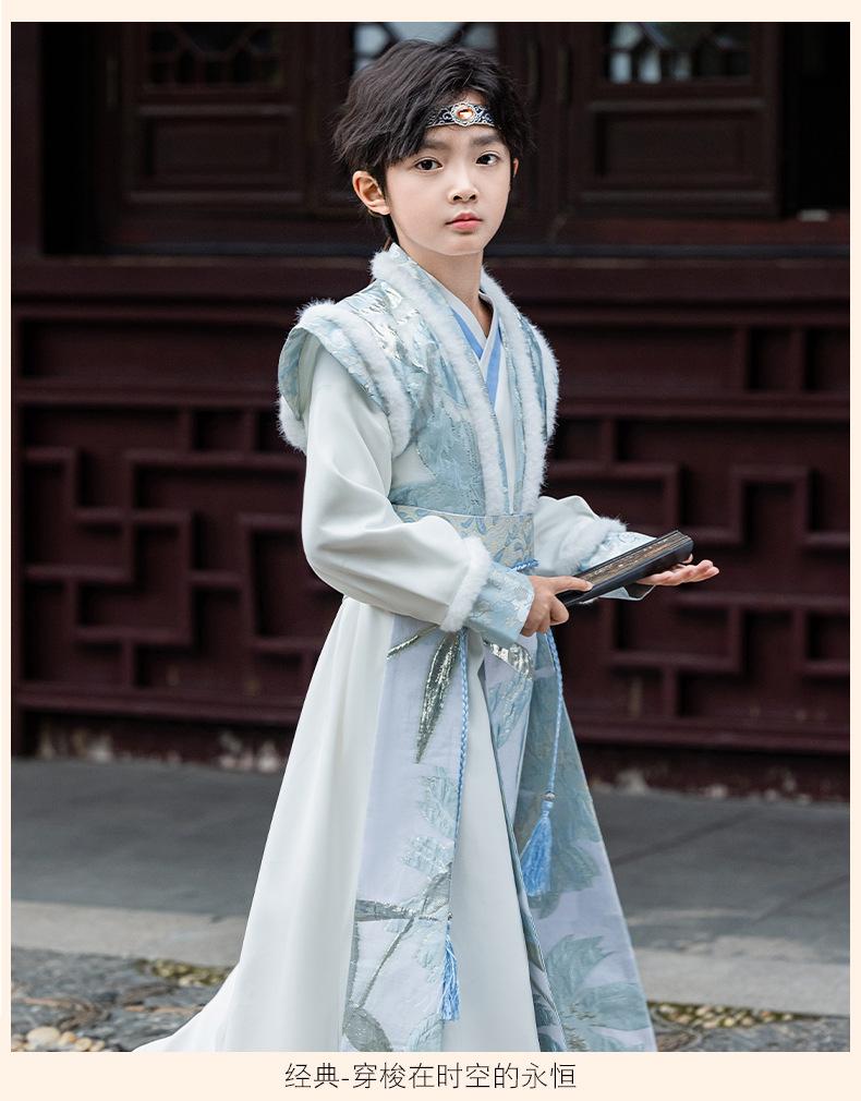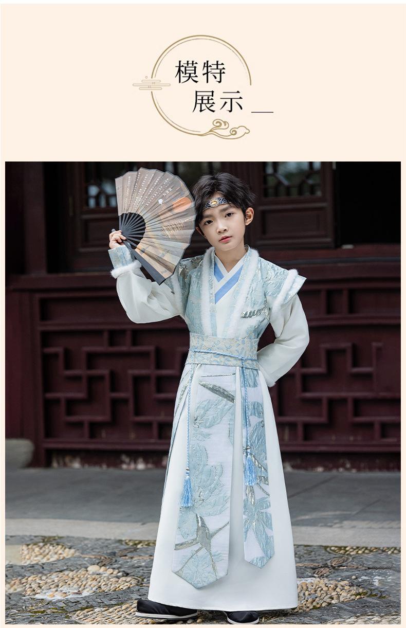 Nuevo Traje Hanfu Antiguo para Otoño e Invierno para Niños Traje Traje Traje de Actuación para Niños Hanfu Hecho en Ming Recitación de Poesía Juvenil Artes Marciales
