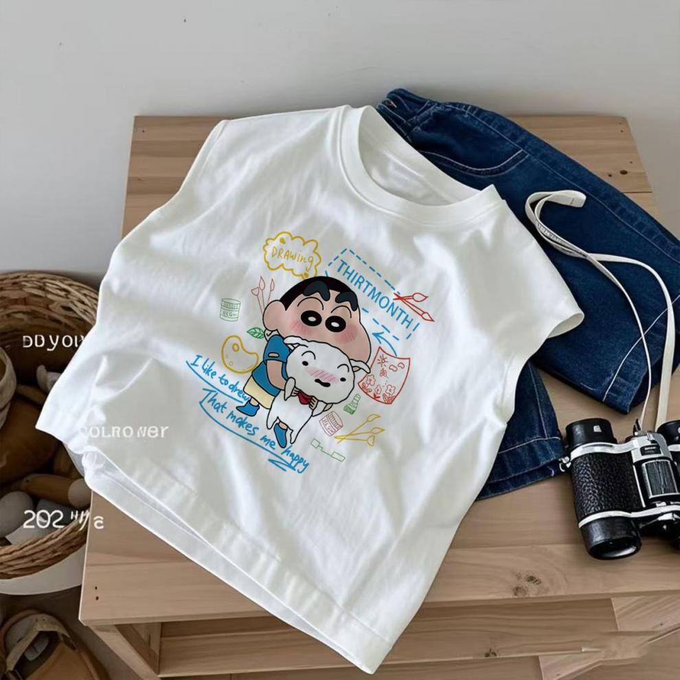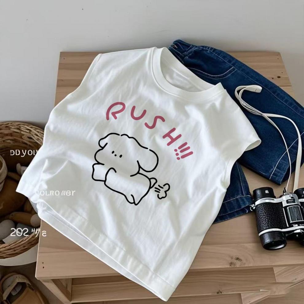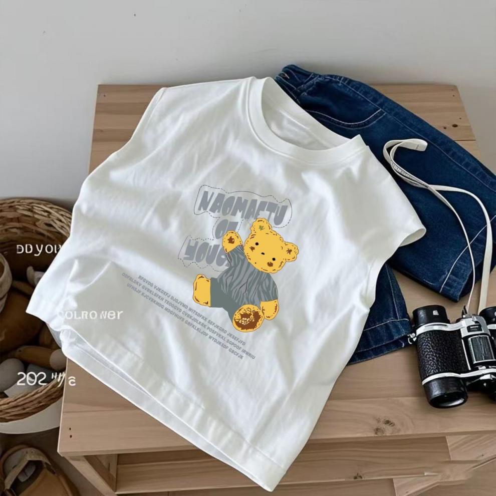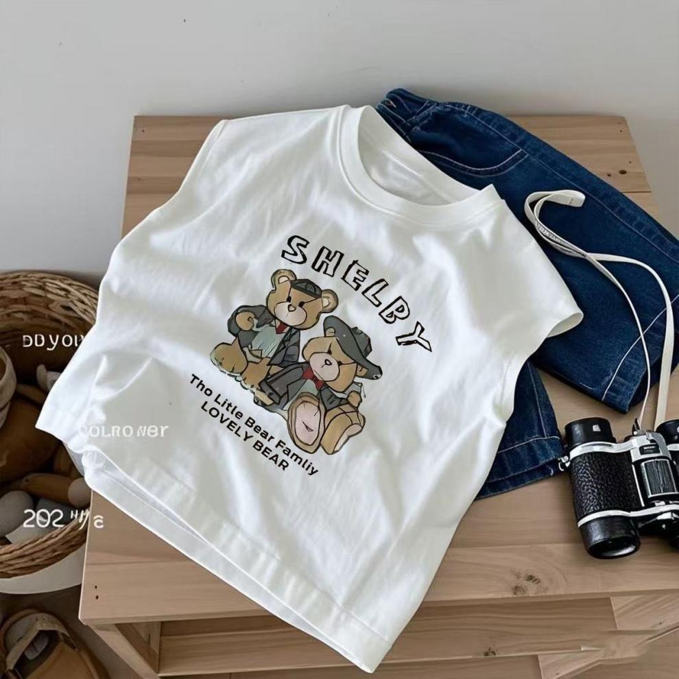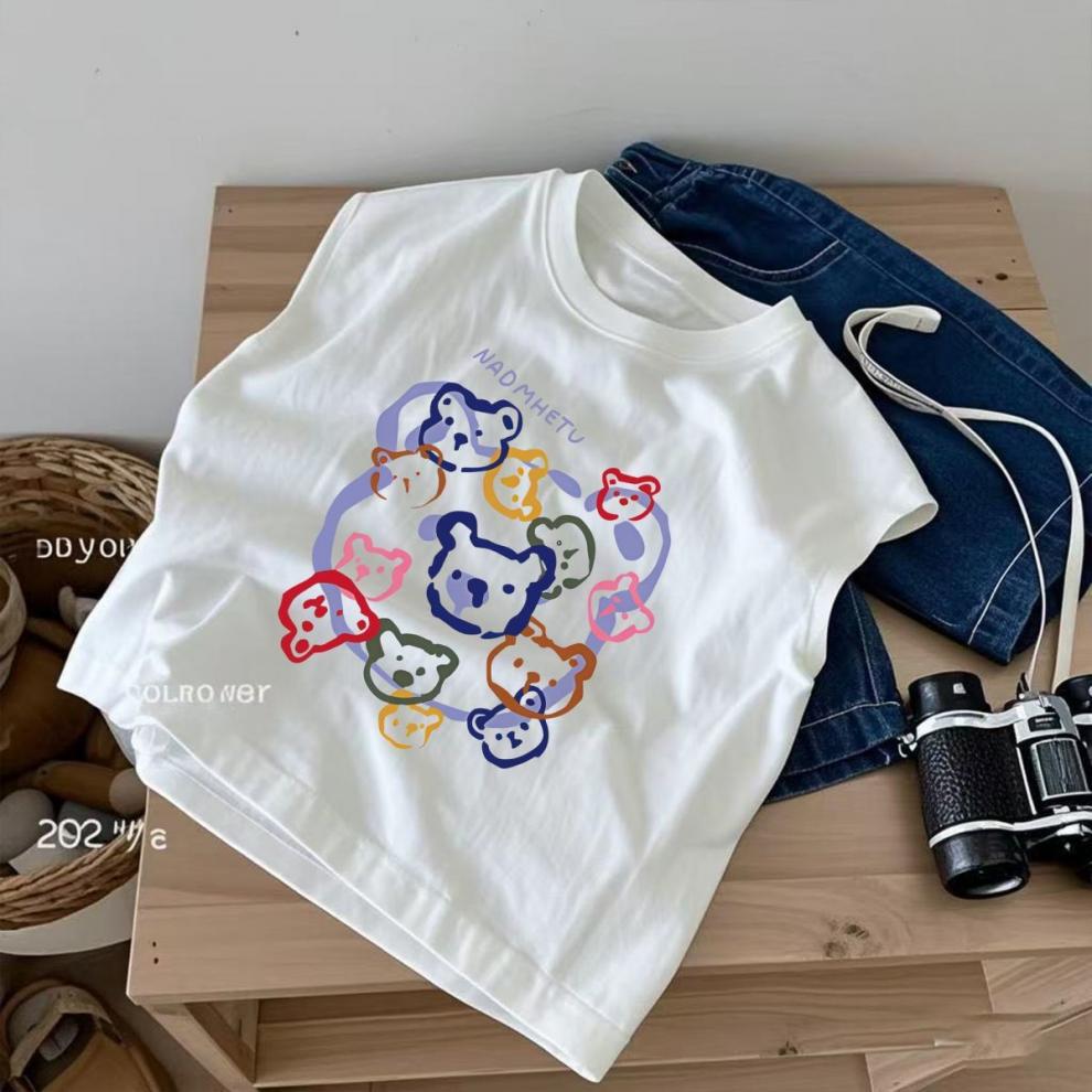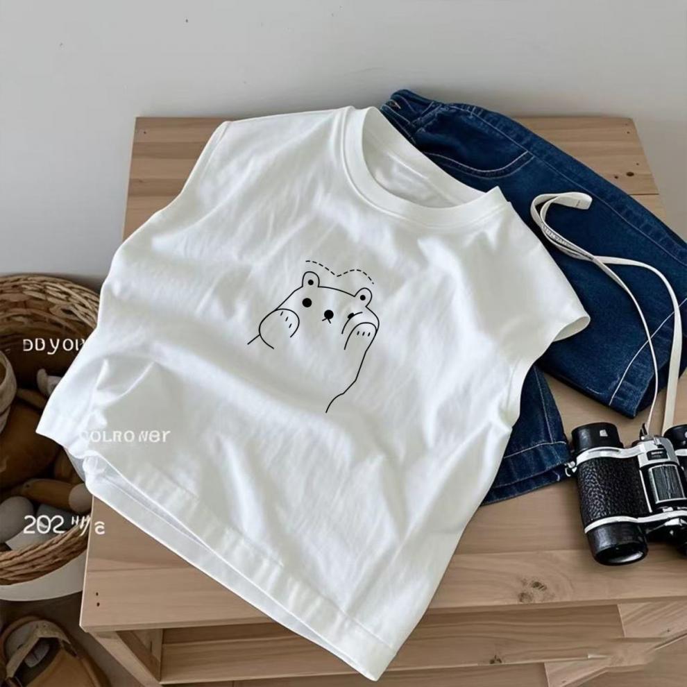 Verano Nuevo Chaleco de Algodón Puro para Niños, Transpirable, Delgado, Estampado de Patrón Simple, Súper Llamativo