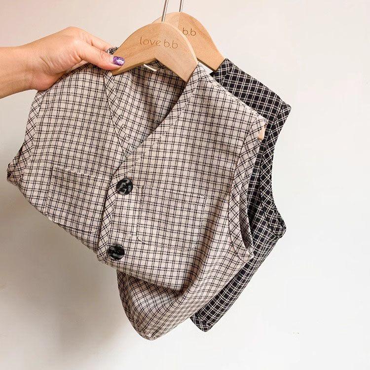 Chaleco para niños 2025 Verano Nuevo Chaleco Delgado a Cuadros para Niños y Niñas Estilo Kindergarten Tops Versátiles para Ropa Exterior