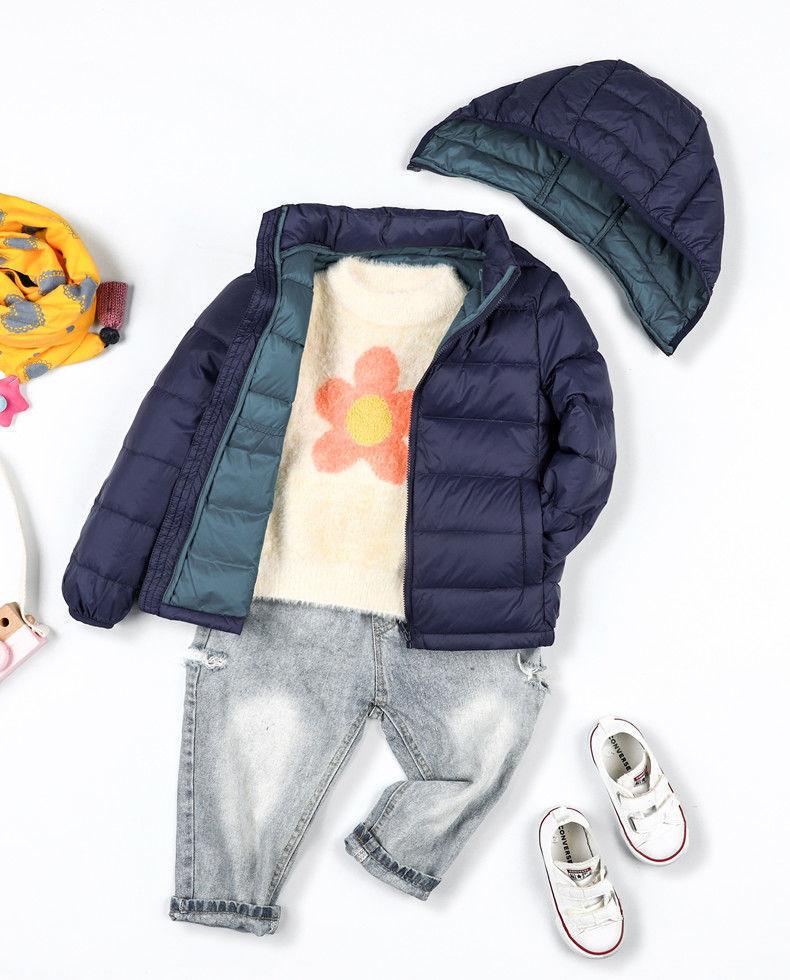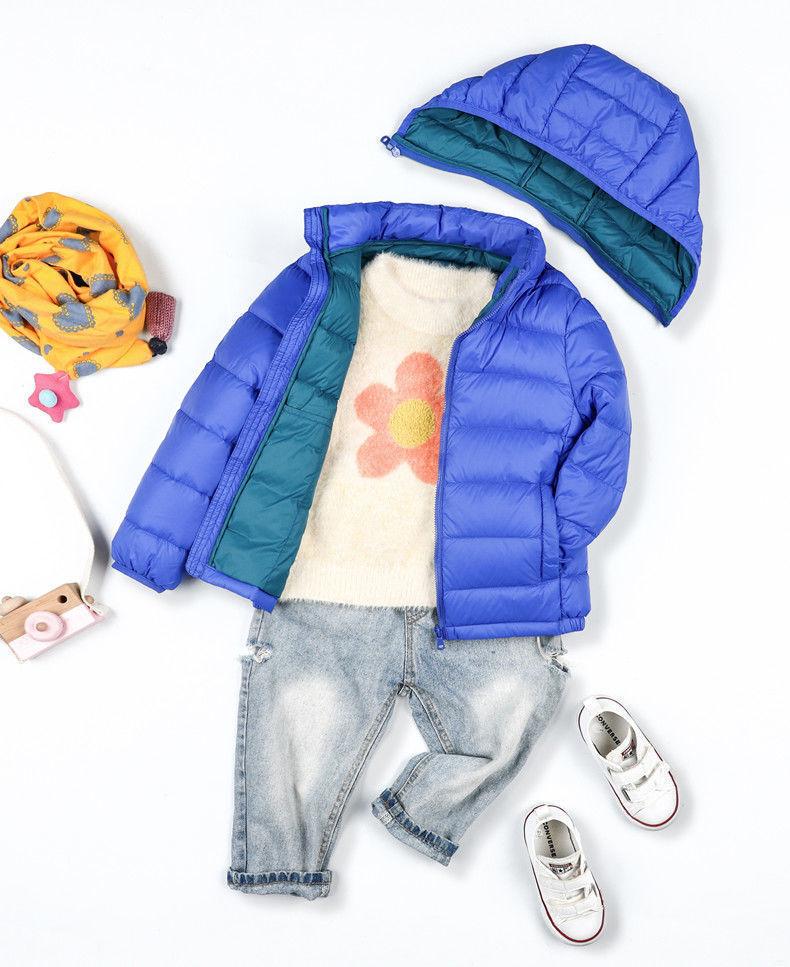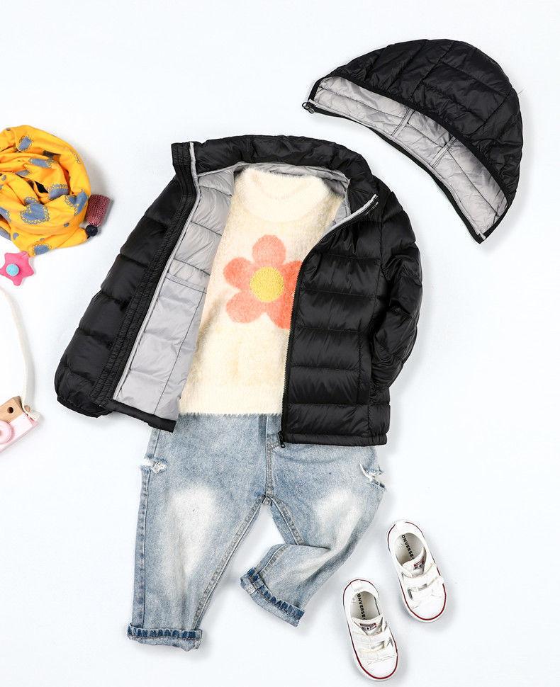 Chaqueta de plumón para niños para niños mayores, Ropa infantil ligera para niños y niñas, Capucha desmontable elegante, Abrigo de plumón de pato blanco