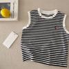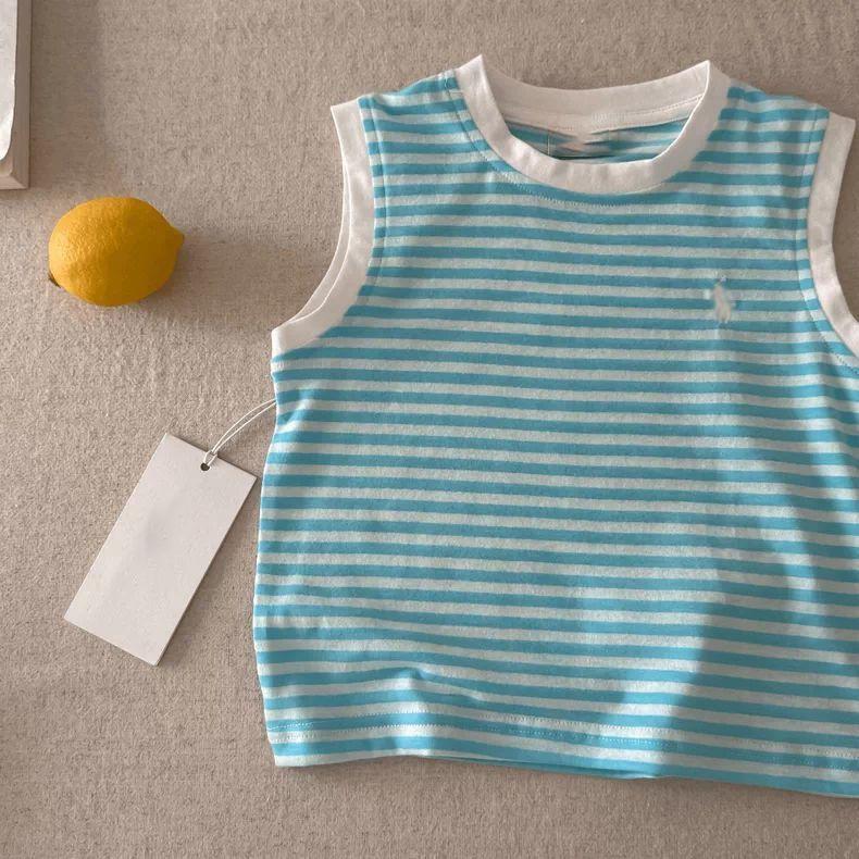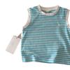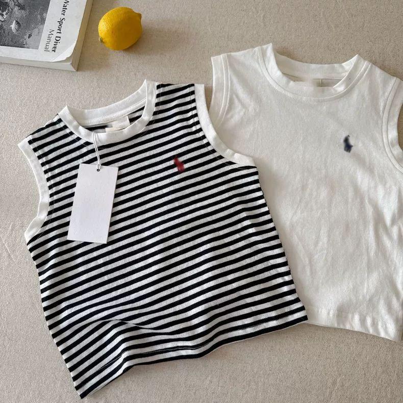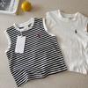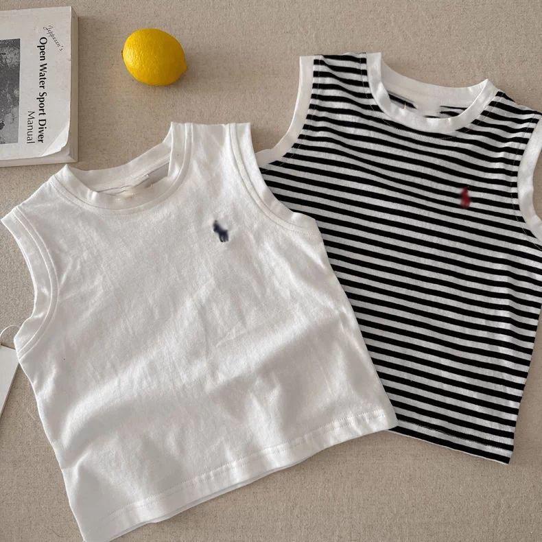 Chaleco de Verano para Niños y Niñas Moda Bebé Niños Elegantes Modernos Estilo Coreano Rayado Bordado Dibujos Animados Camiseta sin Mangas Top