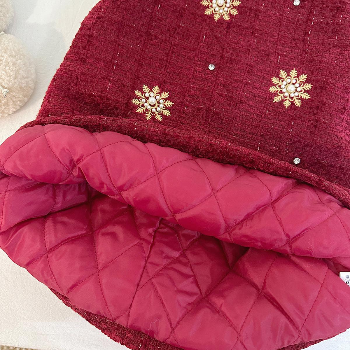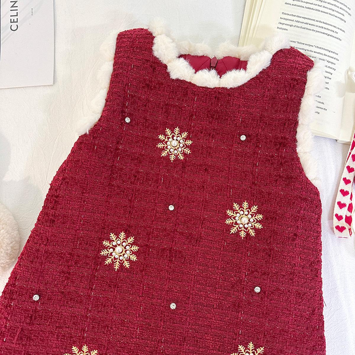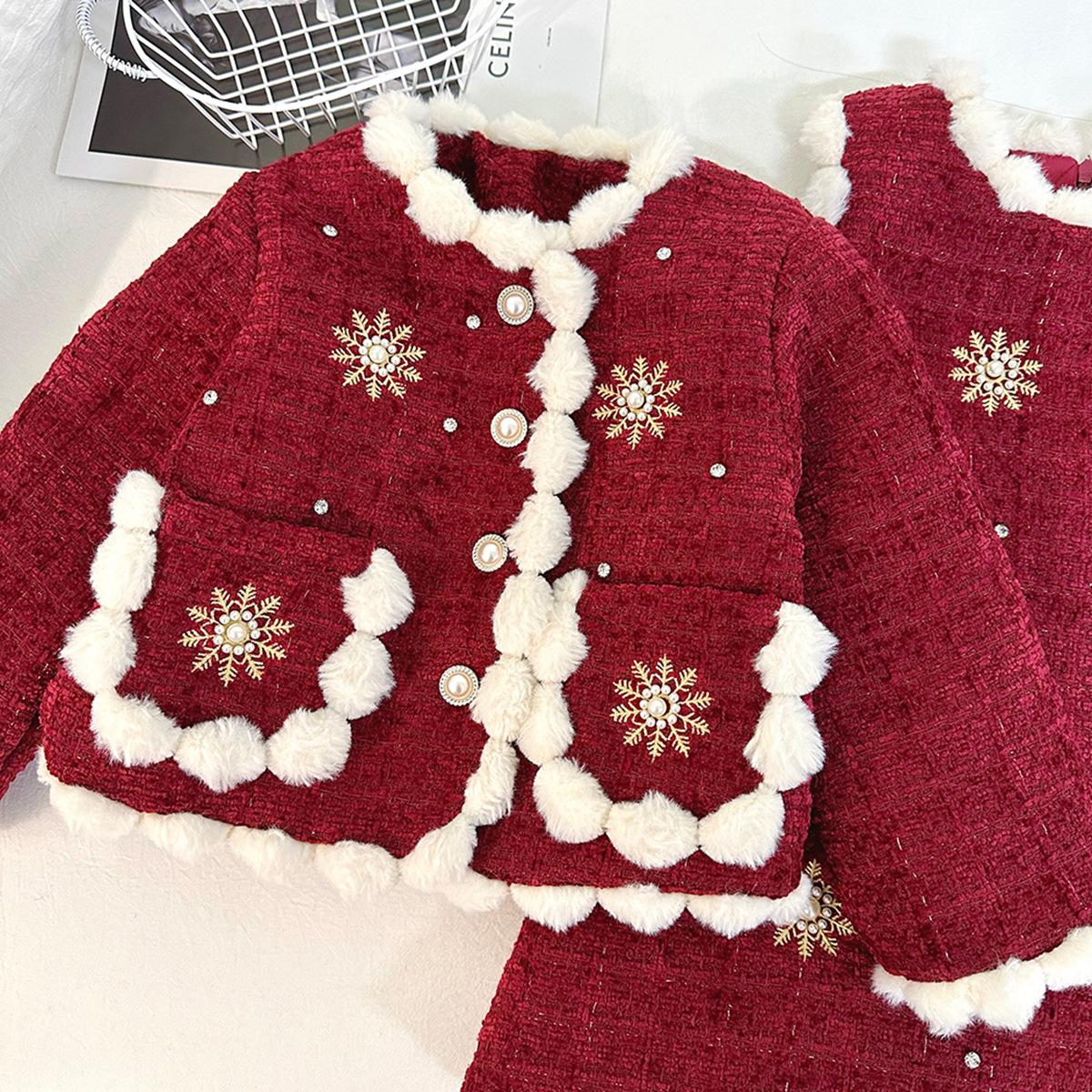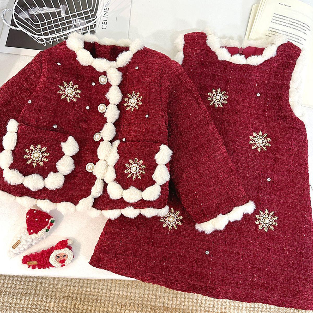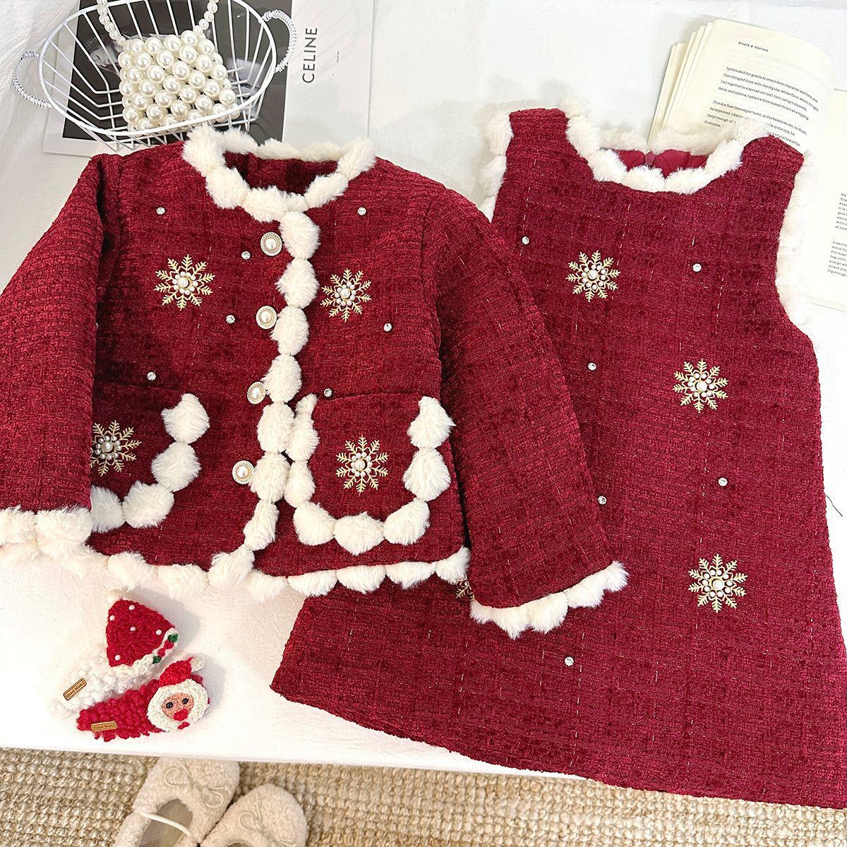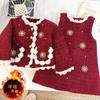 Conjunto para Niñas Estilo Chanel con Forro de Algodón, Invierno 2025 Nuevo Elegante Chaqueta Gruesa y Vestido Chaleco de Dos Piezas para Niños