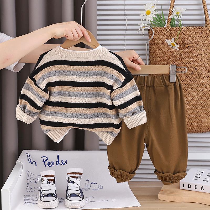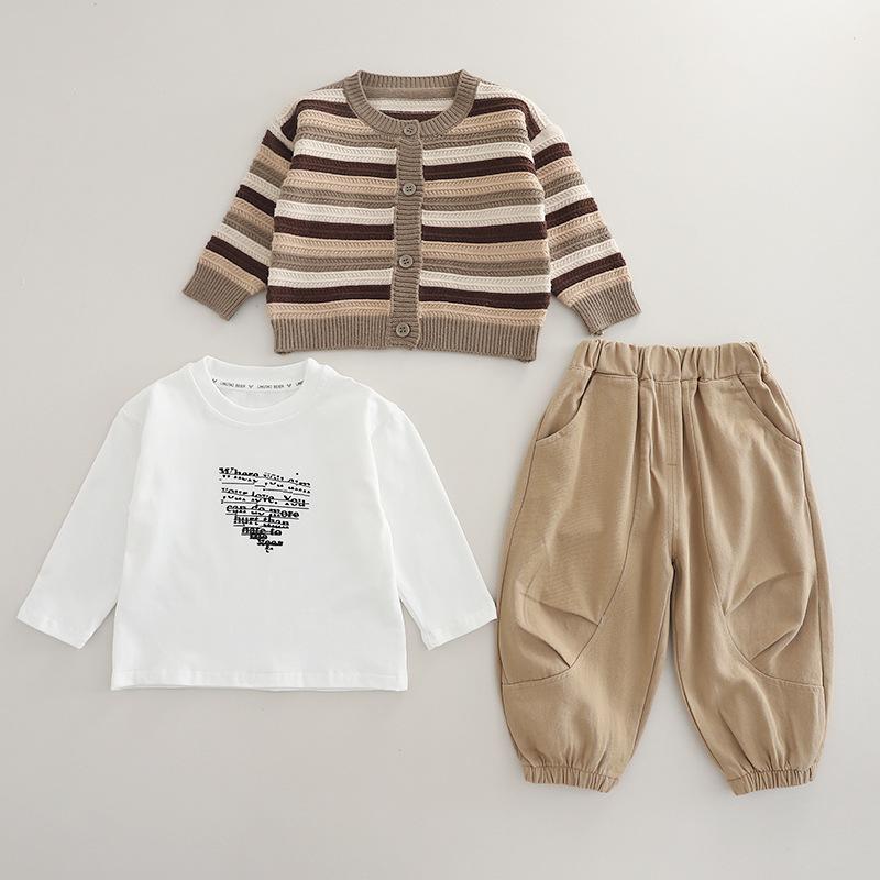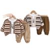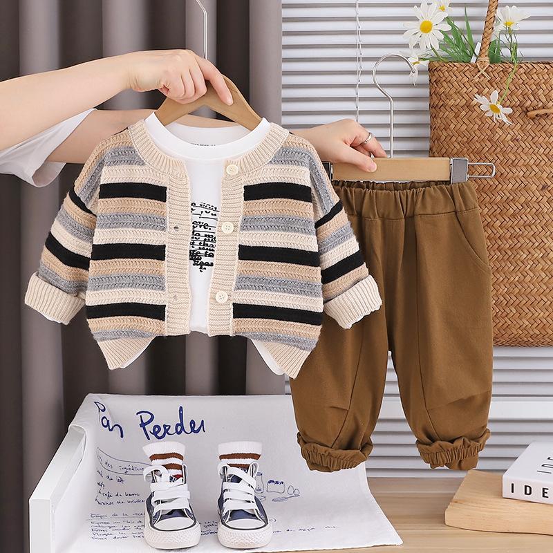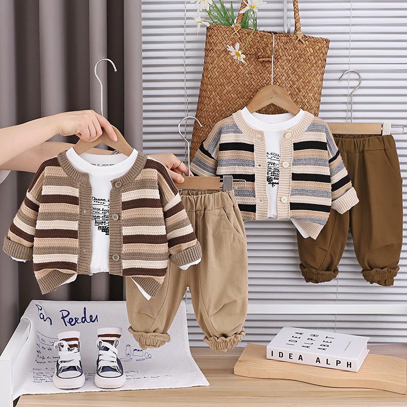 Otoño e Invierno 2025 Nuevo Estilo Francés Retro Cuello Redondo Rayas en Contraste Suéter Conjunto de Tres Piezas Fábrica de Origen Venta al por Mayor