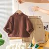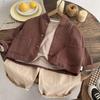 Traje de Primavera y Otoño para Niños 2025 Nuevo Conjunto Casual Retro de Tres Piezas de Camisa para Niños Ropa de Otoño para Bebé Dropshipping