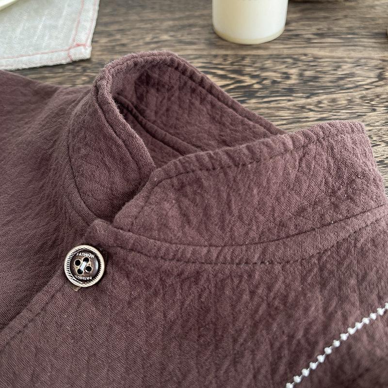 Brown 25q retro embroidered striped long-sleeved three-piece set