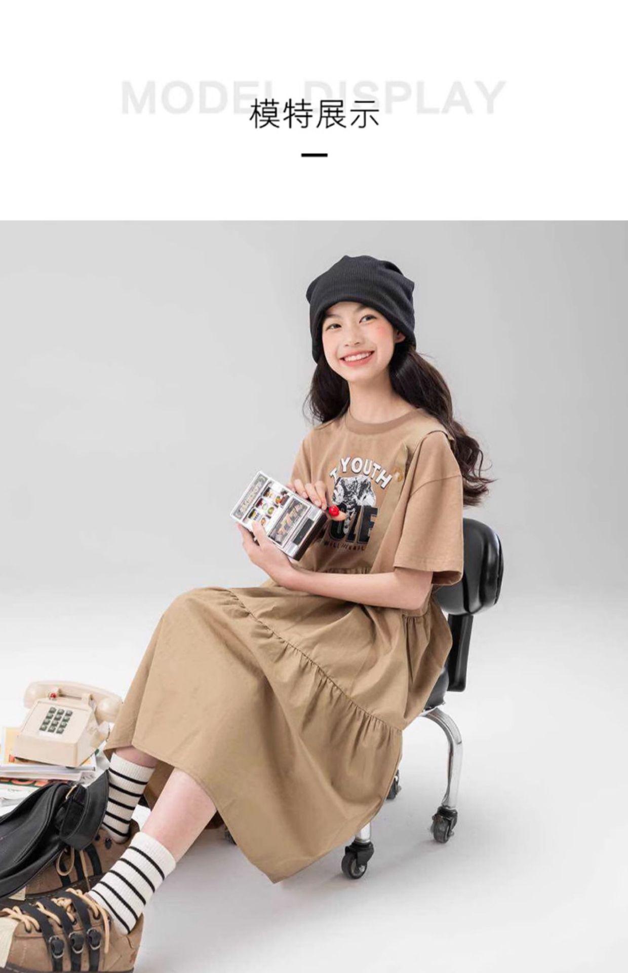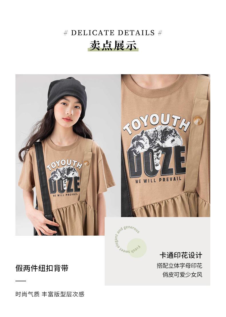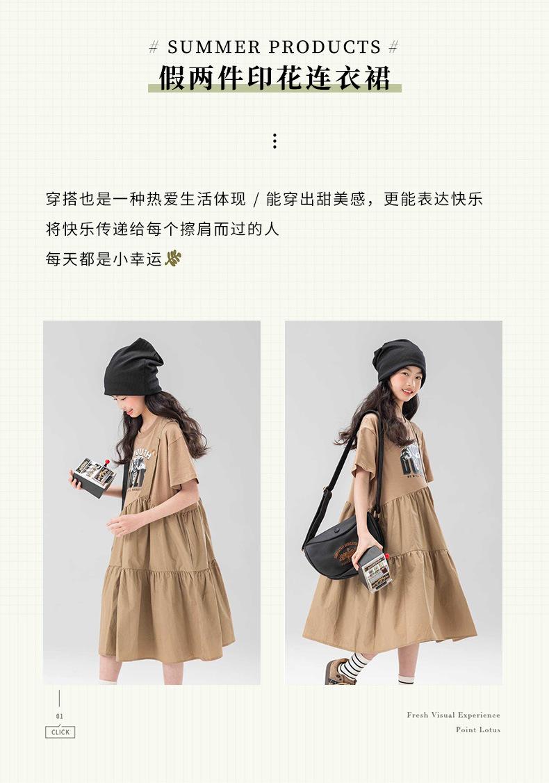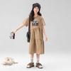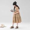 Vestido color café para niña, conjunto de verano, ropa infantil 2025 nuevo verano, vestido de niña grande a la moda, ropa infantil de dos piezas falsas