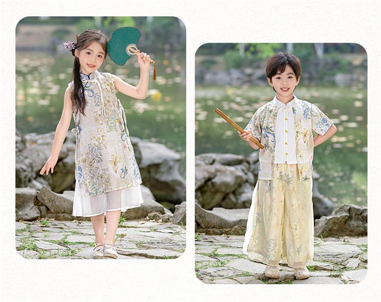 Traje Tang de Verano para Jardín de Niños, Disfraz Antiguo, Ropa de Actuación para Coro para Niños y Niñas, Ropa Tradicional China, Cheongsam, Ropa de Actuación Hanfu Estilo Chino