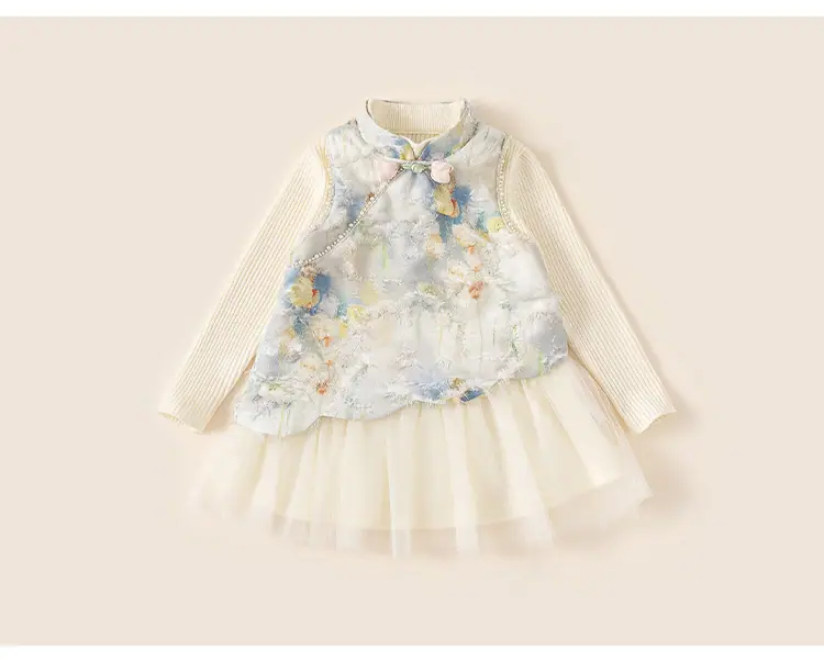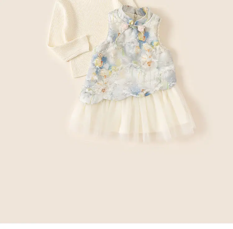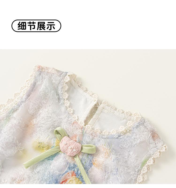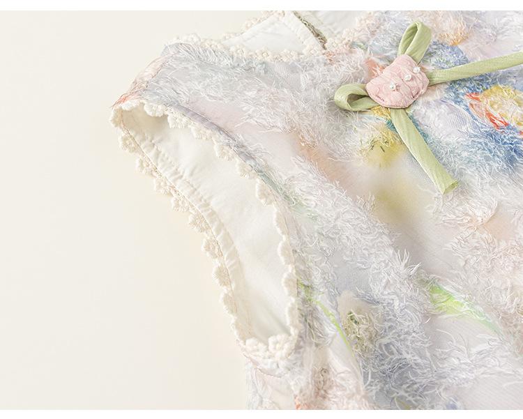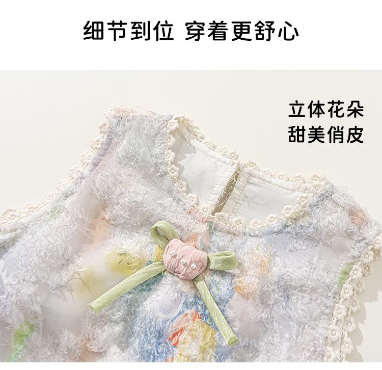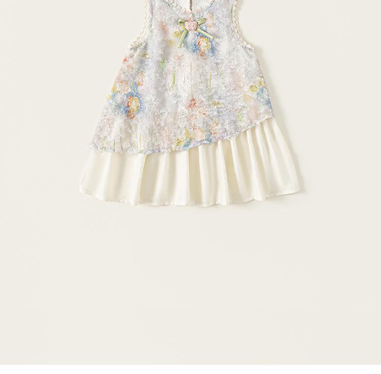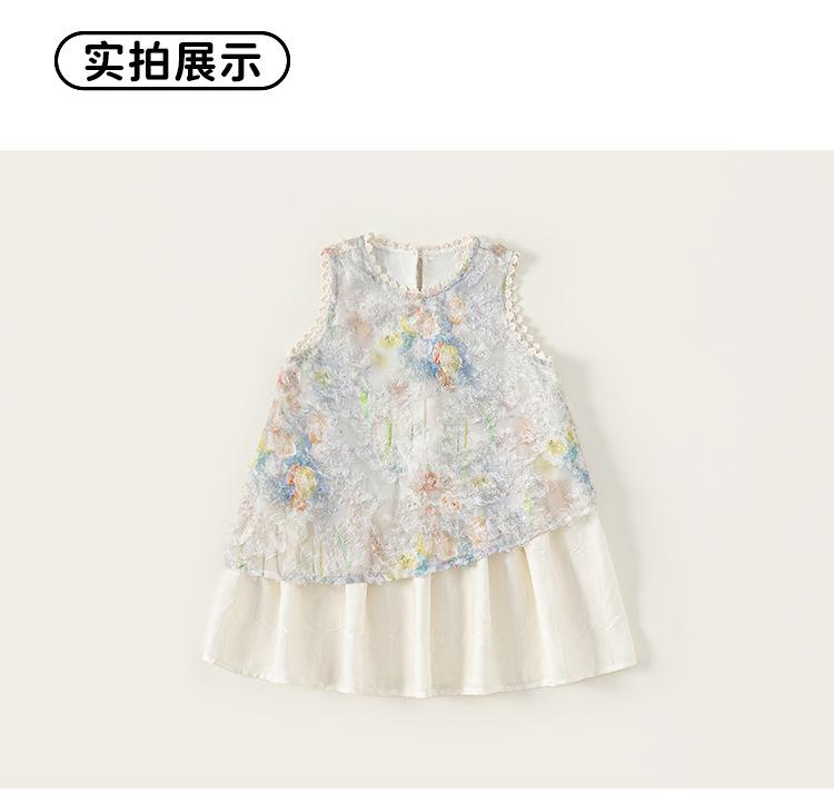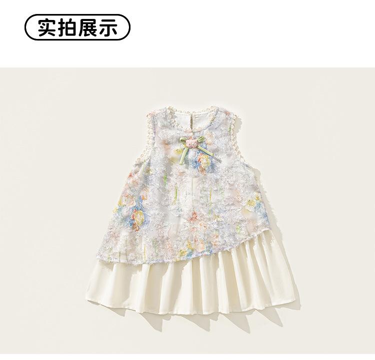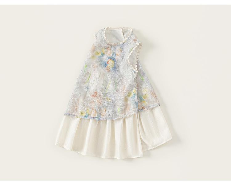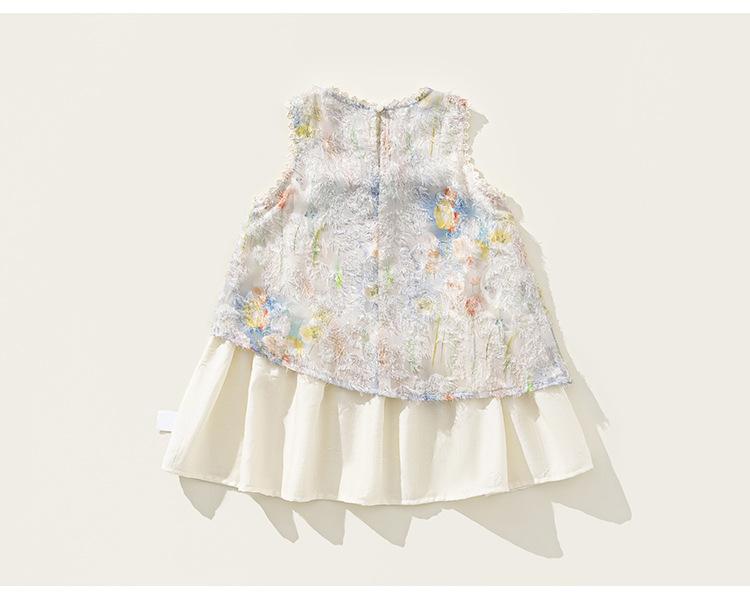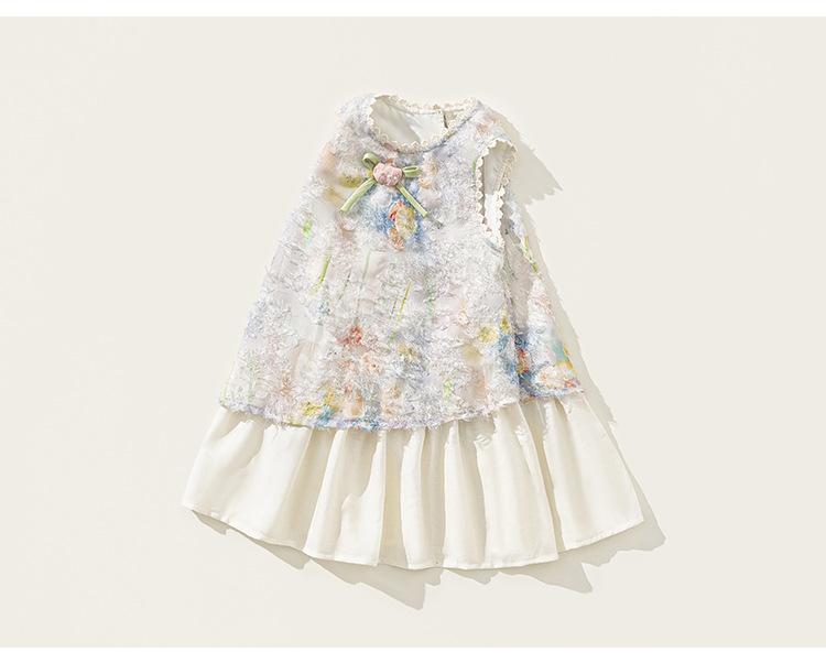 Vestido de Verano Delgado y Elegante con Tulipán A para Niñas Vestido Infantil sin Mangas con Parches