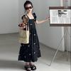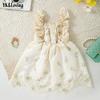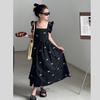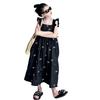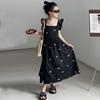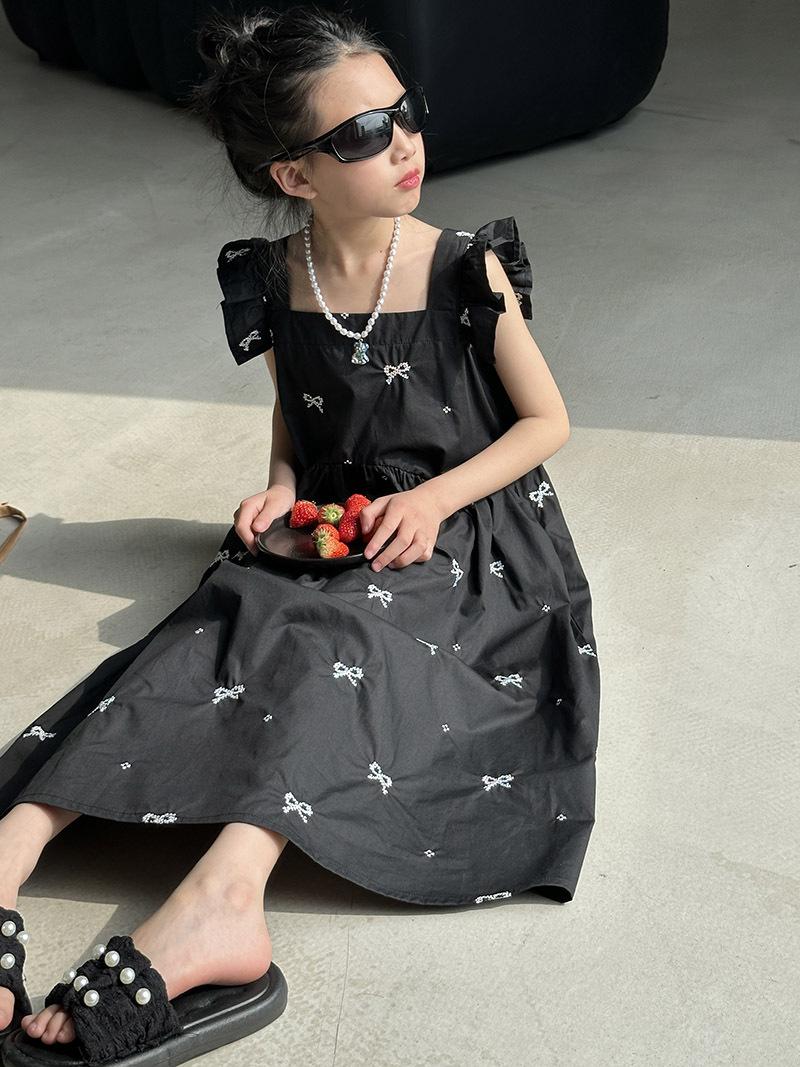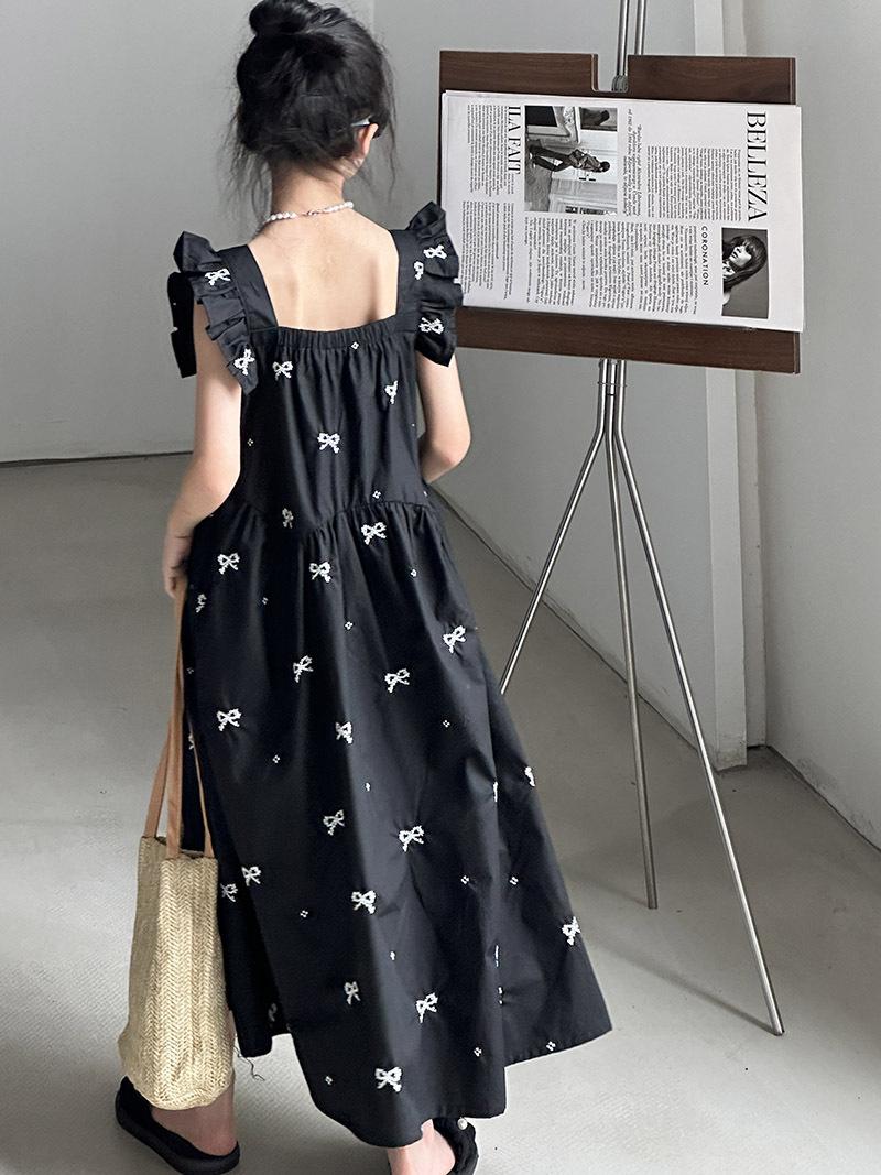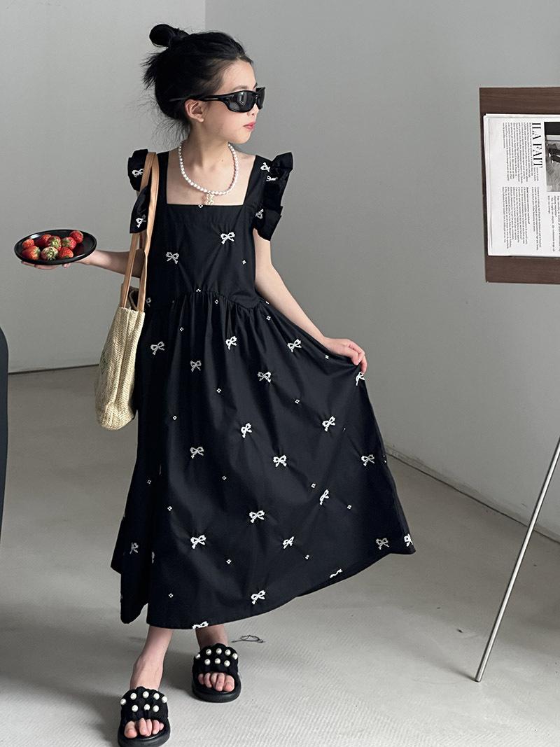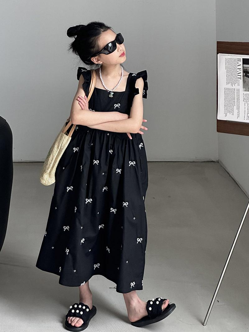 Vestido de Verano para Niñas 2024 Nueva Moda Vestido de Moda Estilo Coreano para Niñas con Lazo y Manga Corta con Vuelo