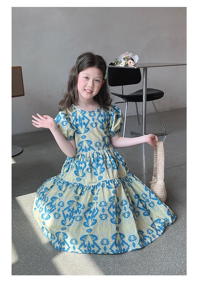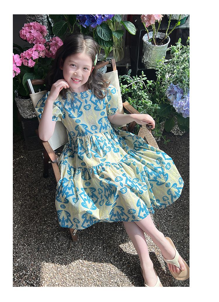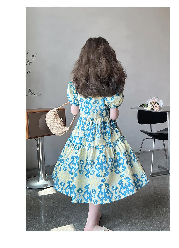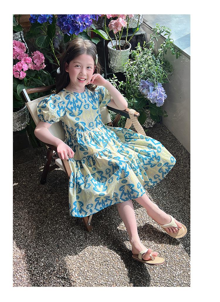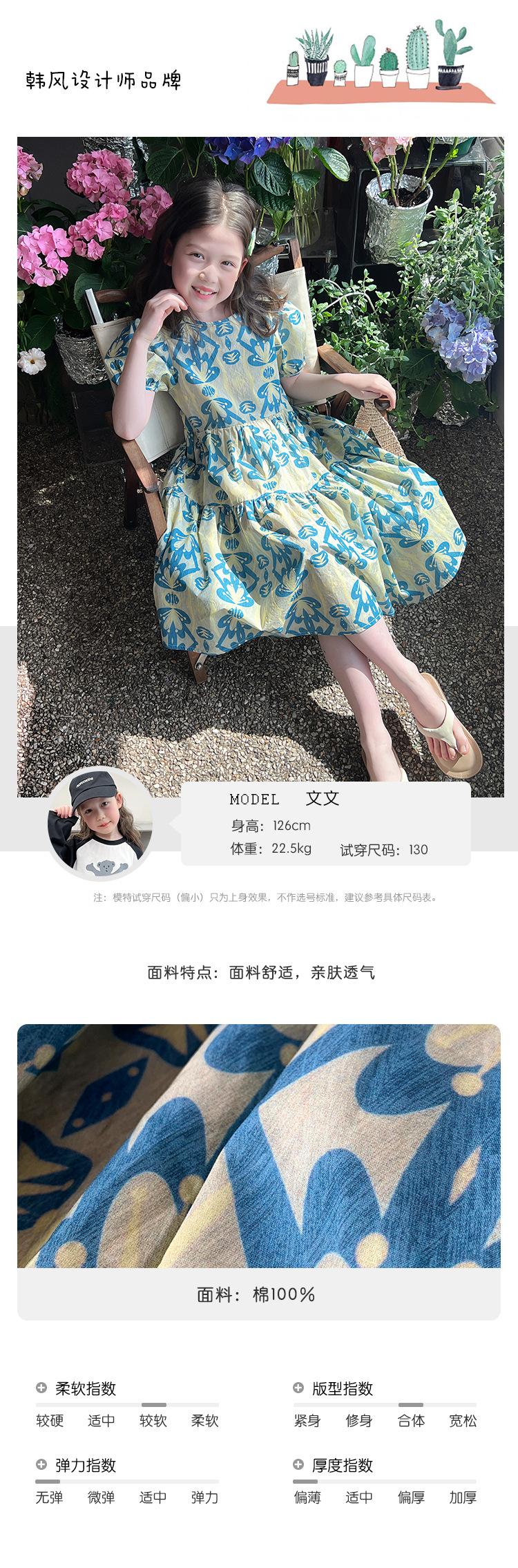 Falda de Princesa Floral para Niña Vestido Elegante para Niños Ropa Infantil Grande Falda de Manga Corta Estilo Nuevo de Verano 2025 para Niña