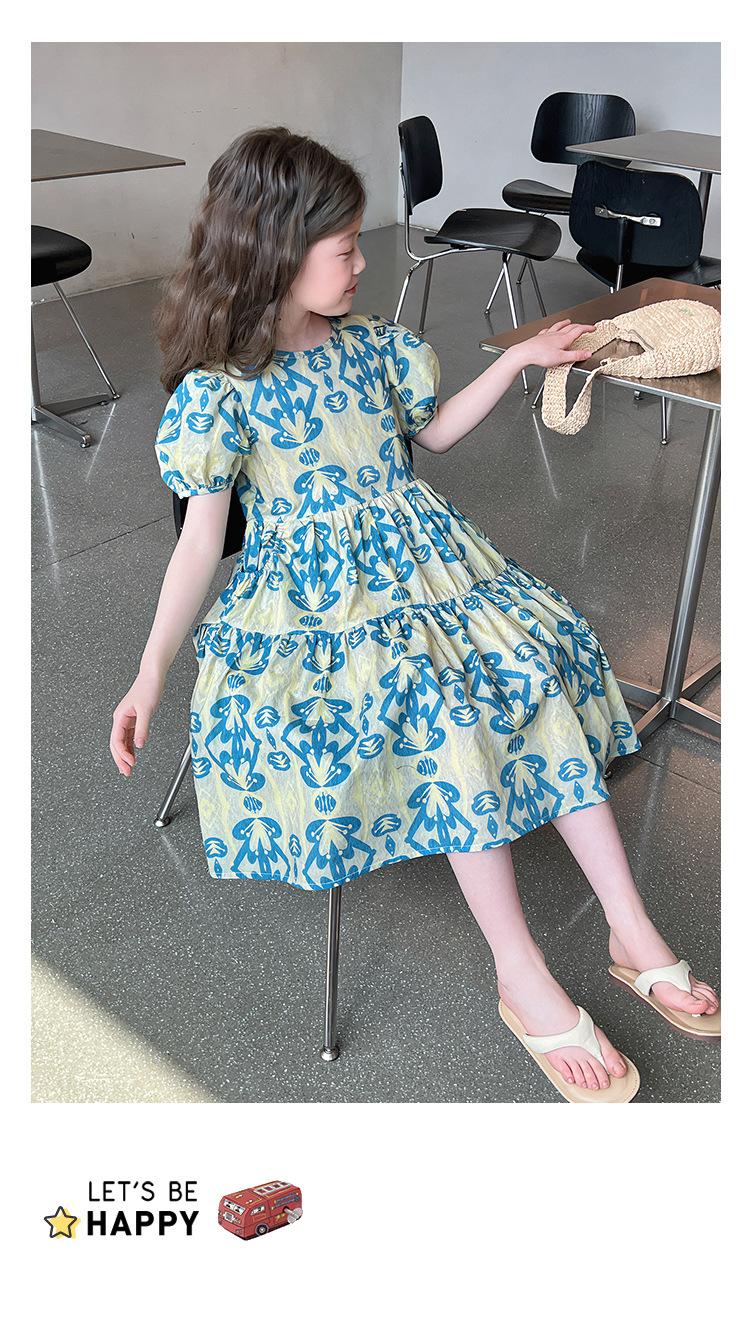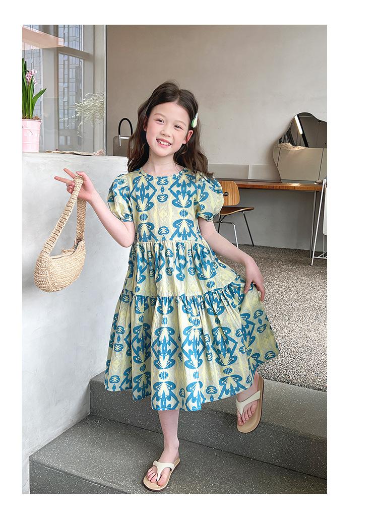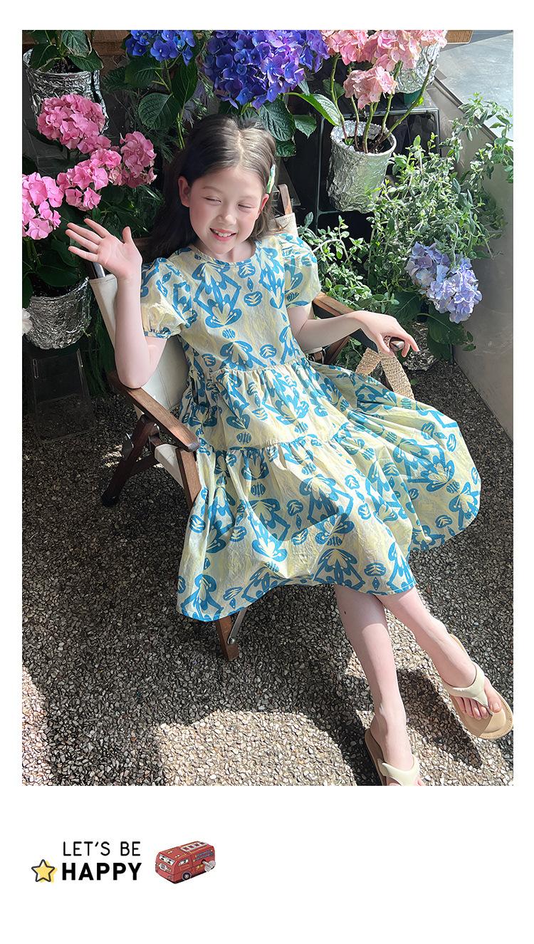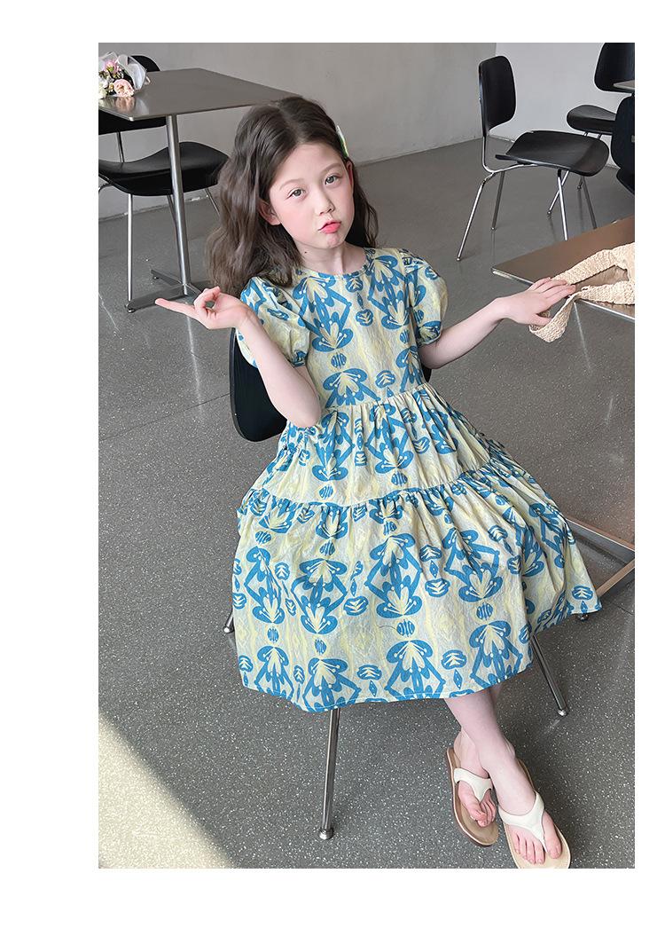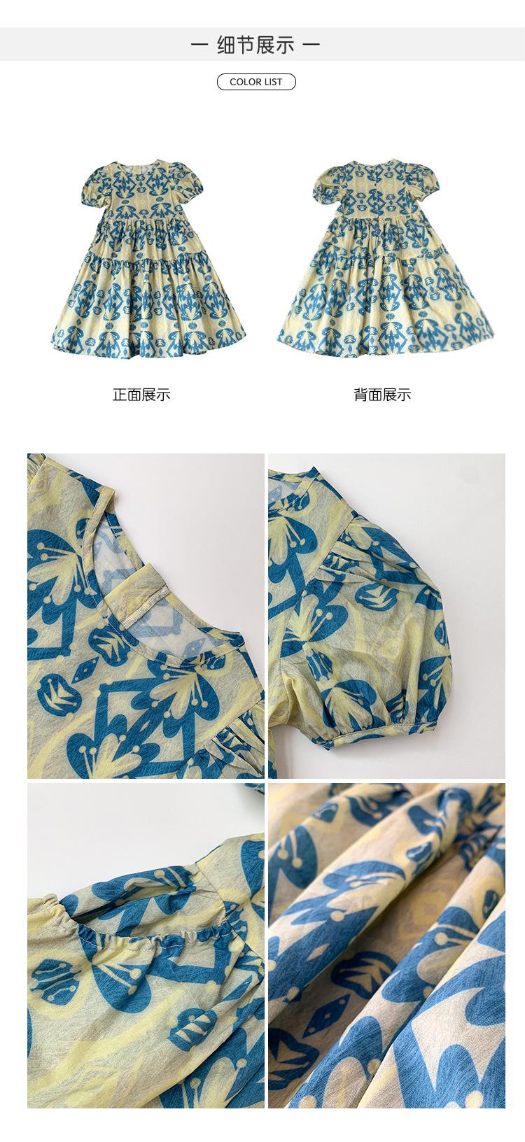 Falda de Princesa Floral para Niña Vestido Elegante para Niños Ropa Infantil Grande Falda de Manga Corta Estilo Nuevo de Verano 2025 para Niña