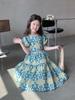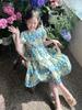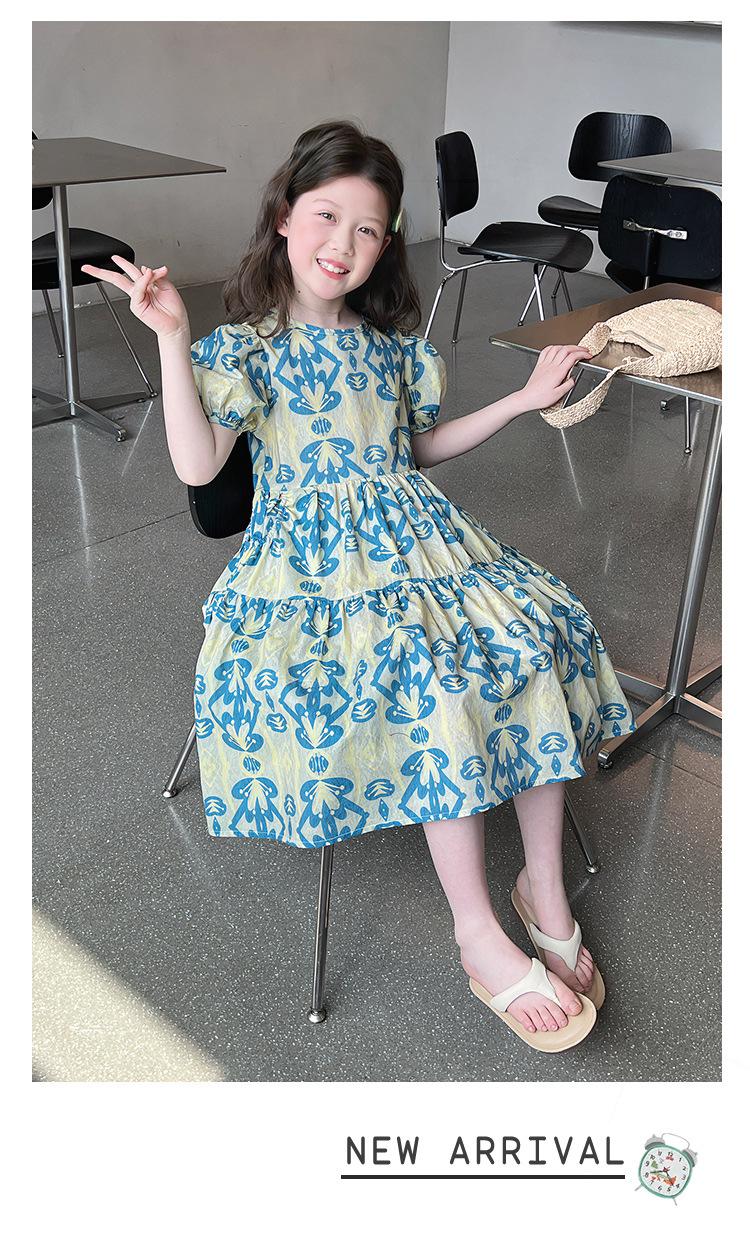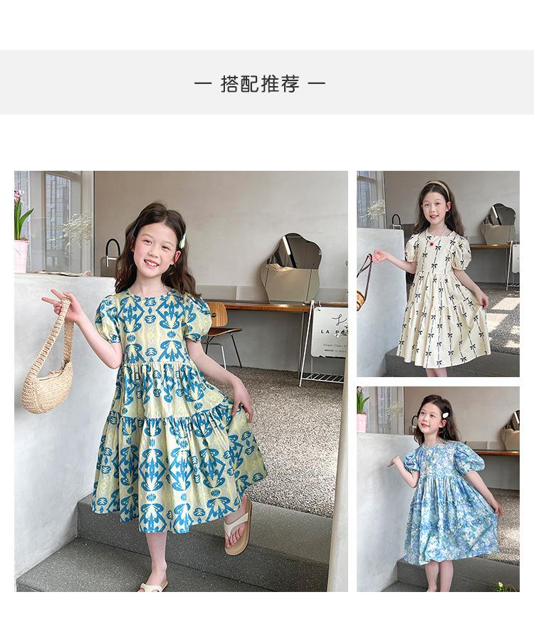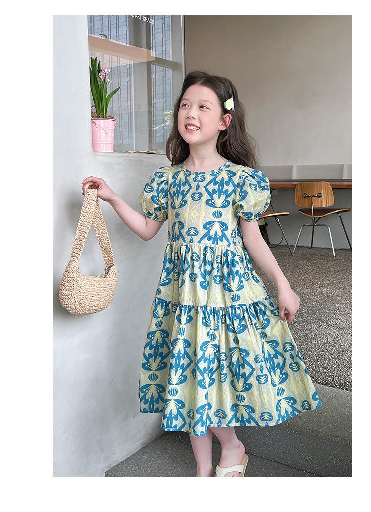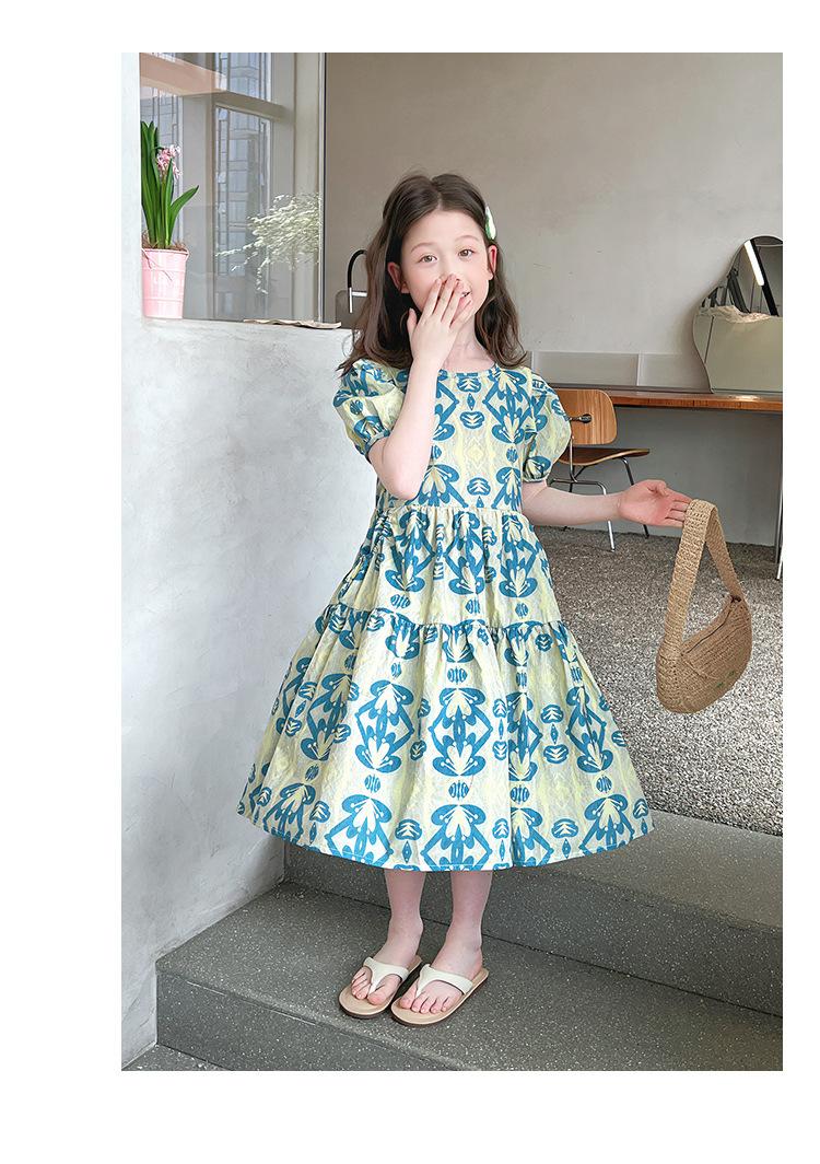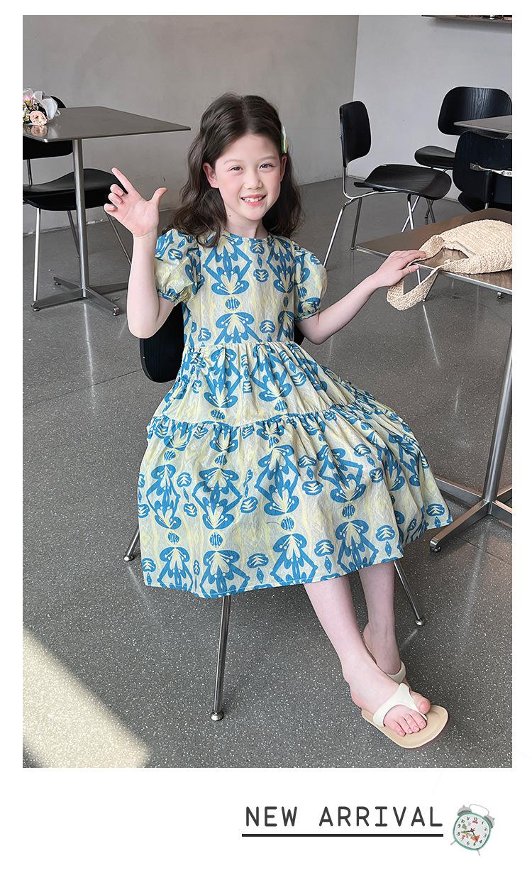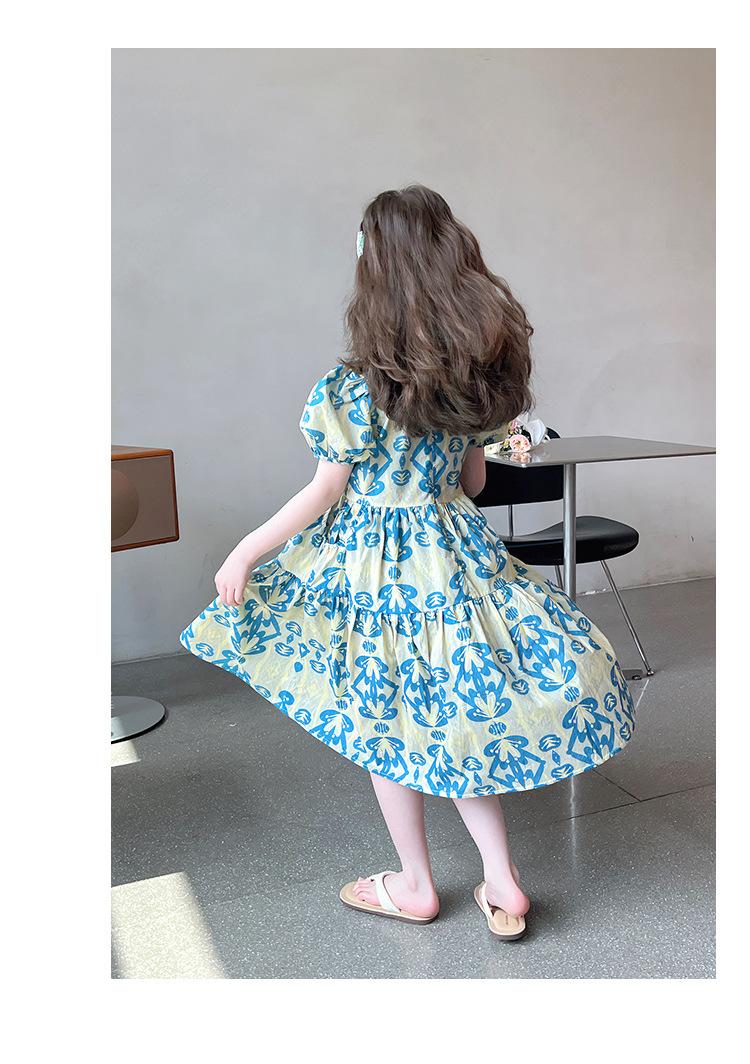 Falda de Princesa Floral para Niña Vestido Elegante para Niños Ropa Infantil Grande Falda de Manga Corta Estilo Nuevo de Verano 2025 para Niña