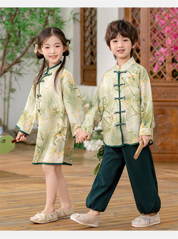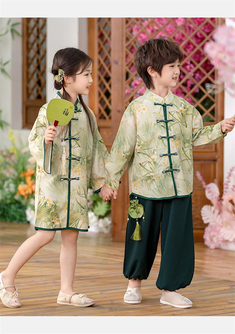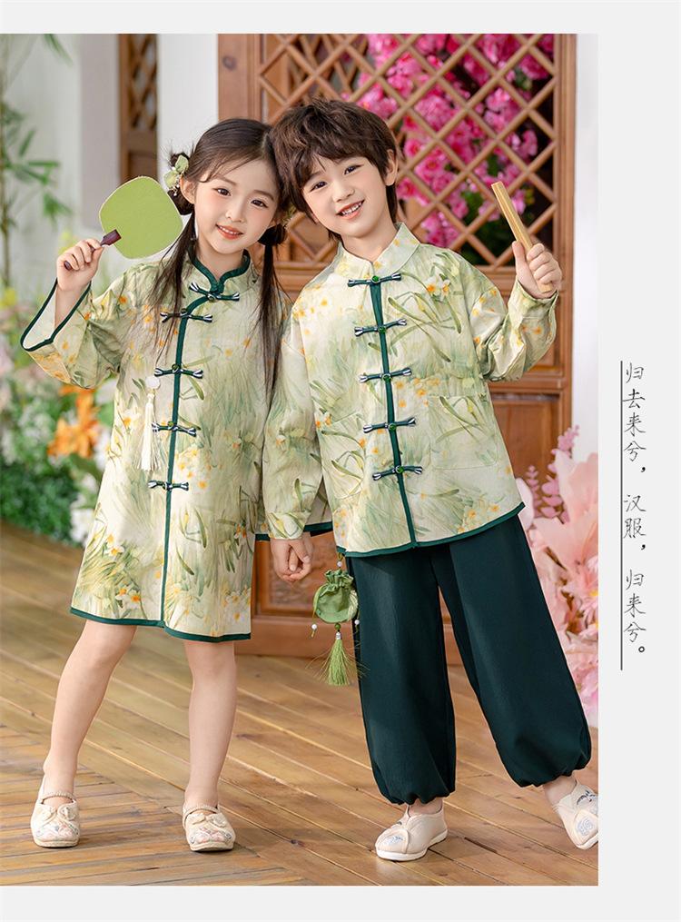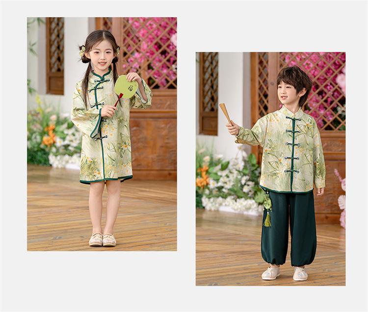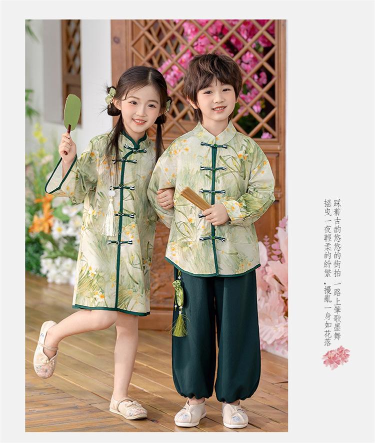 Los niños van a Chunshan traje antiguo Hanfu niños y niñas Guoxue ropa de actuación estudiantes de escuela primaria Tang traje recitación coro ropa de actuación
