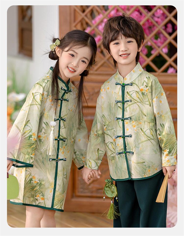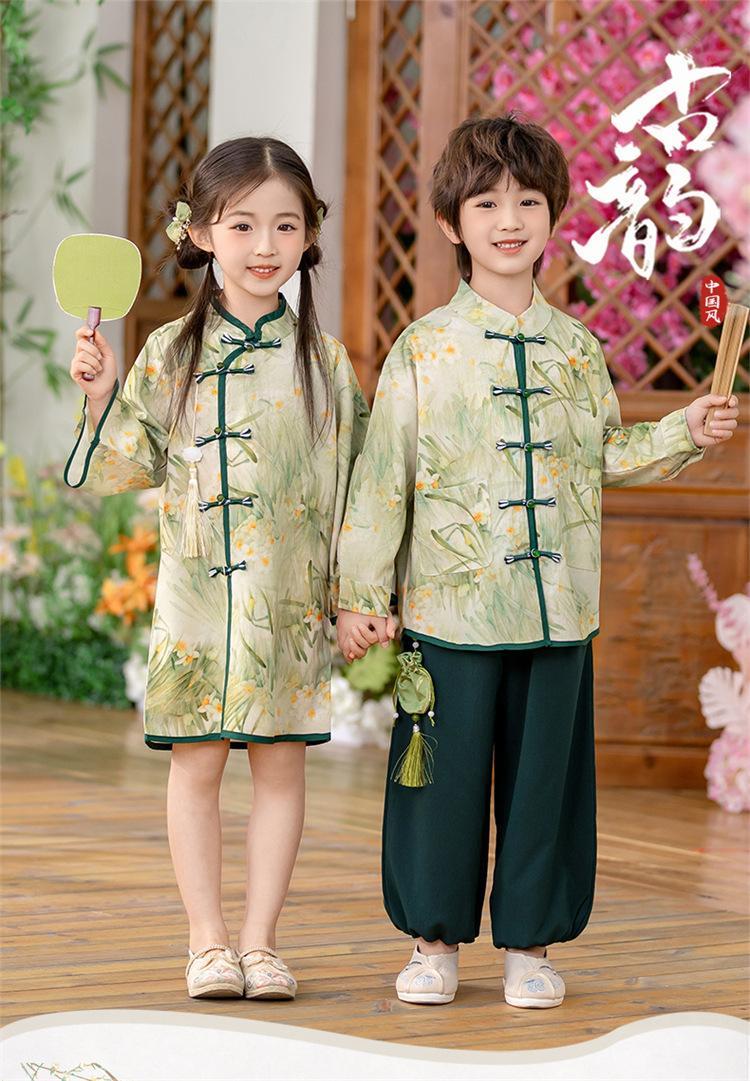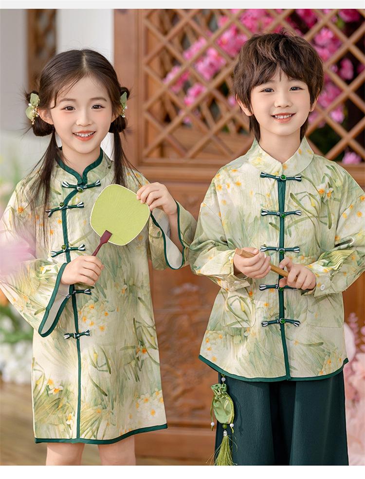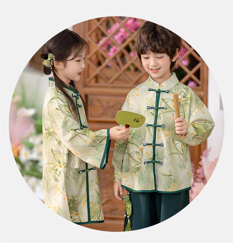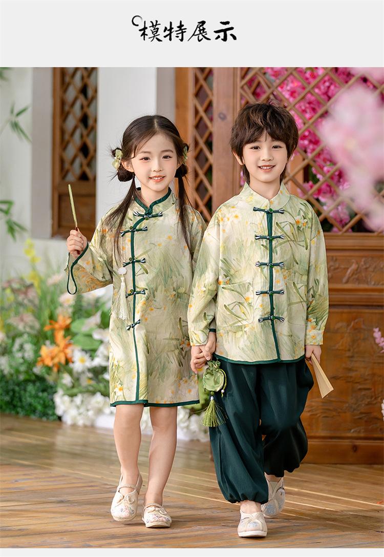 Los niños van a Chunshan traje antiguo Hanfu niños y niñas Guoxue ropa de actuación estudiantes de escuela primaria Tang traje recitación coro ropa de actuación