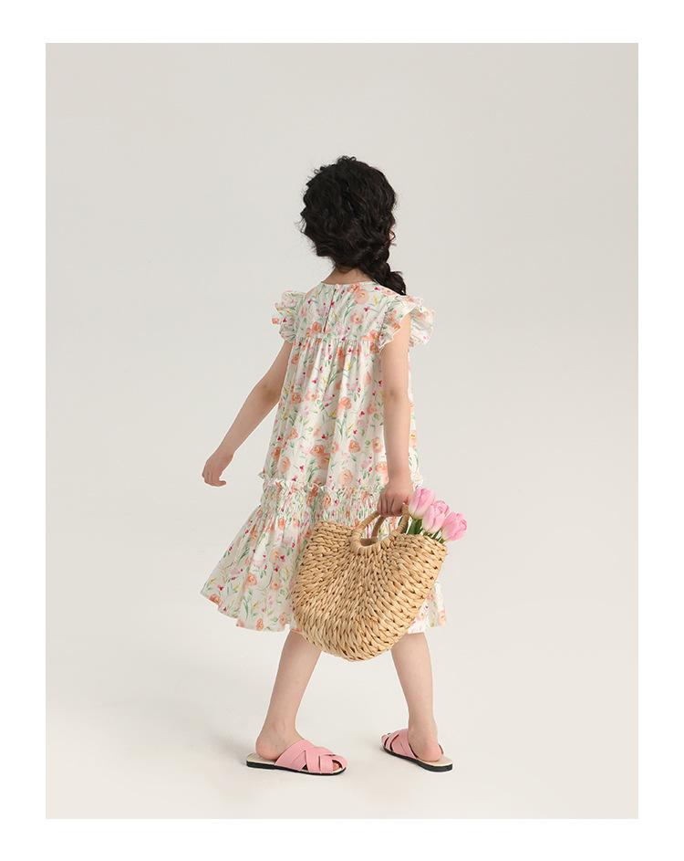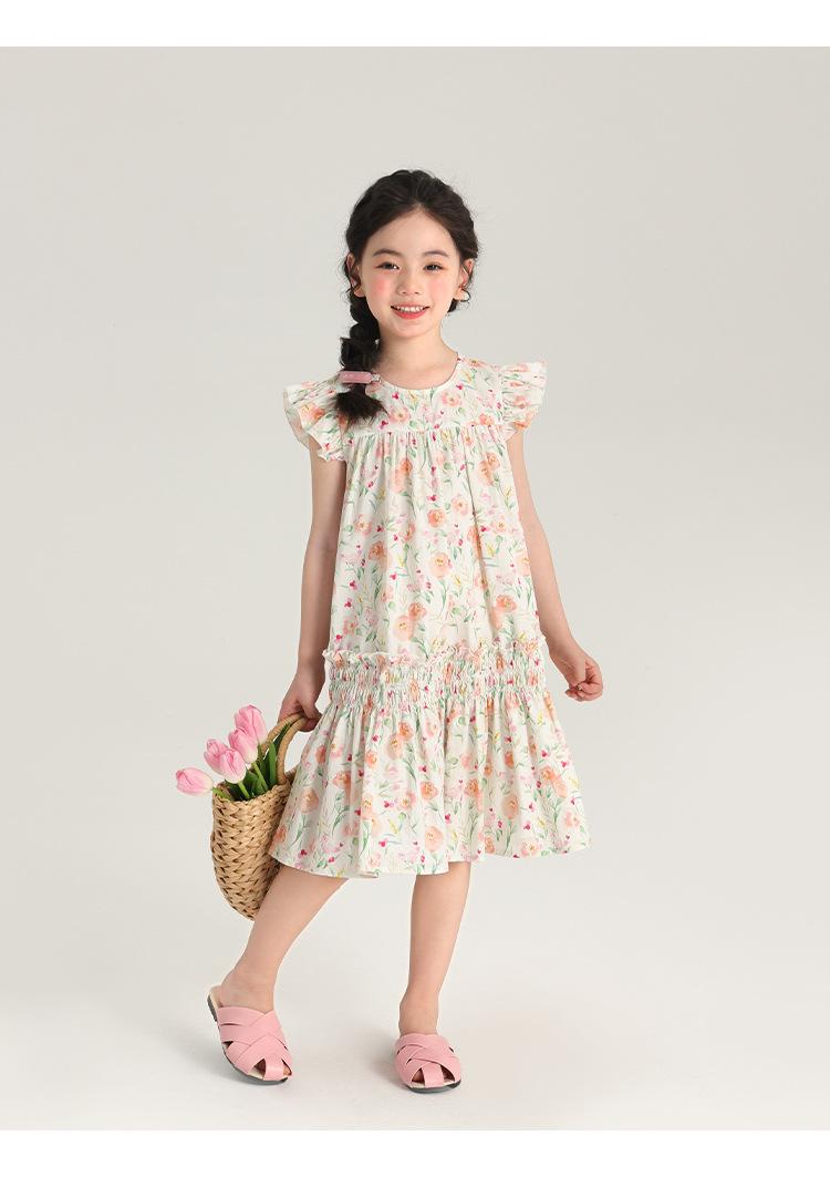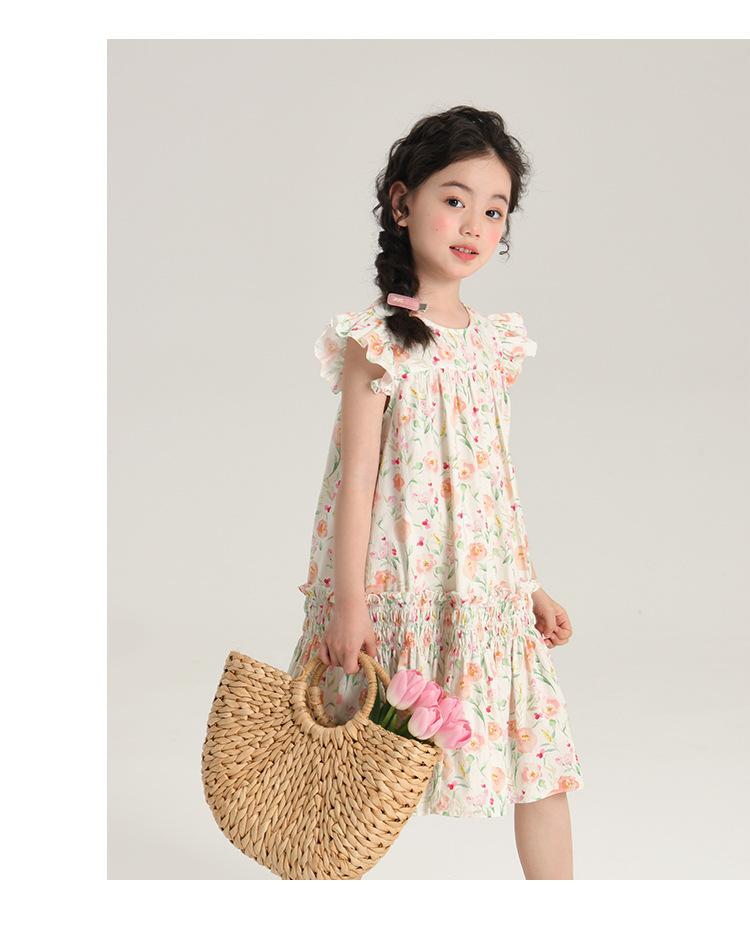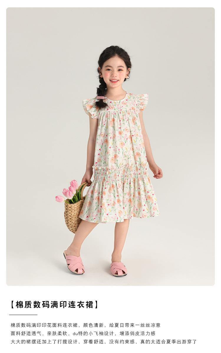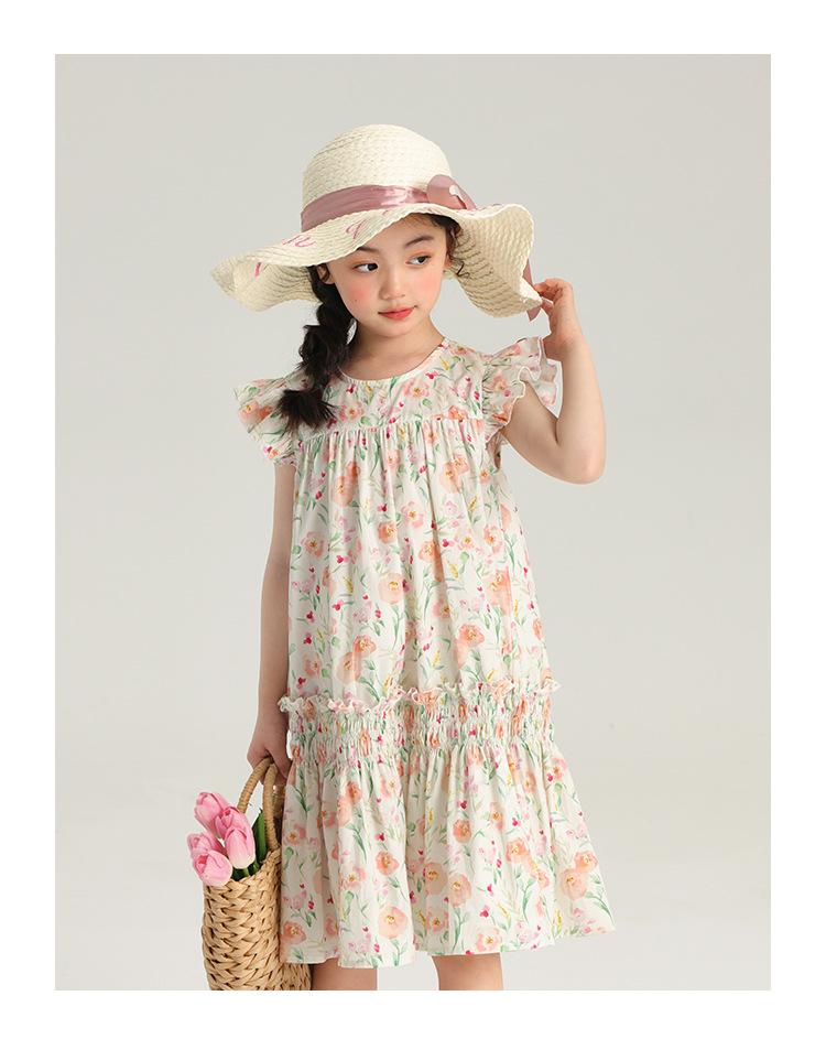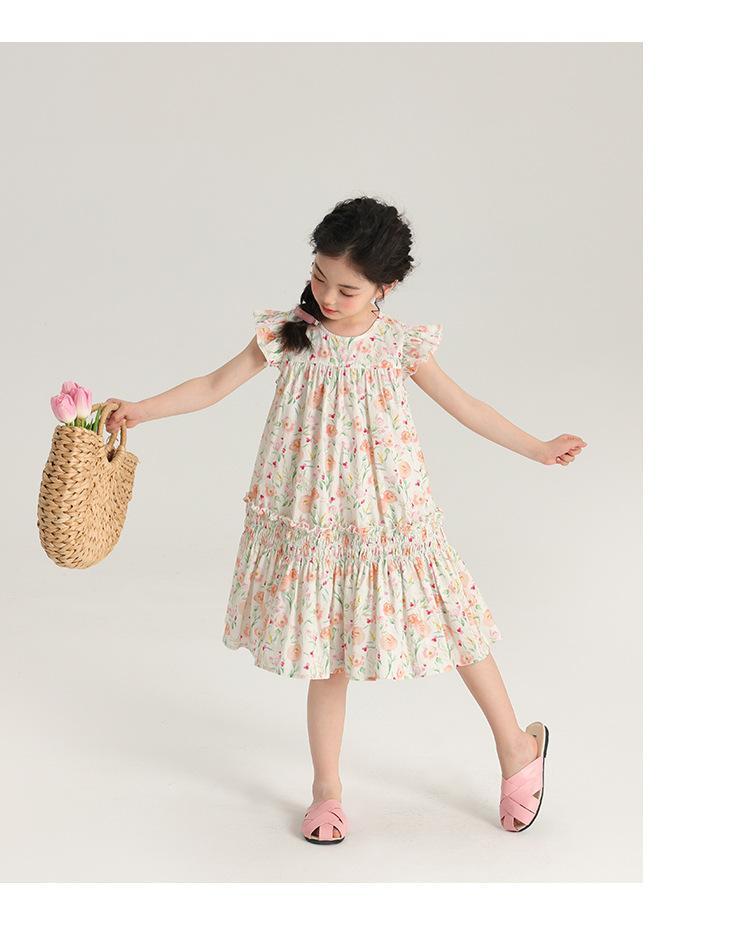 Vestido Nuevo de Verano para Niñas 2024 con Falda Grande y Diseño de Mangas Cortas Volantes Falda Floral para Niños Falda Larga para Bebé