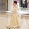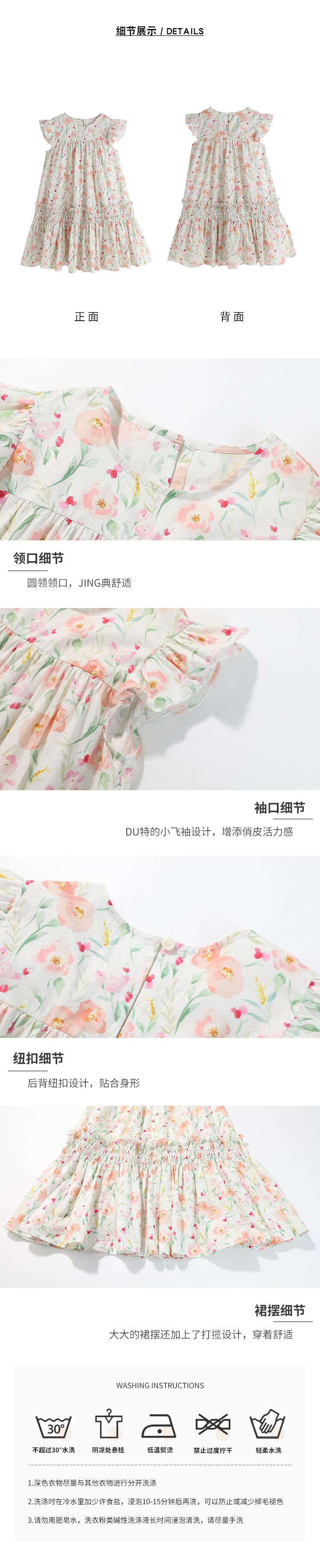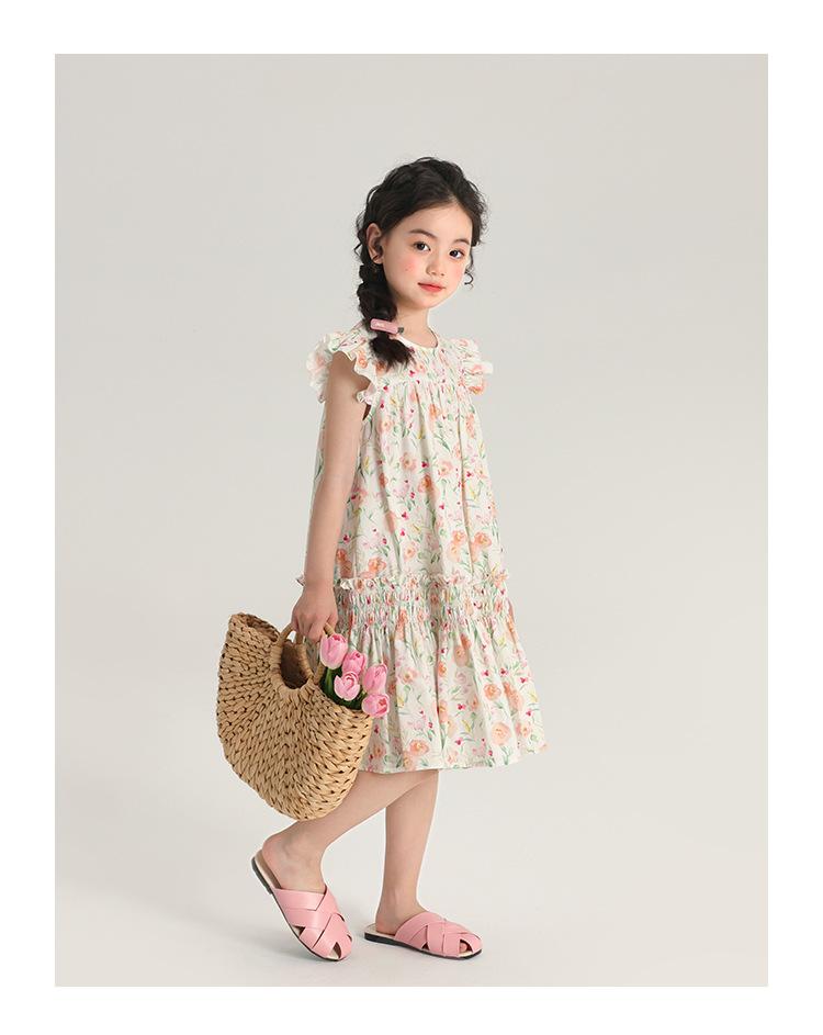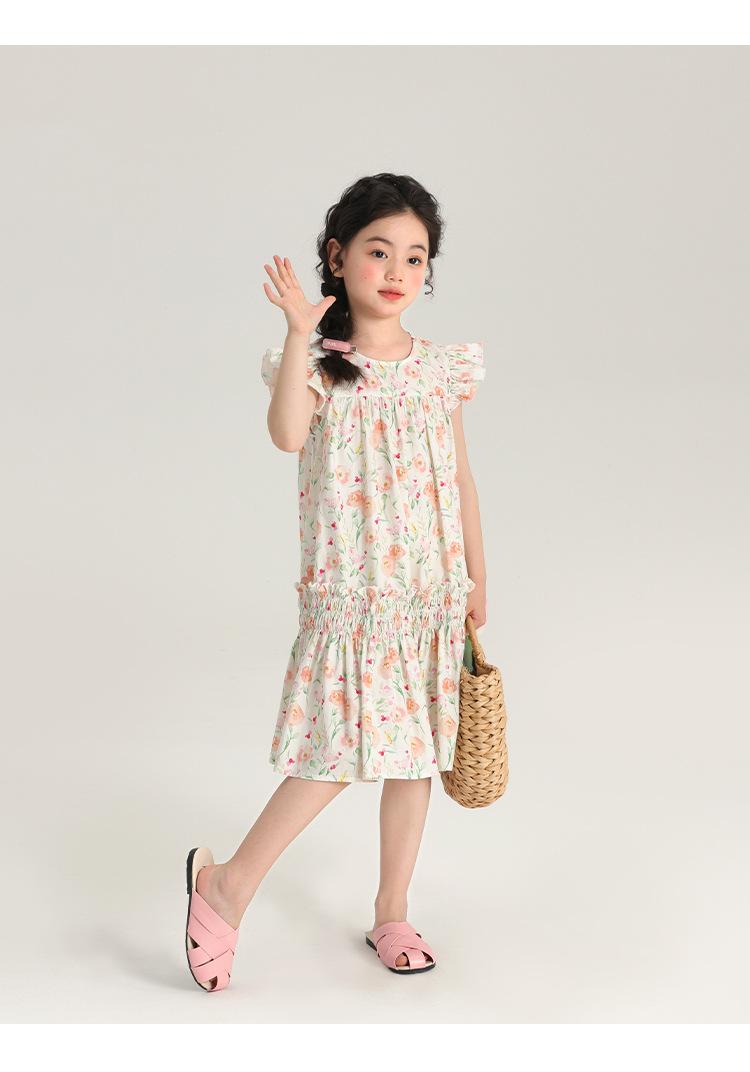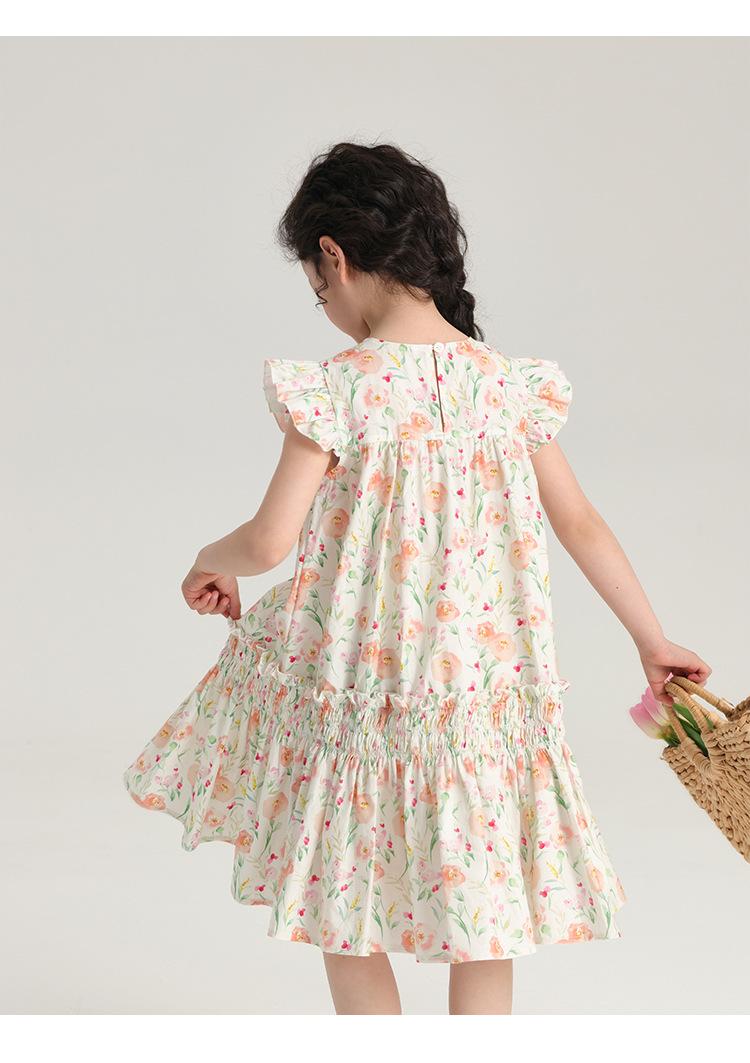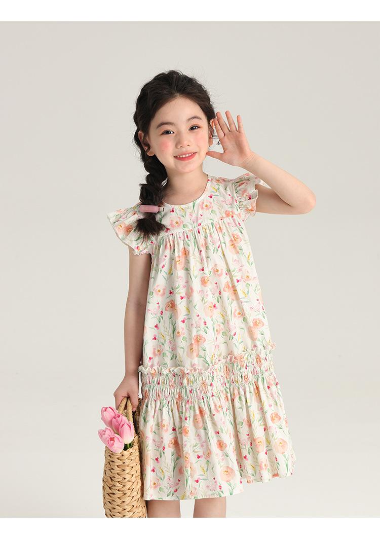 Vestido Nuevo de Verano para Niñas 2024 con Falda Grande y Diseño de Mangas Cortas Volantes Falda Floral para Niños Falda Larga para Bebé