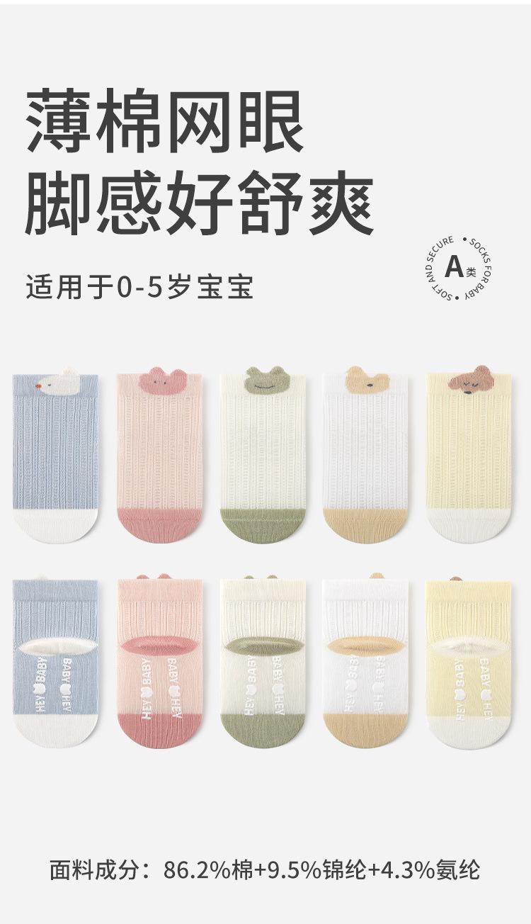 Calcetines para bebé recién nacido calcetines para niños sin costuras caricatura primavera y verano nuevos calcetines de malla para bebé de media caña